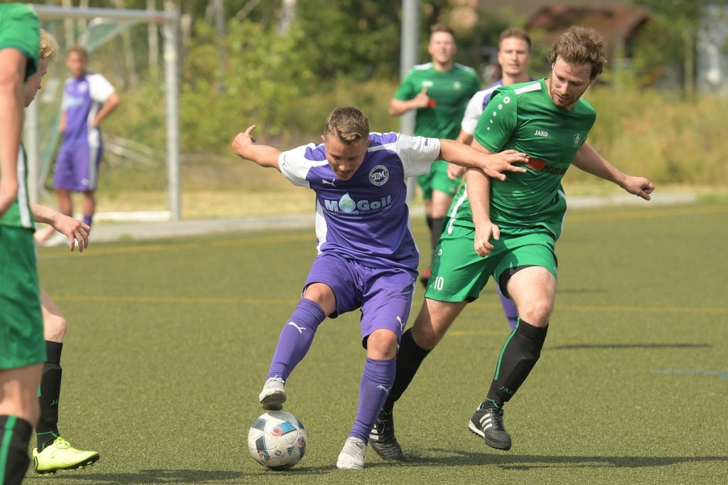 Ahrensfelde beginnt die Testspielserie zur Saisonvorbereitung gleich mit einem kleinen Paukenschlag. „Ich denke mal, dass könnte heute stramm werden“, hatte Ahrensfeldes Trainer Sven Orbanke im Vorgespräch schon rumgeunkt. Denn mit Eintracht Mahlsdorf stellte sich der designierte Favorit der Berliner Verbandsliga in der Jahnsportstätte vor. Bei bestem Fußballwetter begann die Partie auf dem kleinen Kunstrasen an der Ulmenallee, wie erwartet. Die Berliner im Vorwärtsgang, mit reichlich Kurzpassspiel und viel Laufarbeit im Petto, setzten Grün-Weiss gleich stark unter Druck. Sven Orbanke hatte seine Truppe, schon ahnend, hervorragend eingestellt – sehr defensiv, aber auf Konter lauernd. Optisch waren die Gäste zwar stark überlegen, agierten aber ohne sichtbaren Raumgewinn. Während Mahlsdorf zu überhaupt keiner Chance kam, setzten die Barnimer gelegentliche Nadelstiche. Ahrensfeldes Top-Torschütze Patrick Hamel, als perfekter Konterstürmer, entpuppte sich für die Gäste als ständiger Unruheherd, dem letztendlich keine Wege zu weit waren. Mit seinem Schuss von der linken Strafraumseite prüfte er in 15. Minute zum ersten Mal Gäste-Keeper Greulich, der sich schon strecken musste, um die Kugel um den Pfosten zu lenken. Während bei den Gästen zwar ansehnlich der Ball lief und Grün-Weiss-Torsteher Tim Reuter weiterhin ohne Beschäftigung blieb, hatte die Partie in der Intensität schon Wettkampfcharakter erreicht. Nick Meißner, der nach einer Balleroberung im Mittelfeld den Ball auf die rechte Seite zu gespielt bekam, flankte flach in den Strafraum. Dort hatte die Mahlsdorfer Defensivabteilung Patrick Hamel sträflich allein gelassen und musste schlussendlich zu schauen, wie Hamel nur noch einschieben brauchte (21.). An den Kräfteverhältnissen änderte sich nach dem Treffer rein gar nichts. Die Berliner spielten weiter mit viel Ballbesitz. Ahrensfelde hingegen hatte die Chancen und erzielte den zweiten Treffer. Erst kratzte Neuzugang Hagen Opitz, gekommen von Empor Berlin II, mit seinem Kopfball an den linken Pfosten an der Ergebnisverbesserung (32.). Dann machte Patrick Hamel richtige Nägel mit Köpfen und erzielte das nicht unverdiente 2:0. Ein langer Einwurf, den Mahlsdorf schlecht abwehrte, machte Hamel zum Abstauber und schlussendlich zum Doppeltorschützen (38.). Praktisch im Gegenzug erzielte Lukas Rehbein den Anschlusstreffer für seine Eintracht, nachdem er von der Grundlinie im Rückraum stehend, angespielt wurde und mit seinem strammen Schuss nicht lange fackelte (39.). Für die Gäste war dies erst die zweite Möglichkeit, nach dem in der 31. Minute Dominic Schöps per Kopfball knapp den Kasten verfehlt hatte. Zum Wiederanpfiff setzte Mahlsdorf die Auswechselmaschinerie in Gange und brachte sieben frische Kräfte. Mit dieser Maßnahme stellte sich gerade bei den Hausherren die Konditionsfrage und vor allem nach dem Zeitpunkt eines zu erwartenden Einbruchs. Doch Ahrensfelde beantworte die Frage letztendlich selbst, nämlich mit viel Leidenschaft und Disziplin. Die Begegnung blieb weiter intensiv und Mahlsdorf kratzte nun einige Male am Ausgleich. Der eingewechselte Ringo Kretzschmar und sein Kollege Lukas Rehbein waren im Eintracht-Vorwärtsgang die auffälligsten Akteure, doch richtig zwingend wurde es auch nicht. Als sich dann der eingewechselte Gäste-Keeper Alexander Sandt ohne gegnerischen Einfluss in der 80. Minute so schwer verletzte, dass es eine längere Unterbrechung gab und sogar medizinische Hilfe gerufen werden musste, war die Luft aus der Partie raus. Am Ende standen die in grün gekleideten Ahrensfelder als nicht unverdiente Sieger vor Trainer Orbanke, der als Bonbon und sehr „zur Freude“ seiner Jungs noch ein Auslaufen anordnete. „Ich bin heute sehr zufrieden. Wir haben taktisch zu neunzig Prozent alles richtig gemacht. Sehr gefallen hat mir, dass wir so diszipliniert agiert haben. Und das nach erst zwei Trainingseinheiten. Mit den Neuzugängen bin ich erst einmal zu frieden.“ so Orbanke in seiner Analyse.