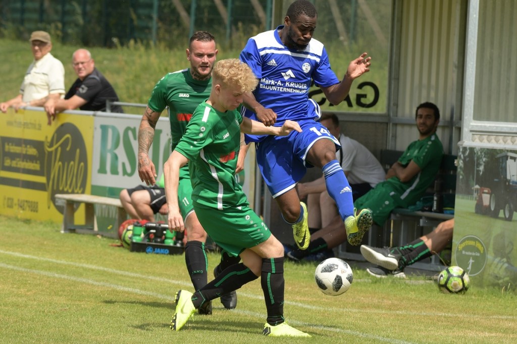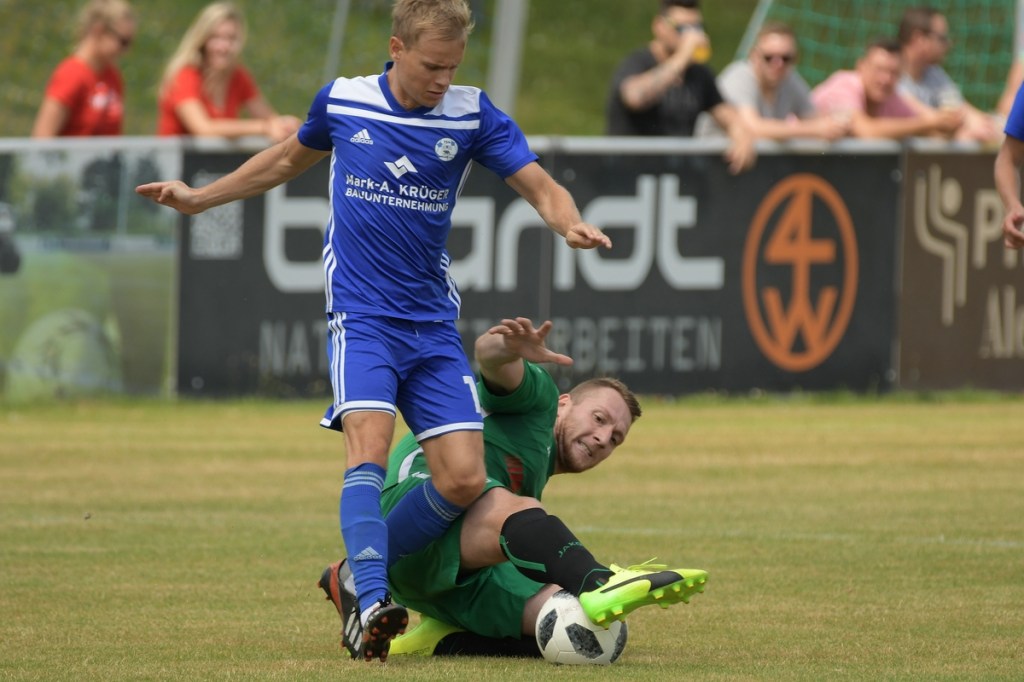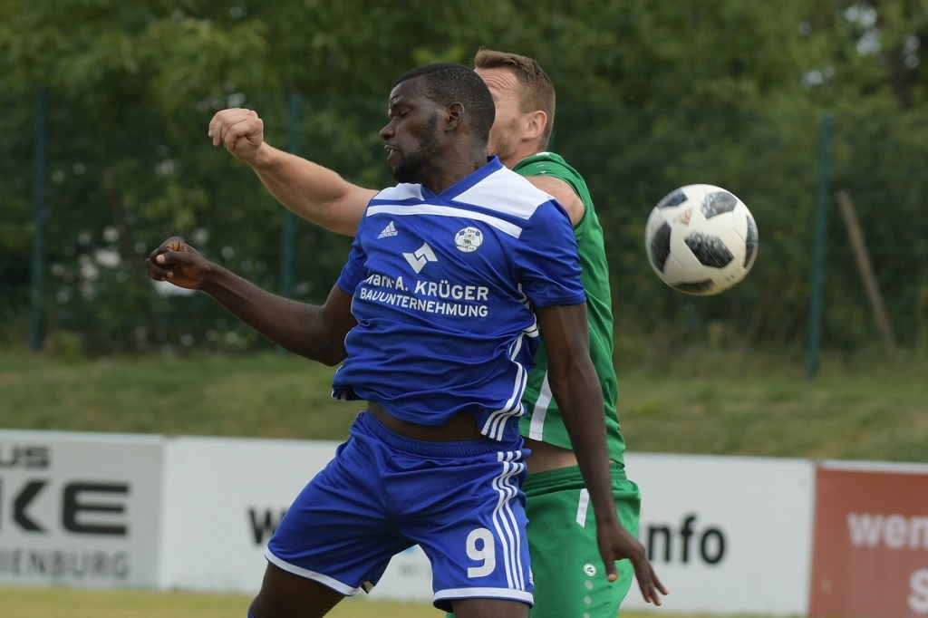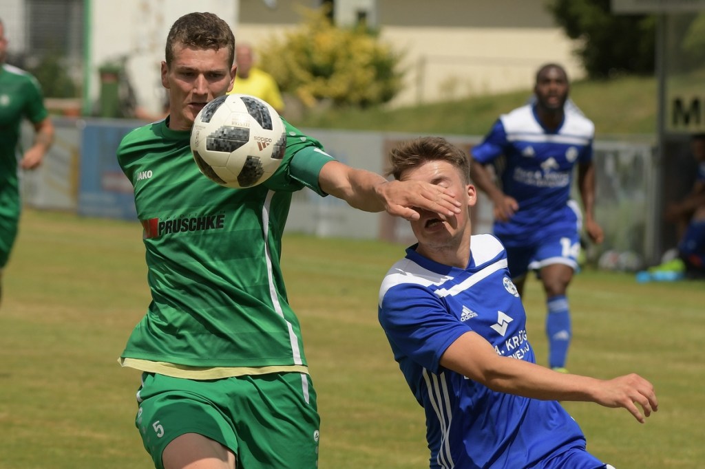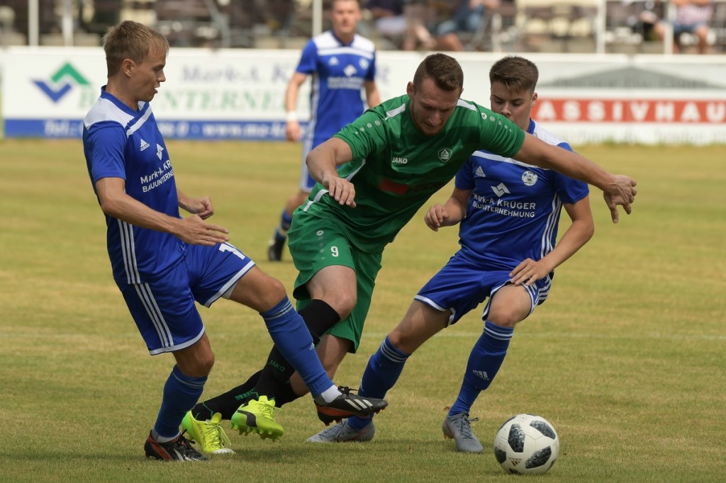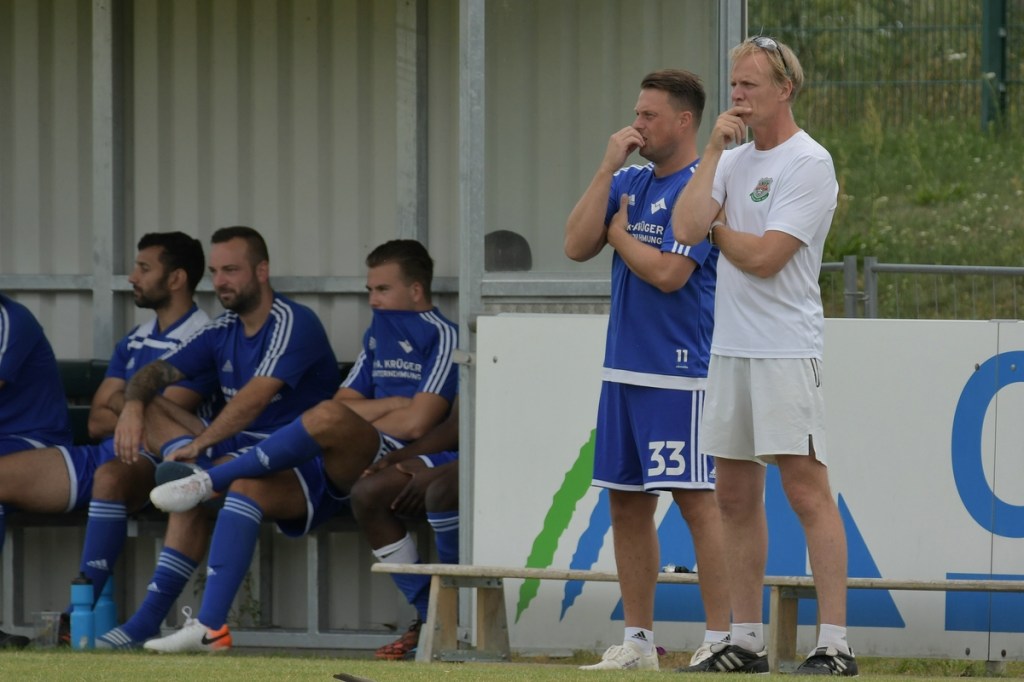 Während der FSV Bernau in zwei absolvierten Testspielen jeweils eine Niederlage hinnehmen musste, zeigt Ahrensfelde, bis auf einen Ausrutscher, weiterhin positiv die Krallen. Tom Heidemeier, als neuer Bernauer Verantwortlicher, war trotz des Misserfolges nicht groß enttäuscht, sondern äußerte sich in seiner Analyse eher realistisch „Wir haben heute den nächsten Schritt gemacht, waren über die gesamten neunzig Minuten spielbestimmend, leider haben wir uns nicht belohnt. Es fehlt uns schon noch einiges in der Abstimmung.“ Sein Gegenüber, Gästetrainer Sven Orbanke, fasste die Partie hingegen recht kurz zusammen. „Das Beste war das Ergebnis und dass wir heute in der Abwehr recht solide unterwegs waren. Offensiv war das zu wenig, da verlange ich einfach mehr.“ Gerade in den Anfangsminuten offenbarten sich die Abstimmungsprobleme der Hausherren und dies besonders in der Defensive. Schon in der zweiten Minute musste FSV-Keeper Danny Kempter im Rauslaufen Kopf und Kragen riskieren, nach dem sich zwei seiner Vorderleute gegenseitig über den Haufen rannten und Ahrensfeldes Torgarant Patrick Hamel fast in Schussposition kam. Mit dem nächsten Gästeangriff fiel auch das Tor des Tages. Bernau hatte einen Eckball in den Sand gesetzt und musste schließlich einem langen Ball hinterherlaufen, den Hamel in Stürmermanier im Eins gegen Eins an Kempter zum 0:1 vorbeischob (4.). In der Folgezeit fand die Truppe aus der Hussitenstadt immer besser in die Partie und übernahm nun auch die Kontrolle. Grün-Weiss bereitete dieser Umstand aber keine großen Probleme, da Bernau im Vorwärtsgang nicht gerade einfallsreich und auch im Anspiel oft zu ungenau agierte. Unansehnlich war das Vorgetragene keineswegs, was der Partie fehlte, waren ganz einfach zwingende Strafraumszenen und Tore. Während das Gästeteam im Angriff immer blasser wurde, kam Bernau wenigstens zu ein paar Halbchancen. Den gefährlichsten Abschluss hatte Lucas König aus halbrechter Strafraumposition, doch Tim Reuter brachte reaktionsschnell seine Hände nach oben und lenkte damit das platzierte Geschoss aus der Gefahrenzone (15.). Bis auf den Freistoß, den Damir Coric über die Mauer hinweg auf die Oberkante des Quergebälks setzte, hatte der erste Durchgang keine nennenswerten Abschlüsse mehr zu bieten. Zum Wiederanpfiff wechselte Bernau reichlich durch und übernahm nun noch stärker das Zepter, mit dem mangelnden Resultat, dass sich vor dem Ahrensfelder Kasten kaum etwas änderte. Zwar erhöhte sich die Anzahl der Abschlüsse, aber das Grün-Weisse Bollwerk, welches sich nun mit noch größerer Leidenschaft präsentierte, hielt weiter stand. Alexander Schadow hatte dabei wohl den größten Riesen, als Ahrensfeldes Keeper schon geschlagen war und der eingewechselte Thomas Illig kurz vor dem Einschlag das Spielgerät aus der Gefahrenzone beförderte (54.). Grün-Weiss wankte mit zunehmender Dauer schon gewaltig und konnte sich am Ende schon als glücklicher Sieger bezeichnen. „Wir müssen weiterarbeiten, das ist gerade mit den vielen jungen Spielern ein Prozess. Für Antrew Lubega als Neuzugang, der heute als einzige Spitze eingesetzt war, war es natürlich sehr schwierig. Da passen die Laufwege noch nicht, das braucht halt seine Zeit. Für mich ist das hier schon ein wenig Neuland, ich habe in dieser Liga lange nicht gearbeitet, sondern nur von ganz weit außen beobachtet. Für eine Prognose ist es einfach noch zu früh, wir müssen schauen, wie wir aus den Startlöchern kommen.“ so Tom Heidemeier, der schon noch reichlich Arbeit vor sich hat.