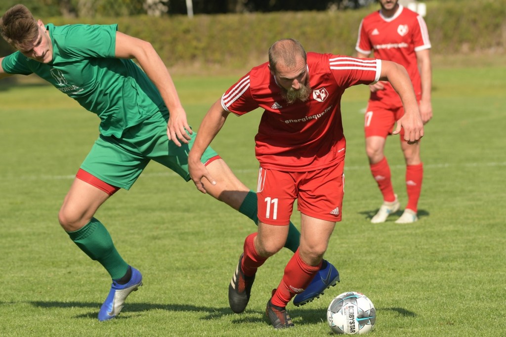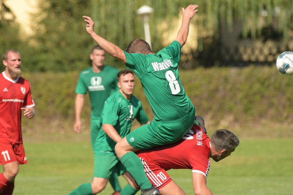 Wandlitz und Falkenthal, jeweils mit einem Sieg in die Saison gestartet, trennen sich in einer interessanten, aber nicht sehr hochklassigen Landesklassenpartie am Ende gerecht unentschieden. In zwei grundverschiedenen Halbzeiten hätte aber jede Vertretung die Partie für sich klar entscheiden können, wenn nicht sogar müssen. „Ein 3:3 hätte ich vorher unterschrieben, und jetzt eigentlich auch.“ so Hannes Krämer, der Coach der Füchse, kurz nach Spielende. Denn seine Jungs wirkten in Halbzeit eins wesentlich gefestigter und vor allem strukturierter mit einem sichtbaren Plan. Wandlitz hingegen agierte verunsichert, nervös, schon eher wie ein aufgescheuchter Hühnerhaufen. Besonders in der Defensivarbeit wurde fast jeder Angriff der Gäste zur Zittereinlage. Schon allein, wenn Falkenthal im Vorwärtsgang lange Bälle auf die schnellen Außen Kenny Lange und Toni Schindler sendete, brannte es lichterloh. Das 0:1 entstand aus einem kurzgespielten Eckball und folgender Flanke, die Toni Schindler per Kopf vollkommen frei ins Netz streichelte (8.). Sechs Minuten später lag der Ball zum zweiten Mal im Eintracht-Kasten. Kenny Ladewig, der Gäste-Unruheherd von der rechten Außenbahn und im Sprint kaum zu stellen, flankte zwar nicht gefährlich, aber so ausreichend, dass der mitgelaufene Robert Reimann frei einschieben konnte. Für die Eintracht sah es nicht gut aus, denn in der Folgezeit war die Truppe von Matthias Händler nicht in der Lage einen nennenswerten Torschuss abzugeben, geschweige die einfach gestrickte Gästestrategie der Diagonalanspiele auf Schindler und Ladewig zu unterbinden. Da half auch nicht das Strafstoßtor zum 1:2 durch Adrian Fischer in der 18. Minute, nachdem Florian Liebich kurz hinter der Strafraumgrenze regelwidrig am Schuss gehindert wurde. Die Verunsicherung blieb allgegenwertig. Falkenthal hatte weitere gute Möglichkeiten, ein höherer Zwischenstand von Vier oder Fünf zu Null wäre locker möglich gewesen. So konnte man sich auf Wandlitzer Seite schon glücklich schätzen, dass nur noch Kenny Ladewig einen Konter zum 1:3 abschloss und nicht mehr passierte. „Ich bin in der Kabine schon sehr laut geworden. Das was wir in der ersten Halbzeit abgeliefert haben, war wirklich grottenschlecht.“ erklärte Händler den nun folgenden Wandel seiner Jungs. Zusätzlich nahm er in der Abwehrriege noch einen Tausch vor, in dem er den stark schwächelnden Fabian Liebich gegen den baumlangen Felix Fritzsche auswechselte. Diese Maßnahme fruchtete und brachte wieder mehr Stabilität in die Defensive. Auch in der Körpersprache stimmte es wieder. Paul Roller in vorderster Front und Dennis Plaumann im Mittelfeld spornten spielerisch und verbal ihre Kollegen immer wieder an. Binnen fünf Minuten hatte die Eintracht das 2:3 hergestellt. Der lange Ball auf Marcel Petrahn, bei dem die Gäste ein klares Abseits monierten, und dessen unhaltbarer Abschluss ließ die Brust der Barnimer Vertretung nun richtig anschwellen (50.). Eine doch recht unübersichtliche Situation im Füchse-Strafraum, bei der Paul Roller im Zweikampf scheinbar zu stark körperlich attackiert wurde, bewertete Referee Wilko Witte als ausreichend, um einen Strafstoß zu verhängen. Felix Fritzsche traute sich, versenkte die Kugel souverän und leitete damit eine spannende Schlussphase ein (55.). In der Folgezeit häuften sich als unangenehme Nebenschauplätze auch Foulspiele, gepaart mit reichlich Emotionen, die teils taktischer Natur waren, aber oft auch einen konditionellen Hintergrund hatten. Wandlitz hatte nun fast alles im Griff und blieb aber in der Chancenverwertung unter den eigenen Möglichkeiten. Allein Paul Roller hätte mit drei guten Möglichkeiten zum Matchwinner avancieren können. Falkenthal wankte und musste wohl der guten ersten Halbzeit physisch Tribut zollen, schaffte es aber letztlich wenigstens den einen Punkt mit in die Oberhavel zu nehmen. „Wir haben hier oft in der Vergangenheit in den Schlussminuten verloren. Deshalb bin ich im Endeffekt zufrieden,“ sagte Krämer im Nachgespräch. Händler hingegen war schon etwas angesäuert und wusste nicht so richtig, wie er die Partie einordnen sollte. „Wir haben so viele einfache Sachen in der ersten Halbzeit falsch gemacht und viel zu kompliziert gespielt. Nach der Pause lief es dann besser, wir waren viel zielstrebiger und vor allem konzentrierter unterwegs. Da hatten wir doch noch Glück, dass es zum Unentschieden gereicht hat, obwohl ein Sieg möglich gewesen wäre. Aber den möchte ich eigentlich nicht einfordern.“