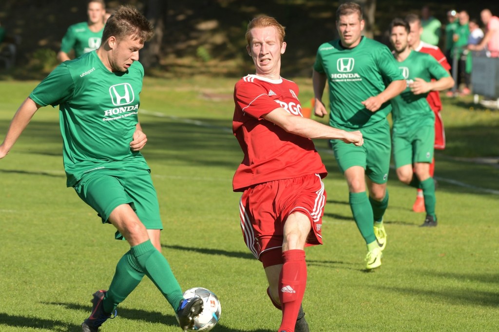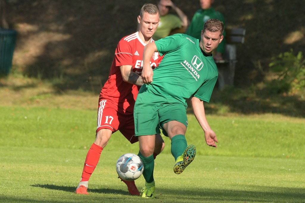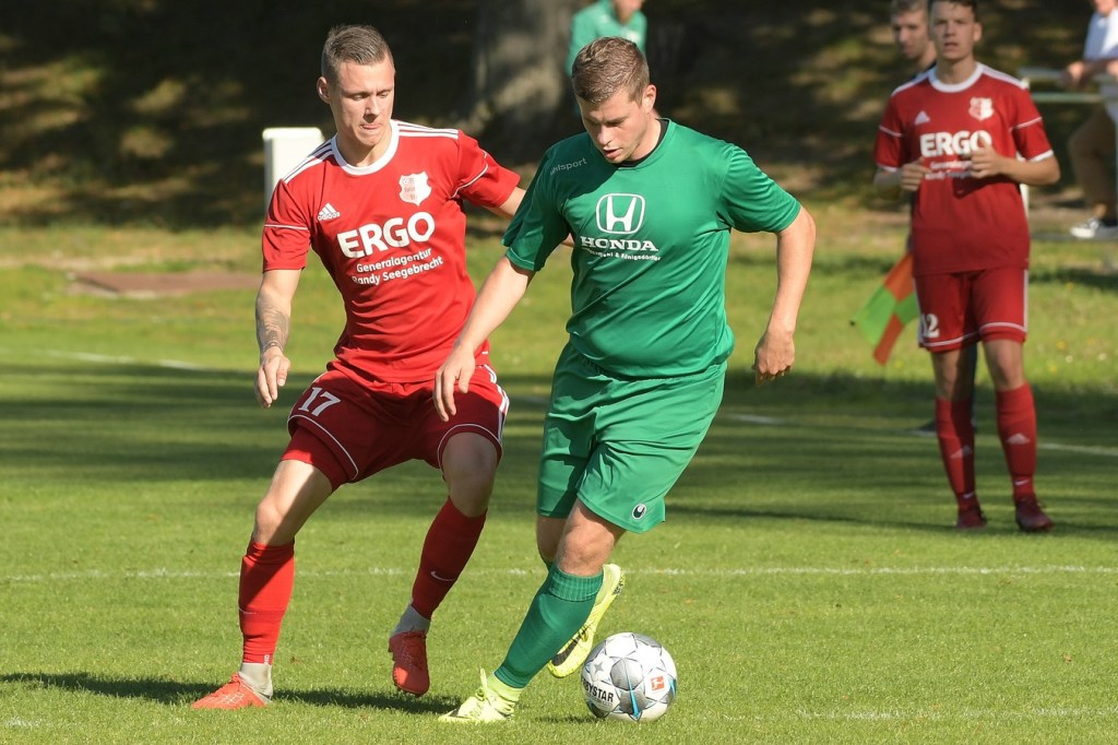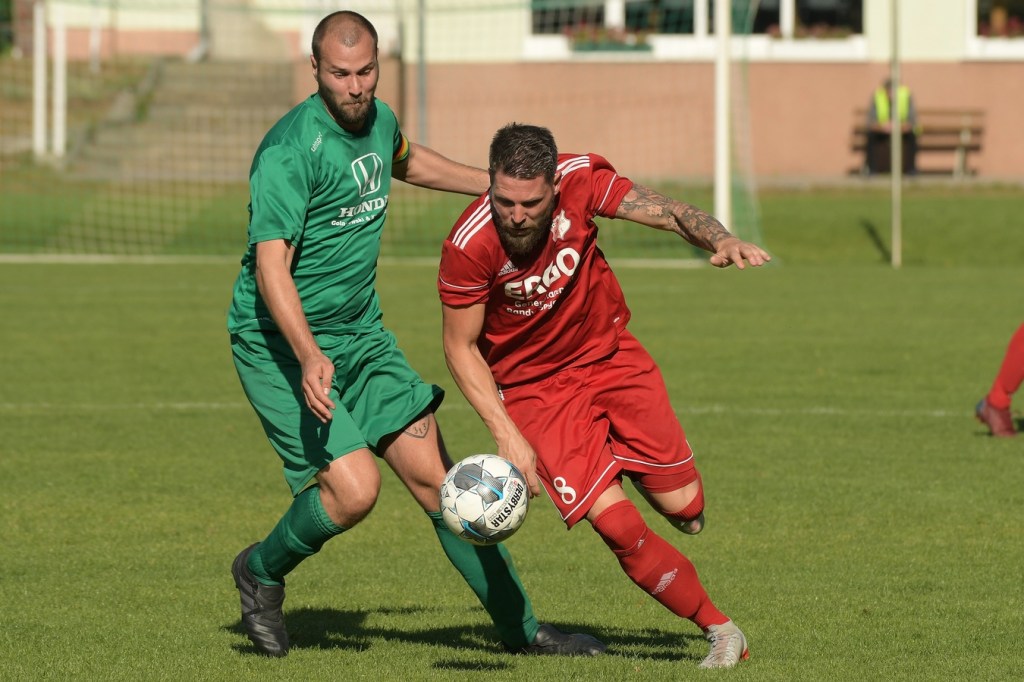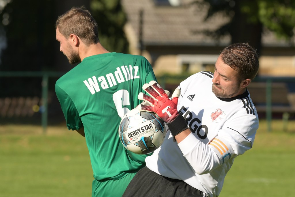Eintracht Wandlitz entscheidet das Barnim-Derby verdient für sich und schaut nach dem 5. Spieltag als momentan Drittplatzierter und bester Kreisvertreter weiterhin sehr positiv in den Wettbewerb. „Mit 10 Punkten bin ich bisher sehr zufrieden, obwohl wir doch noch einiges unnötig liegen lassen haben“, bilanzierte Eintracht Coach Matthias Händler den bisherigen Verlauf der Saison. Bei Britz hingegen, brennt es schon jetzt lichterloh. Denn mit drei mageren Pünktchen auf der Habenseite, den verletzungsbedingt ausgedünnten Kader und sich immer mehr in der Tabelle trennender Spreu vom Weizen, hat die Truppe von Enrico Jürgens schwere Wochen vor sich. Dabei begann Fortuna wie die Feuerwehr, setzte Eintracht stark unter Druck und konnte schon zwei Minuten das 1:0 bejubeln. Erik Klein hatte aus 18 Metern einfach mal abgezogen und Glück, dass Heimkeeper Florian Schweitzer keine gute Figur machte und den haltbaren Ball ins Tor passieren ließ. Wandlitz musste sich schon schütteln und brauchte lange Zeit, um den Faden wiederzufinden. In der Folge war es vom Charakter her das erhoffte Derby, in dem keiner der Probanden große Zeit hatte, sich auszuruhen. Roman Schmidt hatte die erste Möglichkeit für seine Eintracht in der 7. Minute. Doch Adrian Peters im Tor der Gäste, parierte den platzierten Schuss sehenswert. Die daraus resultierende Ecke wuchtete Paul Roller mit dem Kopf an die Latte und hätte allein auf Grund der Sehenswürdigkeit schon den Ausgleich verdient gehabt. Die Partie blieb intensiv, rassig und von beiden Seiten leidenschaftlich geführt. Da die Heimelf aus dem Spiel heraus nur wenig im Vorwärtsgang gebacken bekam, musste schlussendlich ein glückliches Tor, resultierend aus einem Freistoß herhalten. Den hatte Dennis Plaumann direkt geschossen und mit viel Dusel, abgefälscht und unhaltbar im Kasten der Gäste untergebracht (19.). Einige Britzer zeigten schon nach dreißig Minuten erste Verschleißerscheinungen, was sicherlich auch ein Grund war, warum die Händler-Truppe immer mehr Oberwasser bekam. Roman Schmidt hatte dann noch einen Riesen, als er frei vor Peters auftauchte, schwach abschloss und dem Keeper damit die Chance zur Abwehr ließ (31.). Zum Wiederanpfiff hatte Jürgens seine Truppe noch einmal eingenordet, zumindest in den Anfangsminuten, alles auf eine Karte zu setzen. Doch der Plan ging nicht auf. Zu sehr war man schon physisch geschwächt, vor allem wegen mangelnder personeller Alternativen. Die Begegnung kam nun sehr zerfahren daher, obwohl Wandlitz die Regie vollends übernommen hatte. Zwar flammte durch den Schlenzer von Maximilian Roch, der sehr knapp sein Ziel verfehlte, noch einmal Gästehoffnung auf, doch die Tore erzielte nun die Eintracht (59.). Die Führung zum 2:1 erzielte Paul Roller in der 69. Minute. Marcel Petrahn hatte von der rechten Strafraumspitze butterweich geflankt und die Gästeabwehr damit zu Statisten degradiert. Diese schauten einfach zu, wie Roller die Kugel aus einem Meter über die Linie drücken konnte. Die verzweifelten Durchalteparolen und Motivationsrufe vom Britzer Trainer halfen nichts mehr. Wandlitz hatte mit Paul Roller den Doppelpacker gefunden, der in 83. Minute die Gästeniederlage endgültig und verdient besiegelte. Wieder war es eine Flanke von der rechten Seite, die Roller vollkommen frei zum vielumjubelten Endstand versenkte. „Unser Plan ist eigentlich, von vorne weg Druck zu machen, sehr gut aufgegangen. Wandlitz hatte damit schon seine Probleme. Dass wir dieses Tempo, allein schon mit einem Wechsler, nicht durchhalten konnten, war schon klar. Deshalb haben wir dann auch umgestellt. Schlussendlich ist die Niederlage verdient, obwohl die Tore zu einfach gefallen sind. Mut für die Zukunft macht mir die Anfangsviertelstunde und dass wir als Team durchgezogen haben. Dann hört es aber schon auf. Mit der momentanen Personaldecke sind wir einfach nicht konkurrenzfähig“, so ein doch schon sehr resignierend wirkender Enrico Jürgens kurz nach Spielende. Matthias Händler hingegen hatte nur wenig zu bemängeln. „Mich ärgert momentan eigentlich nur, dass wir in jeder Partie in den Halbzeiten verschiedene Gesichter zeigen. Heute war es der erste Durchgang, der mir gar nicht gefiel. Daran müssen wir unbedingt noch arbeiten. Auf Grund des zweiten Durchganges sind wir dann doch als verdienter Sieger vom Platz gegangen.“