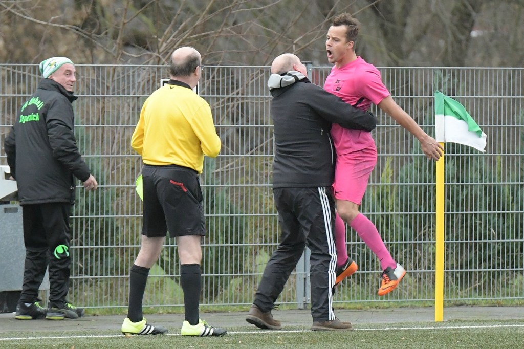 Einheit Zepernick, angetreten zum Top-Duell als Spitzenreiter der Kreisoberliga, muss durch die Niederlage gegen den Verfolger und Aufstiegskonkurrenten aus Oberkrämer verdient die Tabellenführung abgeben. Damit bleibt der Oberhavel-Vertreter weiter ohne Saisonniederlage und hat den Drei-Minus-Punkte-Ballast, den der Verband wegen des mangelhaften Schiedsrichtersolls dem Team in den Saison-Rucksack gelegt hat, wettgemacht.“ Wir haben heute keinen Druck. Selbst bei einer Niederlage sind wir oben immer noch dabei“, hatte Einheit-Coach Dirk Opitz vor der Partie zum Besten gegeben und genauso begann seine Mannschaft auch das Spiel. Dabei zeigte sich Zepernick in der Begegnung auf dem kleinen Kunstrasenplatz auf Augenhöhe und präsentierte sich unheimlich effektiv. Lesley Park, der sich nach einer Ballstafette in Schussposition brachte, abzog und die Kugel rechts unten einschlagen ließ, brachte den Gästen den frühen Nackenschlag (3.). Das mögliche 2:0 hatte Atze Renner auf den Schlappen, doch sein Schuss aus sehr guter Position verschwand recht kläglich im Zepernicker Himmel (7.). In der 23. Minute machte es dann Stefan Schulz besser, der nach einem Solo einen Wimpernschlag früher am Ball war als Gästekeeper Patrick Bobermin und den Ball über die Linie zur bis dato verdienten zwei Tore Führung drückte (23.). Zwar spielten die Gäste in der Folge fleißig mit, doch der richtige Zugriff, gerade in der eigenen Offensive wollte kaum gelingen. Die nächste fast hundertprozentige Möglichkeit bekam Philip Opitz von Alexander Knappe serviert, aber auch Optiz versiebte kläglich, in dem er das Spielgerät am Tor vorbeischob (28.). Nach gut dreißig Minuten hatte Einheit sein Pulver verschossen und musste nun auch akzeptieren, dass Oberkrämer immer besser in die Partie kam. Doch deren Offensivaktionen beschränkten sich auf ein paar Halbchancen mit Abschlüssen aus der zweiten Reihe. Zum Wiederanpfiff agierten die Gäste wesentlich entschlossener und kamen auch früh durch Lars Müller zum Anschlusstreffer. Dabei ließ die Zepernicker Abwehrfraktion jeglichen Zugriff vermissen, als der Ball über mehrere Stationen vor dem Strafraum zum Schützen kam und der per Flachschuss einnetzte (52.). Einheit verlor zusehends die Griffigkeit des ersten Durchganges und bekam das Flattern, als Oberkrämer, mit Unterstützung des sonst sehr sicheren Steve Jarling, durch Nicolai Jelitto das 2:2 hinnehmen musste (61.). Doch genau in der Phase, in der die Partie zu kippen drohte, schlug Einheit durch Alexander Knappe zurück. Knappe düpierte SV-Kapitän Tom von Glischinski, der wohl dachte, dass Ball ins Aus gehen würde und schob die Kugel aus spitzem Winkel an Bobermin vorbei zum vielumjubelten 3:2 (73.). Oberkrämer blieb dran und zeigte sich clever bei einer Freistoßausführung, die schnell ausführt wurde und wiederum durch Nicolai Jelitto im Kasten der Hausherren landete (78.). Die Partie schien irgendwie gelaufen und machte den Eindruck, dass beide Teams mit dem Remis zufrieden waren. Doch da hatte man die Rechnung ohne die Gäste gemacht. In der 93. Minute, praktisch mit dem letzten Angriff, schlug der eingewechselte Lukas Bertram nach einem Freistoß aus dem linken Halbfeld zu. Zepernick fehlte in dieser Situation die letzte Konsequenz den Ball wegzuschlagen und auch den Gegner zu stellen. Schlussendlich spitzelte Bertram in zweikämpfender Ballannahme die Kugel über die Linie, was für Einheit Ernüchterung und die erste Saisonniederlage bedeutete. „Eigentlich hatte ich meinen Jungs gesagt, wir wollen das Unentschieden halten. Doch die haben sich dagegen entschieden und recht behalten. Zepernick hatte uns im ersten Durchgang die Aggressivität gezeigt, die nötig gewesen wäre, um hier zu bestehen. Davon waren wir weit entfernt. Wir hätten uns auch nicht beschweren können, wenn wir mit 4:0 zurückliegen. Der Fußball ist schon verrückt“, so die Analyse von Gästetrainer Thomas Czerwionka. Dirk Optiz hingegen, zeigte sich sehr enttäuscht und fand nur wenige Worte. „Dreißig Minuten haben wir sehr gut gespielt und dann leider den Faden verloren. Oberkrämer hat verdient gewonnen. Ich möchte denen noch nicht zum Aufstieg gratulieren, aber wer soll die noch aufhalten.“