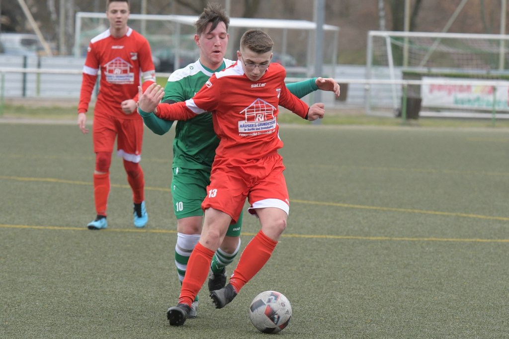 Zum Beginn der Rückrunde muss die Ahrensfelder Landesliga-Reserve im Ortsderby gegen Rot-Weiß Schönow eine derbe und auch in der Höhe verdiente Heimspielniederlage hinnehmen. Dabei begann die Partie für die Ahrensfelder noch recht vielversprechend. Denn man begegnete den vor der Saison hochgehandelten Gästen absolut auf Augenhöhe und präsentierte sich recht gefestigt. Mit dem Wind im Rücken übernahm Schönow nach einer guten Viertelstunde zusehends die Kontrolle, ohne aber in Tornähe zu kommen. Mit der eigentlich ersten Chance, unter großer Unterstützung der Hausherren im schwachen Spielaufbau, fiel das 0:1. Torschütze war Rik Roelofs, der mit feinem Anspiel von Christoph Spitze zum Alleingang Richtung Tor eingeladen wurde und die Kugel unhaltbar an Heimkeeper Vollmer vorbeischob (23.). So ein wenig begann für Grün-Weiss eine Leidenszeit, denn viel lief nicht mehr zusammen. Schönow hatte nun leichtes Spiel und erhöhte durch Pascal Bettge, der ebenfalls vollkommen frei zum Torschuss kam und die Kugel an Vollmer vorbei ins Tor schlenzte (27.). Ahrensfelde hatte in der Folge großes Glück, dass sich Schönow im Auslassen von „Hundertprozentigen“ extrem schlampig präsentierte. Christoph Spitze und Rik Roelofs waren dabei die auffälligsten Probanden, die die Treffer drei und vier hätten erzielen müssen (30., 36.). Nur einmal schaffte es Grün-Weiss im ersten Durchgang zum Torschuss. Florian Redder hatte vielversprechend abgezogen, aber in Gästekepper Enrico Müller seinen Gegenpart gefunden, der überragend reagierte (43.). So machte Schönow in der Nachspielzeit der ersten Halbzeit noch das 0:3 durch Hannes Krüger, was schlussendlich den endgültigen Untergang der Heimtruppe besiegelte (45.+1). Im zweiten Durchgang brachte Grün-Weiss nun mit Windunterstützung mehr Präsenz auf die Platte, ohne aber Zählbares auf die Rechnung zu bekommen. Schönow hingegen schaltete einige Gänge zurück, verlor auch etwas die Spielkontrolle, kam aber trotzdem noch zum 0:4 (87.). Peter Erdmann war der Torschütze, der einen Foulelfmeter unhaltbar in die Maschen setzte. „Erste Halbzeit haben wir Ahrensfelde klar beherrscht, danach haben wir etwas nachgelassen. Ich denke, dass war dann Kopfsache, weil wir uns auf Grund der Schwäche des Gegners zu sicher fühlten. Schlussendlich bin ich zufrieden mit dem Rückrundenauftakt.“ analysierte Schönows Trainer Tobis Robel den Auftritt seiner Mannschaft kurz nach Spielende. Heimtrainer Daniel Lüß war natürlich nicht so erfreut über den Vortrag seiner Jungs. „Schönow war natürlich fußballerisch besser, ob wohl ich die Partie recht offen gesehen habe. Mit Hacke, Spitze, eins, zwei, drei kommt man natürlich nicht zum Erfolg. Wir sind vor dem Tor einfach zu fahrig.“
