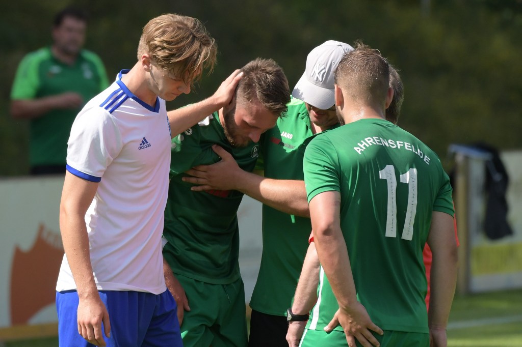 Das zweite Testspiel der noch jungen neuen Saison gewinnt Grün-Weiss Ahrensfelde beim Gastspiel in Hohen Neuendorf mit 4:2. Die Hausherren, die mit Ihrer Sportanlage in der Oberhavel beheimatet sind, aber im Berliner Spielbetrieb in der Bezirksliga auf Punktejagd gehen, sahen über die gesamte Spielzeit eine überlegene Brandenburger Landesliga-Truppe. Dabei hatte Ahrensfelde durch Urlaub und persönliche Verpflichtungen nicht alle Mann an Bord, was sich auch im Spielfluss und auch in einigen Abwehrsituationen negativ auswirkte. Hohen Neuendorf hingegen hielt besonders in der ersten Halbzeit gut dagegen und bediente dabei nicht immer der fairsten Mittel, was auch Felix Kieschnick zu spüren bekam. Dieser musste nach einer rüden Attacke kurz vor dem Halbzeitpfiff verletzt den Platz räumen. Besonders schmerzlich wird es für die Reserve der Ahrensfelder sein, denn Kieschnick wurde für diese Partie abgestellt. (Gute Besserung auf diesem Wege!) Zur Halbzeit führte Ahrensfelde verdient mit 3:1 durch Tore von Steven Knörnschild (12.) und Lucas Niko Gurklys (31., 35.). Den zwischenzeitlichen Anschlusstreffer hatte Vasco Schwarzwälder in 33. Minute erzielt.