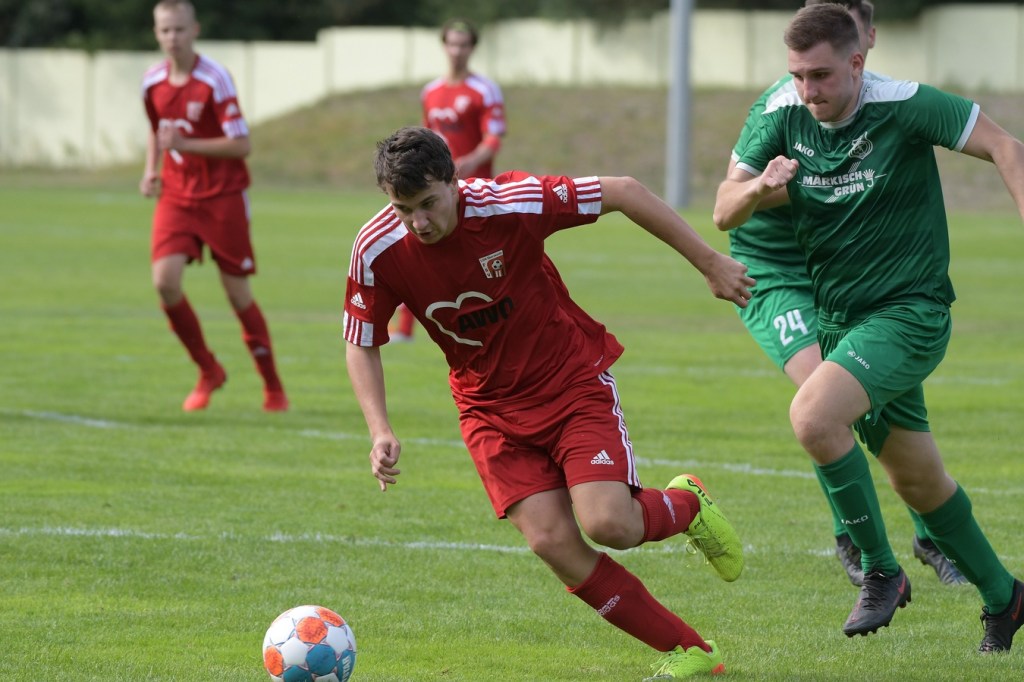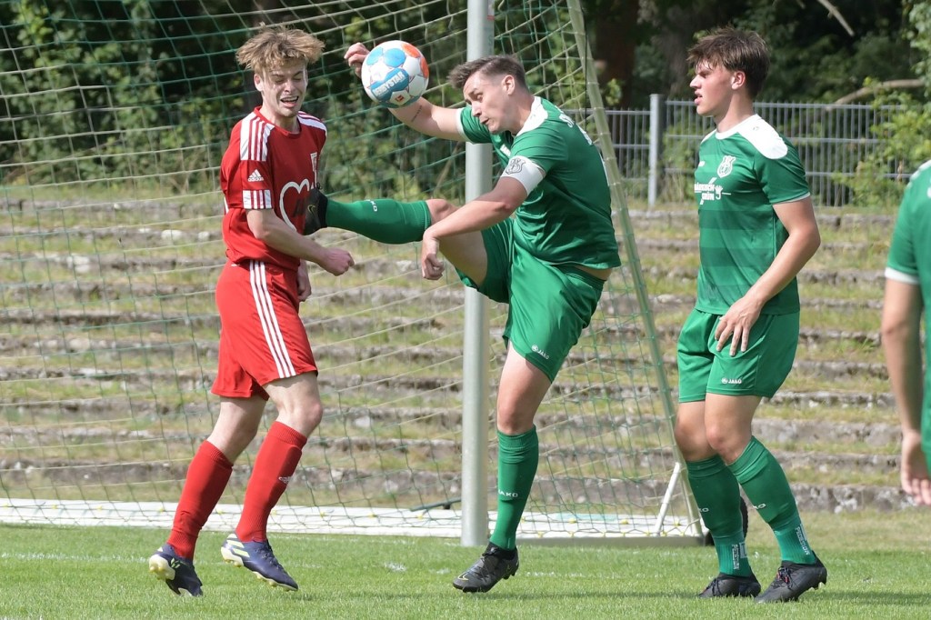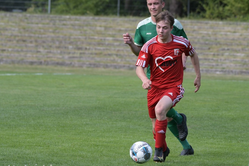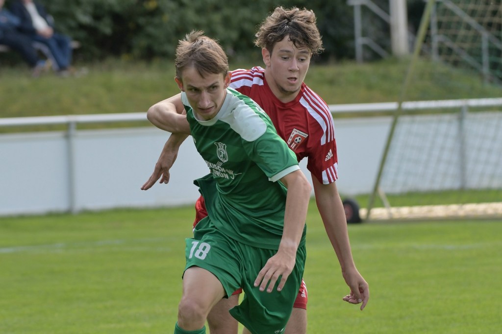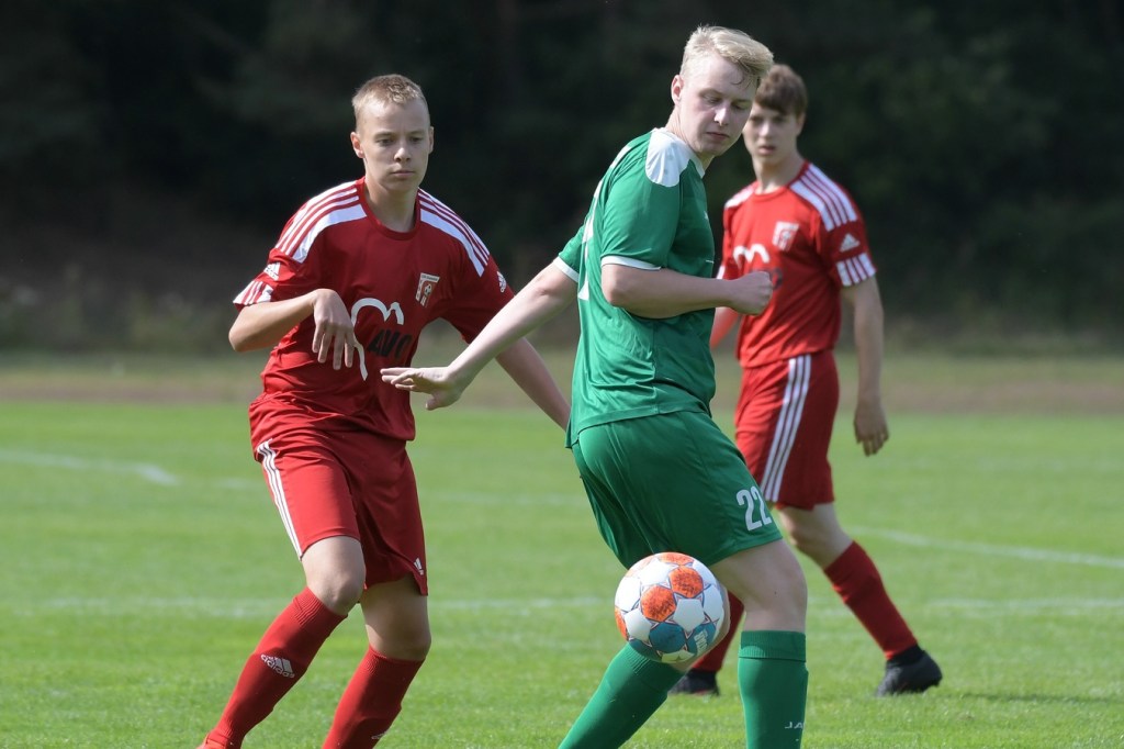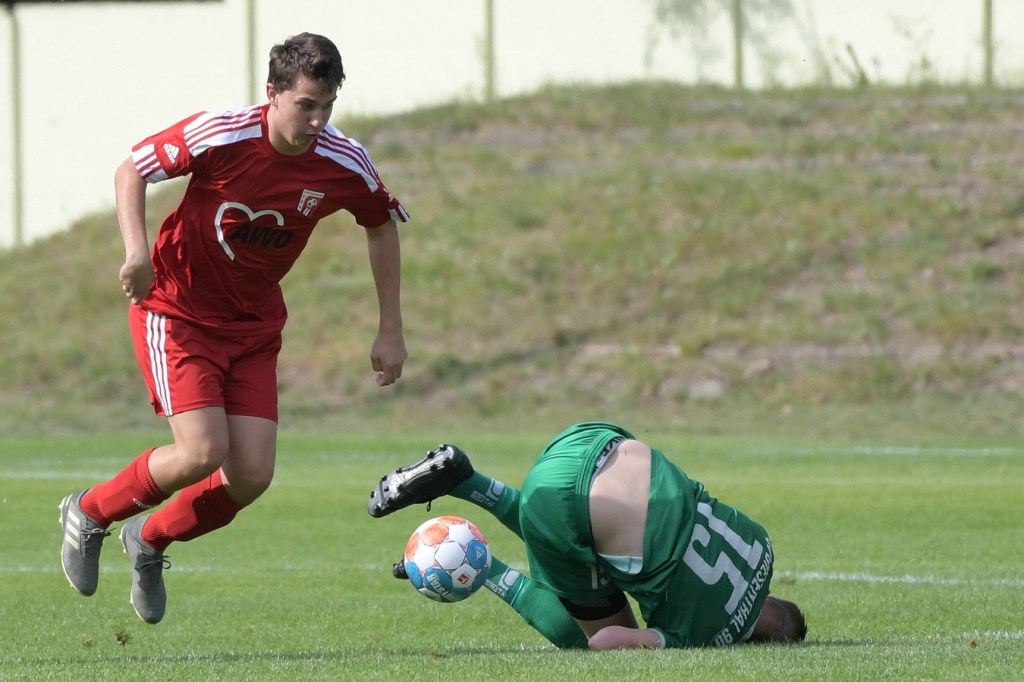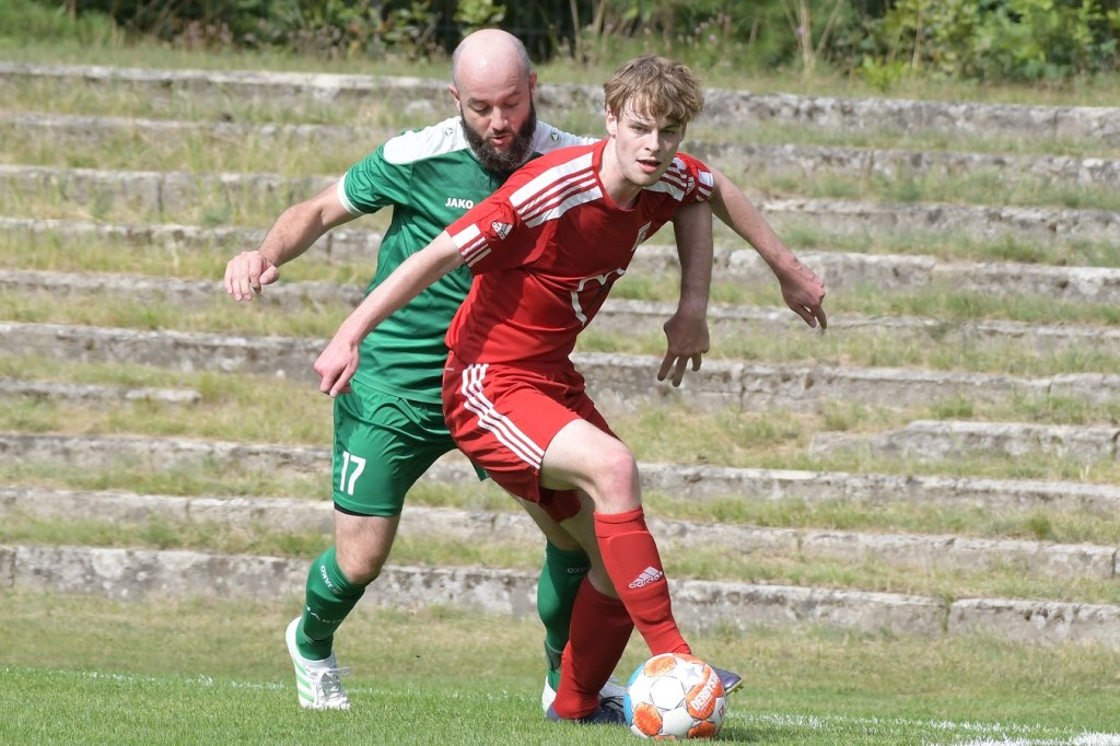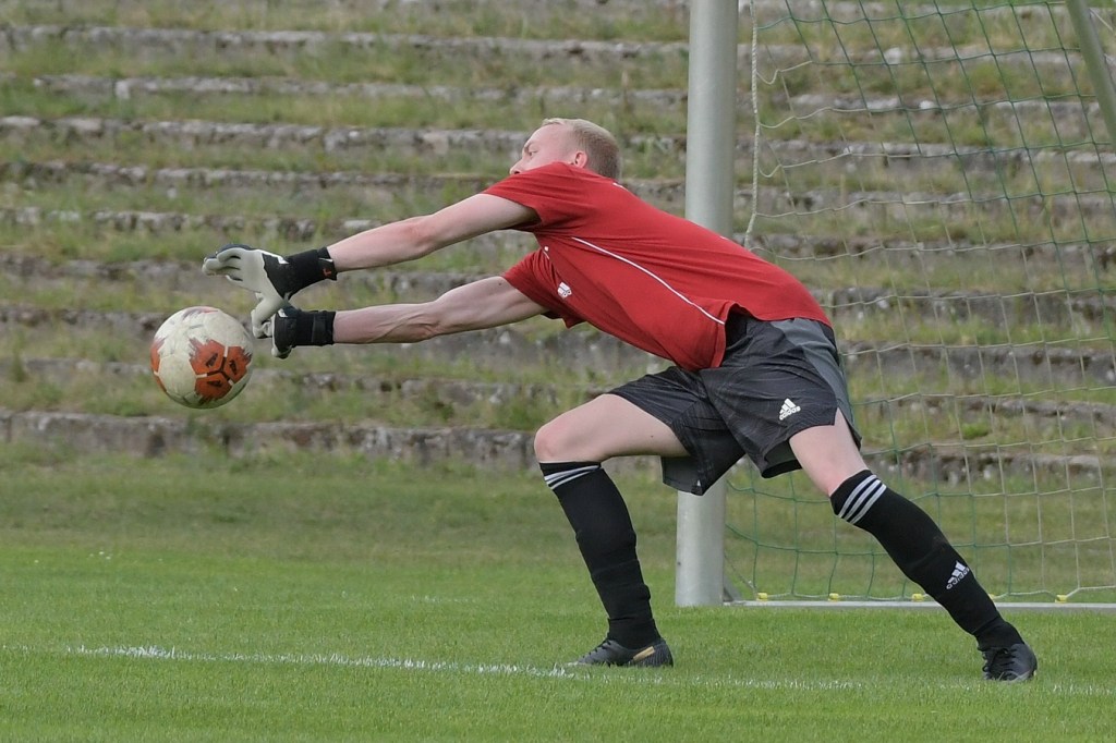 Nun zum Spiel. Beide Vertretungen hatten ihre Auftaktbegegnungen in den Sand gesetzt. Dabei sah Spielgemeinschafts Coach Thomas Eitner eine unverdiente Auftakt-Niederlage in Oderberg. „Wir hatten die klareren Chancen und hätten die Partie nicht verlieren dürfen“, so sein Statement kurz vor Spielbeginn. Doch der Auftritt seiner Jungs konnte an den vom 1. Spieltag nicht anknüpfen. Zumindest in der Kreation von Abschlussmöglichkeiten blieb die Truppe vieles schuldig. Es war eine interessante Begegnung, in der die Gäste sich viel lauffreudiger, zielstrebiger und vor allem spielsicherer präsentierten. So schleppten sich die Angangsminuten etwas, doch mit zunehmender Dauer nahm die Schlagzahl der Lokführer Richtung Kasten der Heimmannschaft merklich zu. Besonders die Offensivstrategen Maximilian Rohling und Jakob Müller wechselten sich im „Versieben“ von sehr guten Möglichkeiten ab. So hätte sich die Heim-Truppe kaum beschweren können, wenn man nach einer guten halben Stunde den Ball vier oder fünf Mal aus dem eigenen Kasten holen und zum Anstoß schreiten müssen. Biesenthal/Marienwerder hingegen, konterte sporadisch und hatte in der 24. Minute nach einem langen Ball von Roman Stasik die erste verheißungsvolle Tormöglichkeit. Doch Adressat Kevin Brömer nahm sich nicht die Zeit und durchaus vorhandene Freiheit noch näher an des Gegners Kiste zu kommen und schloss viel zu früh ab. So blieben im Endeffekt nur ein paar wenige Halbchancen, die Gästekeeper George Burghause kaum in Bedrängnis brachten. Lok haderte mit sich, blieb aber weiterhin am Drücker. Schlussendlich folgte noch die Belohnung, welche Maximilian Rohling erzielte und damit seine Truppe mit dem moralischen Vorteil in die Kabine zur Halbzeitbesprechung schickte. Rohling wurde zum Abstauber, nachdem SpG-Torsteher Stephan Wichert den ersten platzierten Schuss nur abklatschen konnte und Rohling die Kugel förmlich vor die Füße sprang (43.).