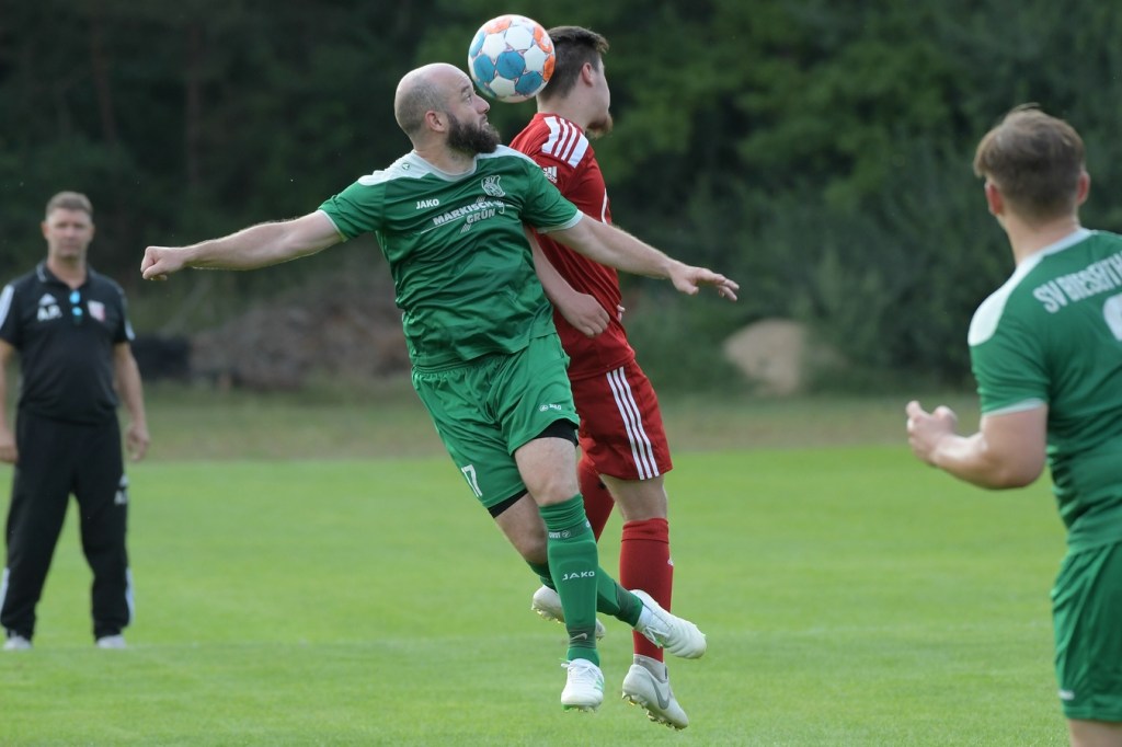 Zum Wiederanpfiff wechselte Biesenthal/Marienwerder zweimal aus. Thomas Eitner hatte seiner Truppe scheinbar im der Halbzeit-Laudatio noch einmal die Leviten gelesen, denn das nun Dargebotene war durchaus positiver. So ergaben sich nun auch klare Möglichkeiten, die innerhalb von zwei Minuten, den bis dato erlebten Spielverlauf, stark auf den Kopf stellten. Ein sehenswerter Angriff über die rechte Seite mit passender Flanke Richtung Elfmeterpunkt war die Vorbereitung zum Ausgleich. Dort hatte die Lok-Abwehr Kevin Brömer sträflich frei gelassen, der die genaue Peilung nahm und das Spielgerät unhaltbar unter die Latte nagelte (58.). Biesenthal/Marienwerder wollte mehr und die Gunst des Wankens der Gegnerschaft für sich nutzen. Ein Konter, mit mehreren Zwischenstationen, landete letztendlich bei Daniel Schwarz. Der blieb in der linken Strafraumhälfte ganz cool und lupfte am herauseilenden Burghause vorbei und ließ sich und seine Kollegen jubeln, nachdem der Ball im langen unteren Eck im Netz zappelte (60.). In der Folge lebte die Partie von der Spannung und besonders angefressenen Gästen. Diese zeigten Moral und kamen in der 66. Minute zum Ausgleich. Ein langer Einwurf in den Strafraum und ein Durcheinander in den Abwehrhandlungen mit kaum Zugriff, brachte Titus Herrmann in die Lage, den Ball irgendwie über die Linie zu drücken. Die Partie bewegte sich auf des Messers Schneide, in der die Eberswalder Truppe schlussendlich den längeren und vielleicht auch glücklicheren Atem hatte. Eine Flanke von der rechten Seite wurde per Kopfball zurück in den Strafraum gebracht, wo sich David Papendick am Ende bedankte, dass er so frei ebenfalls per Kopfball das unhaltbare 2:3 erzielen und damit den Auswärtsdreier für seine Truppe eintüteten konnte. Biesenthal/Marienwerder versuchte nochmal alles um die Niederlage abzuwenden. Doch mit der berühmten Brechstange im Gepäck wollte nur noch wenig gelingen, so dass man am Ende mit leeren Händen dastand. SpG-Übungsleiter Thomas Eitner war aber im gesamten nicht erzürnt, dass der Saisonstart etwas in die Hose zu gehen scheint. „Erst einmal bin ich mit der zweiten Halbzeit sehr zufrieden. Sicherlich hatten wir Glück, dass wir zur Halbzeit nicht schon tot waren. Die Moral hat auf jeden Fall gestimmt. Von Fehlstart würde ich nicht reden, wie auch in Oderberg war heute von Niederlage, Unentschieden und Sieg alles drin.“ Sein Gegenüber, Lok-Trainer Andreas Prill, war schon froh, dass die drei Punkte der Lok zugeschrieben werden konnten. „Dass nicht alles reingeht, ist schon klar, aber eine Führung zur Halbzeit mit vier oder fünf Toren wäre absolut verdient gewesen. Aber das ist halt unser Manko, wie schon letzte Woche bei einem guten Gegner in Lobetal. Wir wollten unbedingt den Sieg, da ist es eigentlich auch egal, ob mit fünf Toren Vorsprung oder so knapp wie heute:“