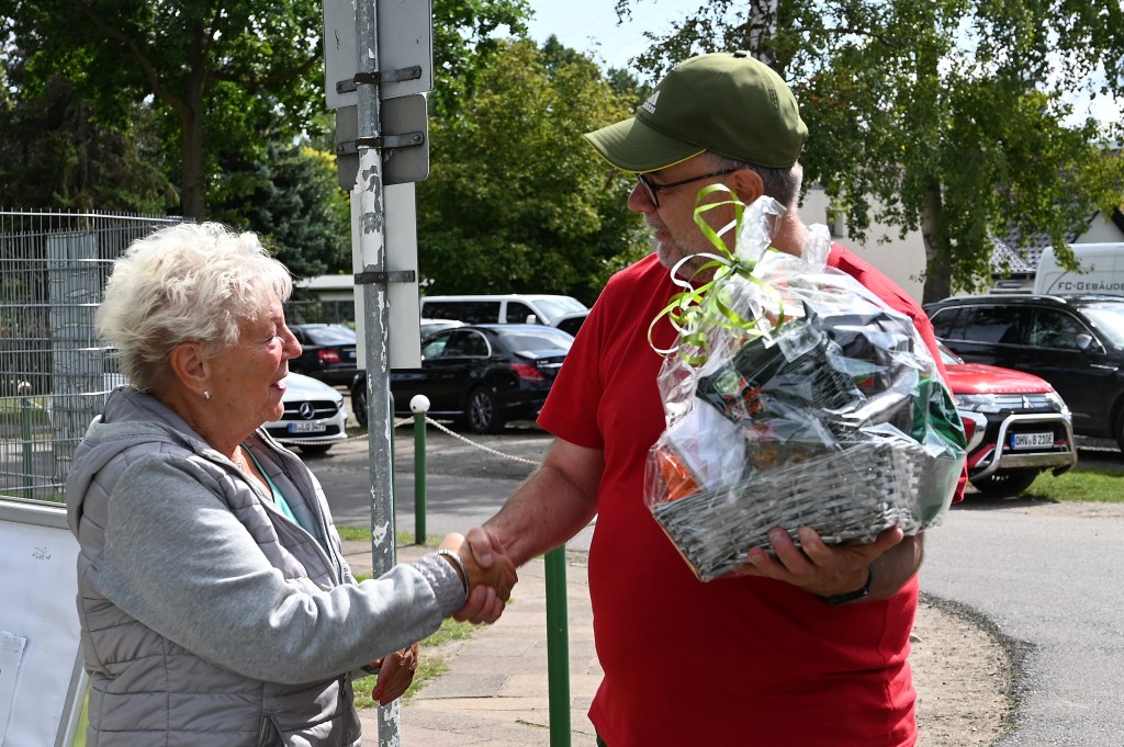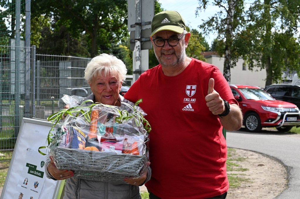 Christel Baron, wer ist das, werden sich viele fragen. Insider und Besucher der Heimspiele von Grün-Weiss Ahrensfelde werden sie kennen und schätzen. Denn an ihr kommt man eigentlich nicht vorbei, wenn man ehrlich ist und davon gehe ich im Allgemeinen auch aus. Denn Christel Baron kassiert den Eintritt und dies mit einer sehr freundlichen Art und Weise. Dabei wird man sie nie knurrig erleben, nein, sie hat immer ein gutes Wort übrig und ist auch zu einem Schwätzchen bereit. Christel ist Rentnerin und zu diesem Job durch ihren Mann Hans gekommen, der übrigens schon gefühlte „hundert Jahre“ im Verein zugange ist und mit seiner Frau auch regelmäßig mit Spenden den Verein unterstützt. Grün-Weiss ist froh, dass man Christel schon zum Stammpersonal zählen kann, denn dieser Job, sind wir mal ehrlich, ist nicht das was man auf dem Fußballplatz erleben möchte. Zum Ersten ist man selten nah am Spielfeldrand und muss sich zusätzlich das ein oder andere Mal mit zahlungsunwilligen Gästen rumärgern. Ich habe es selber schon erlebt, wie eine Familie mit einem Kleinkind nicht einsehen wollte, Eintritt zu bezahlen und dabei sehr ausfällig und beleidigend geworden ist.