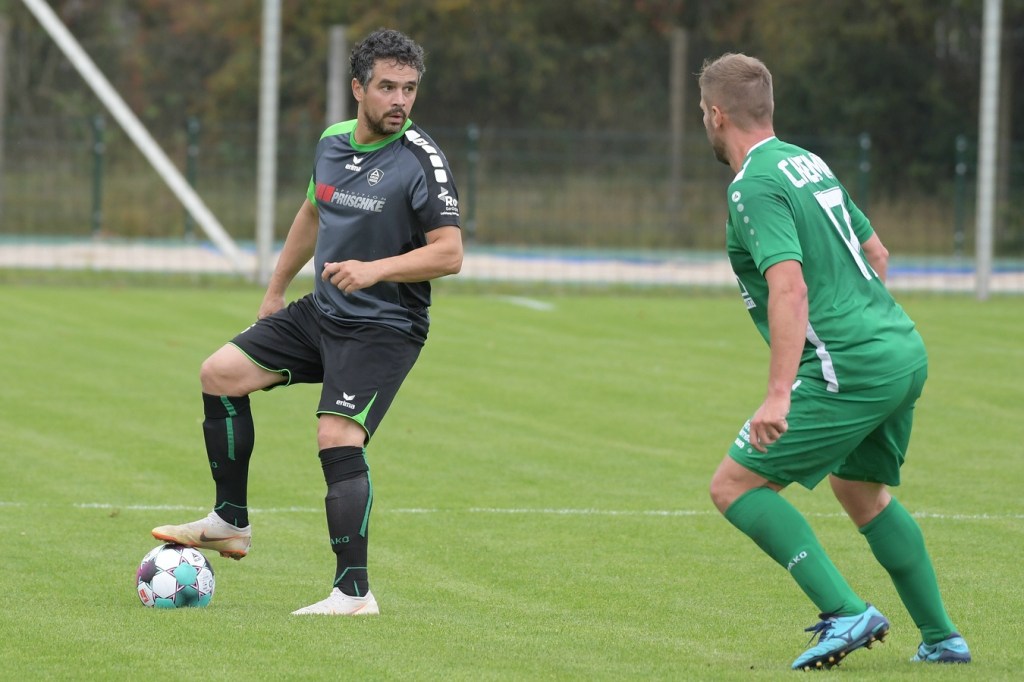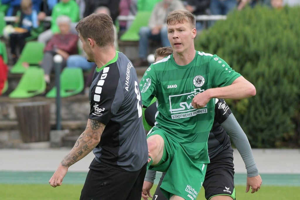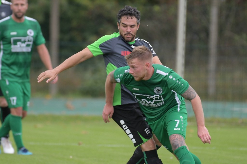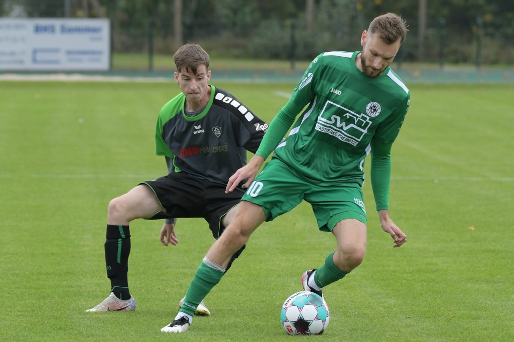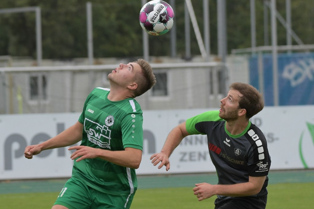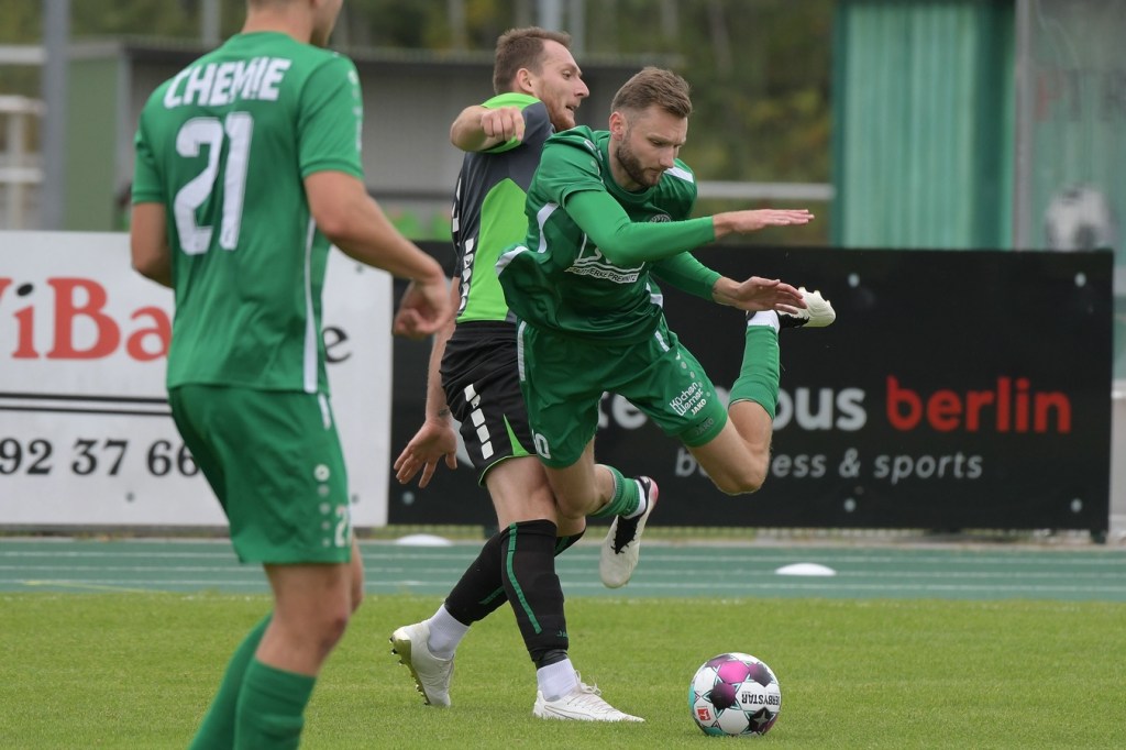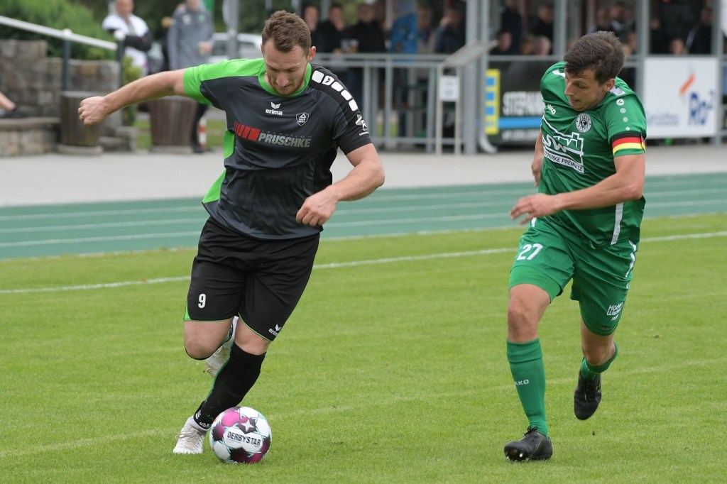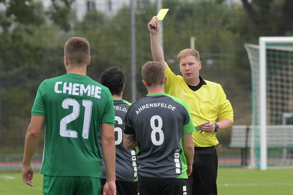 Wenn man das nackte Ergebnis liest, erscheint der Sieg des Favoriten aus Ahrensfelde standesgemäß. Schlussendlich unter Strich war es auch so und auch verdient. Nach dem Kantersieg aus der Vorwoche in Velten waren die Hoffnungen auf ein klares Endergebnis nicht von der Hand zu weisen, zumal sich die Gäste in der frühen Phase der Saison mit vier Punkten noch nicht ganz im ruhigen Fahrwasser der Liga befanden. Von Beginn an war klar, wer die Begegnung diktieren würde. Grün-Weiss bestimmte das Geschehen gegen körperlich robuste und mit Leidenschaft zu Werke gehende Gäste und musste sich schon früh damit abfinden, dass Geduld das Hauptanliegen werden würde. „Man kann nicht davon ausgehen, dass wir jede Woche die Gegner aus dem Stadion schießen“, hatte GWA-Trainer Sven Orbanke im Anschluss der Partie seine Truppe so ein wenig in Schutz genommen und damit auch schon durchblicken lassen, dass man es im Laufe der Saison mit Teams zutun bekommt, die die defensivere Spielweise bevorzugen werden. Denn genau das war die Marschroute der Chemiker, die dann bei eigenem Ballbesitz die Kugel lang Richtung GWA-Kasten schlugen und mit dem pfeilschnellen Elias Große schon eine kleine Waffe in ihren Reihen hatten. Die erste nennenswerte Möglichkeit der Begegnung hatte nämlich dieser Große, doch schloss er viel zu früh und überhastet ab, so dass der Ball weit über den Kasten flog (7.). Ahrensfelde hingegen tat sich schwer und versuchte es ebenfalls mit langen Bällen. Doch oft wurden die Anspiele mit zu viel „Schmackes“ in den Raum gebracht, was den Adressaten im läuferischen Anspruch einiges abverlangte und einige Male verpuffte, weil das Spielgerät nicht erreicht werden konnte. Möglichkeiten waren im Ansatz zwar vorhanden, doch fehlte dem Ahrensfelder Unterfangen einfach die zwingende Note. Chancen, wie die von Steven Knörnschild, den der Ball von den Gästen förmlich zum Kopfball im Abwehrdurcheinander zugespielt und erst dadurch gefährlich wurde, waren dem Zufall geschuldet (21.). Es wurde auch nicht viel besser, nachdem Dominic Gesierich das 1:0 erzielt hatte. Das sehenswerte Anspiel von Manuel Schmiedebach, genau durch die Abwehrkette hindurch, verwertete Gesierich per Schuss, ohne lange zu fackeln und unhaltbar (25.). Die Partie wurde nun noch zäher. Premnitz hatte schon vor dem Treffer den letzten Riegel auf sechs Personen erhöht und dem Favoriten damit eine große Denkaufgabe und vor allem Ideensuche aufgebürdet. Und daran hatte Grün-Weiss stark zu knabbern. Zwischendurch war dann wieder mal Elias Große an der Reihe, doch sein Abschluss verballerte er ebenso wie beim ersten Versuch (30.). Ahrensfelde blieb zwar am Drücker und irgendwie in der Chancenerarbeitung weiter im Zufalls-Modus. Wie in der Möglichkeit durch Dominic Gesierich, als Chemie kein richtiges Mittel fand, um den Ball aus der Gefahrenzone zu entfernen und dann Glück hatte, dass der Schütze nur den Pfosten traf, der Ball kurz vor der Torlinie entlangrollte und neben dem anderen Pfosten ins Aus ging (32.). In der 34. Minute musste auch mal GWA-Keeper Mateusz Daniel Mika eingreifen. Elias Große, der Gäste-Unruheherd schlechthin, wurde wieder geschickt. Doch der Schlussmann war mit dem Kopf zur Stelle und machte damit die aussichtsreiche Möglichkeit zunichte.
