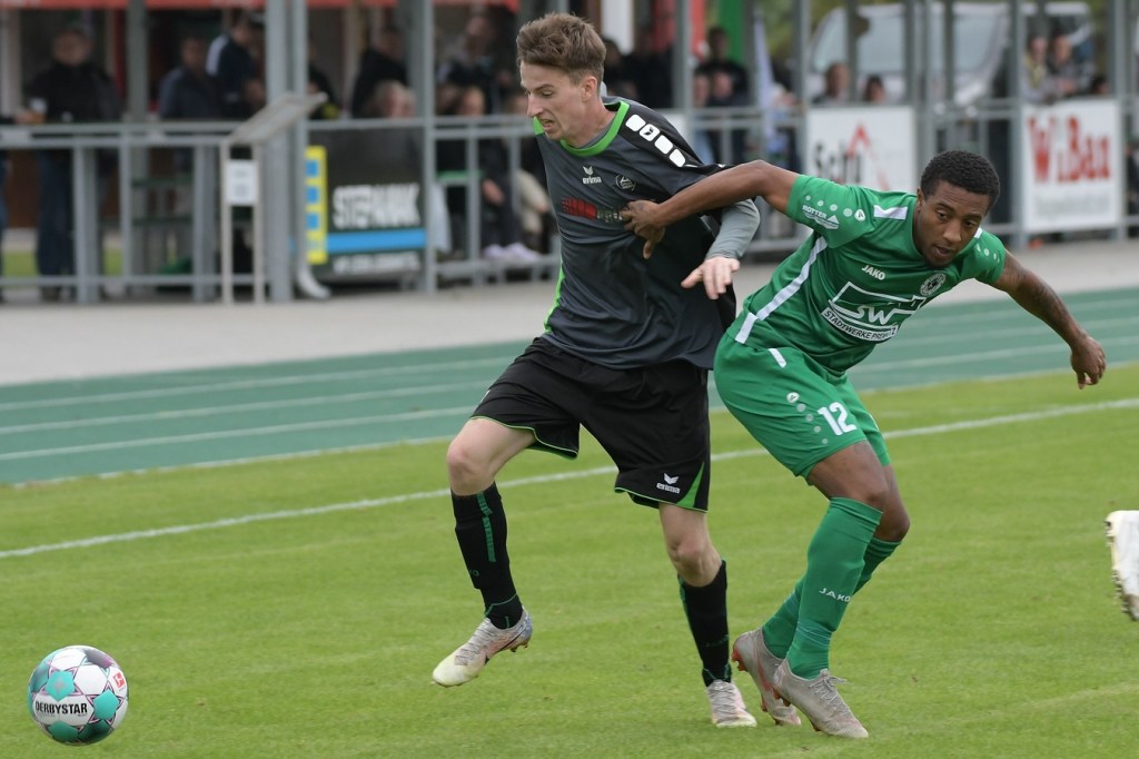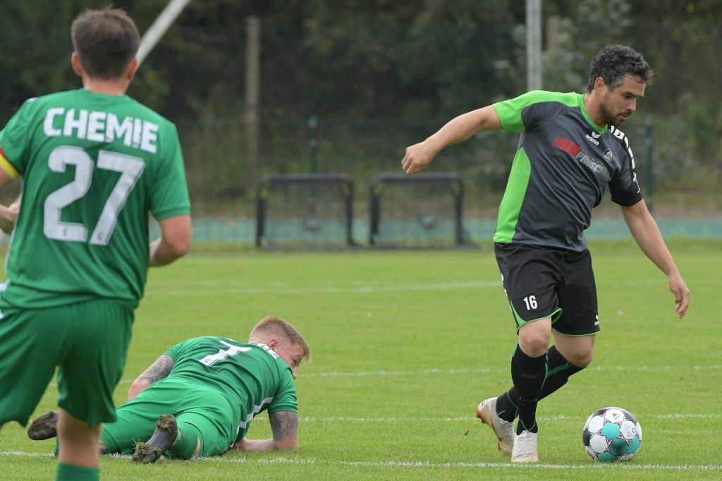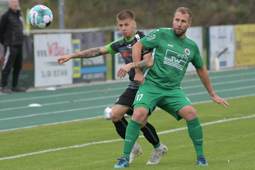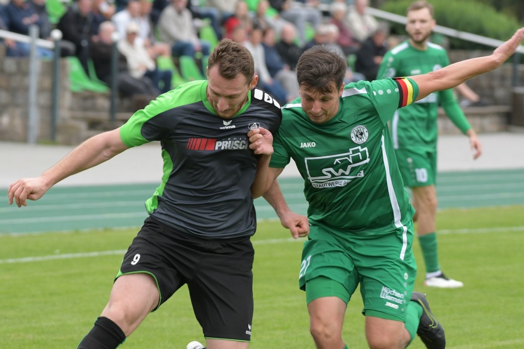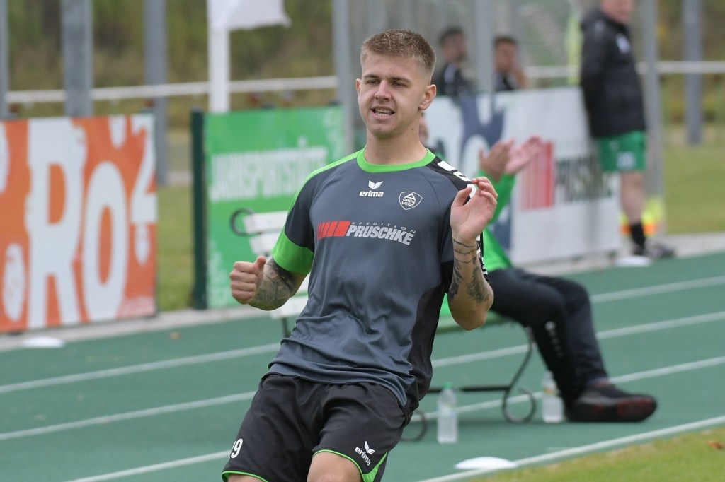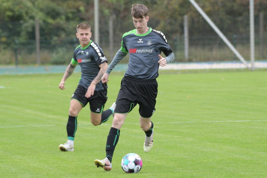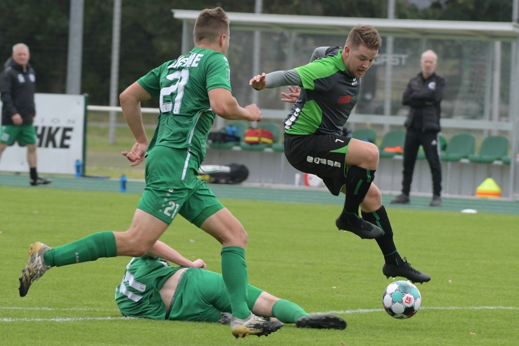 Wenn man das nackte Ergebnis liest, erscheint der Sieg des Favoriten aus Ahrensfelde standesgemäß. Schlussendlich unter Strich war es auch so und auch verdient. Nach dem Kantersieg aus der Vorwoche in Velten waren die Hoffnungen auf ein klares Endergebnis nicht von der Hand zu weisen, zumal sich die Gäste in der frühen Phase der Saison mit vier Punkten noch nicht ganz im ruhigen Fahrwasser der Liga befanden. Von Beginn an war klar, wer die Begegnung diktieren würde. Grün-Weiss bestimmte das Geschehen gegen körperlich robuste und mit Leidenschaft zu Werke gehende Gäste und musste sich schon früh damit abfinden, dass Geduld das Hauptanliegen werden würde. „Man kann nicht davon ausgehen, dass wir jede Woche die Gegner aus dem Stadion schießen“, hatte GWA-Trainer Sven Orbanke im Anschluss der Partie seine Truppe so ein wenig in Schutz genommen und damit auch schon durchblicken lassen, dass man es im Laufe der Saison mit Teams zutun bekommt, die die defensivere Spielweise bevorzugen werden. Denn genau das war die Marschroute der Chemiker, die dann bei eigenem Ballbesitz die Kugel lang Richtung GWA-Kasten schlugen und mit dem pfeilschnellen Elias Große schon eine kleine Waffe in ihren Reihen hatten. Die erste nennenswerte Möglichkeit der Begegnung hatte nämlich dieser Große, doch schloss er viel zu früh und überhastet ab, so dass der Ball weit über den Kasten flog (7.). Ahrensfelde hingegen tat sich schwer und versuchte es ebenfalls mit langen Bällen. Doch oft wurden die Anspiele mit zu viel „Schmackes“ in den Raum gebracht, was den Adressaten im läuferischen Anspruch einiges abverlangte und einige Male verpuffte, weil das Spielgerät nicht erreicht werden konnte. Möglichkeiten waren im Ansatz zwar vorhanden, doch fehlte dem Ahrensfelder Unterfangen einfach die zwingende Note. Chancen, wie die von Steven Knörnschild, den der Ball von den Gästen förmlich zum Kopfball im Abwehrdurcheinander zugespielt und erst dadurch gefährlich wurde, waren dem Zufall geschuldet (21.). Es wurde auch nicht viel besser, nachdem Dominic Gesierich das 1:0 erzielt hatte. Das sehenswerte Anspiel von Manuel Schmiedebach, genau durch die Abwehrkette hindurch, verwertete Gesierich per Schuss, ohne lange zu fackeln und unhaltbar (25.). Die Partie wurde nun noch zäher. Premnitz hatte schon vor dem Treffer den letzten Riegel auf sechs Personen erhöht und dem Favoriten damit eine große Denkaufgabe und vor allem Ideensuche aufgebürdet. Und daran hatte Grün-Weiss stark zu knabbern. Zwischendurch war dann wieder mal Elias Große an der Reihe, doch sein Abschluss verballerte er ebenso wie beim ersten Versuch (30.). Ahrensfelde blieb zwar am Drücker und irgendwie in der Chancenerarbeitung weiter im Zufalls-Modus. Wie in der Möglichkeit durch Dominic Gesierich, als Chemie kein richtiges Mittel fand, um den Ball aus der Gefahrenzone zu entfernen und dann Glück hatte, dass der Schütze nur den Pfosten traf, der Ball kurz vor der Torlinie entlangrollte und neben dem anderen Pfosten ins Aus ging (32.). In der 34. Minute musste auch mal GWA-Keeper Mateusz Daniel Mika eingreifen. Elias Große, der Gäste-Unruheherd schlechthin, wurde wieder geschickt. Doch der Schlussmann war mit dem Kopf zur Stelle und machte damit die aussichtsreiche Möglichkeit zunichte.