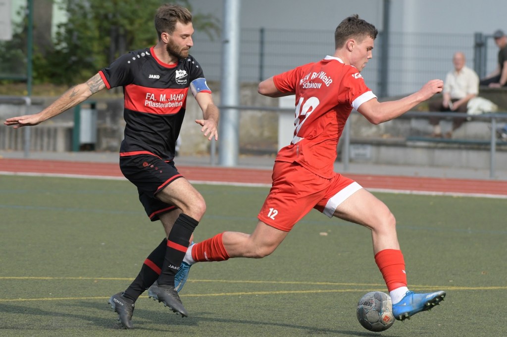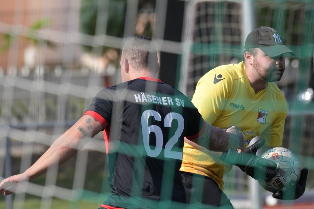 Die Begegnung begann recht munter, denn Häsen präsentierte sich, auch wenn das Punktezählwerk dies nicht vermuten ließ, ebenfalls spielfreudig und auch mit ein paar Möglichkeiten. Dabei musste der Favorit nach noch nicht einmal zwei Minuten das erste Mal durchatmen. Steffen Ruch verwerte einen Freistoß aus dem linken Halbfeld zu einem wuchtigen Kopfball, der nur knapp am linken Pfosten vorbeihuschte. In der 7. Minute wurde es dann auch für die Gastgeber offensiv gefährlich. Maximilian Bachnick versuchte es nach einer Körperdrehung mit einem Schuss aus der zweiten Reihe, doch passierte das Spielgerät die Auslinie weit über dem Gästekasten. Verheißungsvoll wurde es für Rik Roelofs nach 13 Minuten, doch sein Abschluss rutschte ihm über den Schlappen und verlor somit seine Gefährlichkeit. Das 1:0 war eher einer Zufälligkeit geschuldet und schlussendlich von den Häsenern selber produziert. Beim Rauslaufen verschätzte sich Keeper Philipp Pommering und hatte auch noch Pech, dass seine Kollegen im Tiefschlaf waren, die sicherlich noch hätten eingreifen können. Letztendlich schnappte sich Maximilian Bachnick die Kugel und brachte diesen ungehindert im leeren Tor unter. (17.). Die Hoffnung auf eine etwas lebhaftere Partie wurde vor allem durch die Hausherren erstickt. Zwar erhöhte Stefan Schulz in der 22. Minute auf 2:0, nachdem er per Diagonalball auf der linken Seite geschickt wurde und schnörkellos einnetzte, trotzdem fehlte dem Auftritt des Favoriten das gewisse Etwas. „Wo ist das Selbstverständnis, die Euphorie, die vorgelebte Gier und das Mannschaftliche der letzten Saison, bevor Corona die Spielzeit vorzeitig beendete?“, war die Frage, welche Tobias Robel im Nachgang beantworten sollte. „Ich bin ganz ehrlich, ich weiß es nicht, das kann ich momentan nicht beantworten. Wir sehen das auch und suchen die Ansätze, probieren auch einiges aus, schlussendlich haben wir bis dato noch keinen richtigen Erfolg“, so der ratlose Tobias Robel, den dieser Makel scheinbar doch schon sehr ärgert. Denn in der Folge bestimmte Rot-Weiß gänzlich das Geschehen gegen einen Gegner, der nie aufgab, schlussendlich aber dem qualitativen Unterschied Tribut zahlen musste. Sicherlich musste Häsen auf einige Stammkräfte verzichten, sich aber auch immer mehr eingestehen, dass in Schönow wohl nicht zu holen ist. Mit dem 3:0 waren dann die Messen endgültig gesungen. Ein Freistoß auf der linken Seite, kurz hinter der Mittellinie, landete bei Rik Roelofs, der im Strafraum in vollster Freiheit zum Kopfball kam und unhaltbar einnetzte (41.).