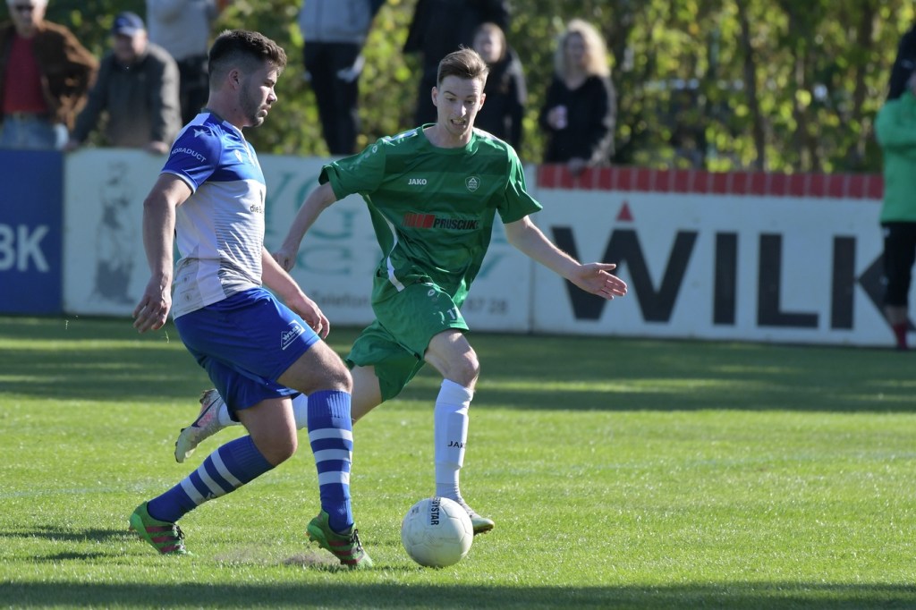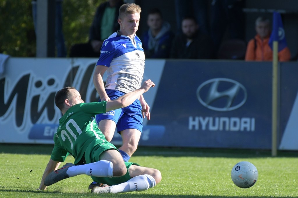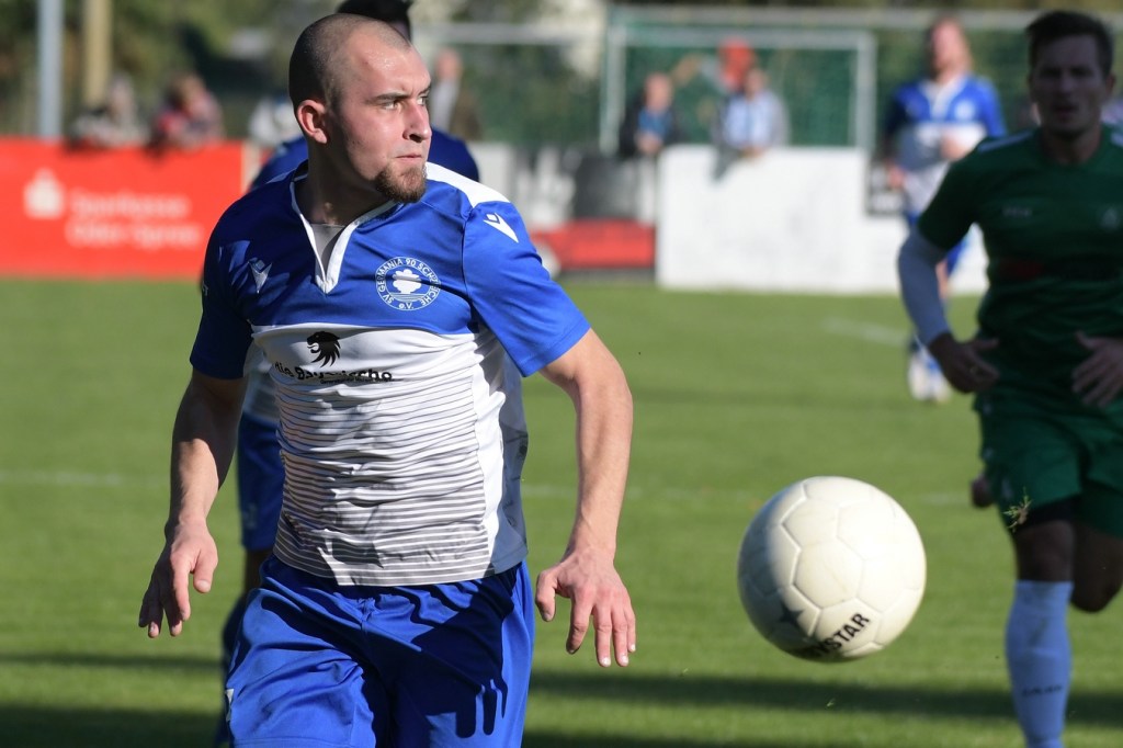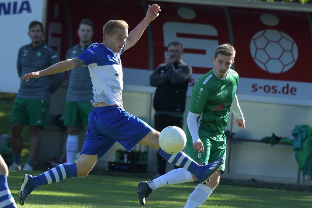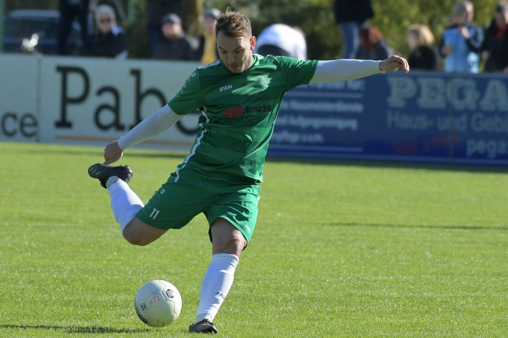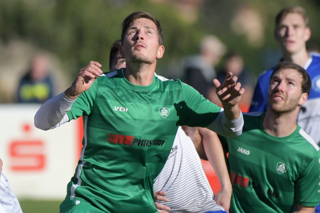 Die Partie begann recht flott und brauchte keine Aufwärm- bzw. Abtastphase. Beide Vertretungen begegneten sich auf Augenhöhe, wobei Ahrensfelde schon etwas mehr investierte und dies auch in Möglichkeiten umsetzte. So war es Tilo Scheffler, der einen Schuss nach einem abgewehrten Eckball aus gut 18 Metern aufs Schöneicher Tor brachte, dabei aber noch nicht genug Zielwasser intus hatte und den Ball doch weit über dem Tor setzte (2.). Die nächste Gästemöglichkeit hatte Steven Knörnschild. Er schraubte sich nach eine Flanke von der linken Seite im Kopfballduell am höchsten, schaffte es aber letztendlich auch nicht, das Spielgerät platziert Richtung Tor zu bringen (8.). Im zweiten Versuch, dann in der 11. Minute, machte es Knörnschild besser. Diesmal benutzte er den Fuß nach einem sehenswerten Anspiel durch Patrick Hamel und ließ mit seinem Schlenzer Germania-Keeper Chris Kütter keine Abwehrmöglichkeit. Dass dies im Endeffekt das Tor des Tages werden sollte, war zu diesem Zeitpunkt überhaupt noch nicht zu vermuten. Denn Ahrensfelde wollte mehr und übernahm in der Folge zusehends die Regie in der Partie. Schöneiche kam überhaupt nicht zur Entfaltung, musste viel hinterherlaufen und war gerade in den Zweikämpfen oft der zweite Sieger. Grün-Weiss war griffig und irgendwie auch immer einen Schritt schneller. Julian Hentschel nahm nur 120 Sekunden später aus der zweiten Reihe maß, aber auch sein Abschluss landete in der oberen Etage des Schöneicher Kastens. Die Begegnung tauchte Mitte der Halbzeit in eine Phase ein, in der auch die Gästebemühungen verflachten und Höhepunkte immer seltener wurden. Germania suchte weiterhin die Tür zum Eintritt ins Spiel und schaffte es in der 28. Minute das erste Mal erwähnenswert vors Ahrensfelder Gehäuse zu kommen. Marco Spann sein Schuss von der Strafraumgrenze brachte aber kaum Gefährlichkeit und wurde leichte Beute für Gäste-Torsteher Mateusz Daniel Mika.