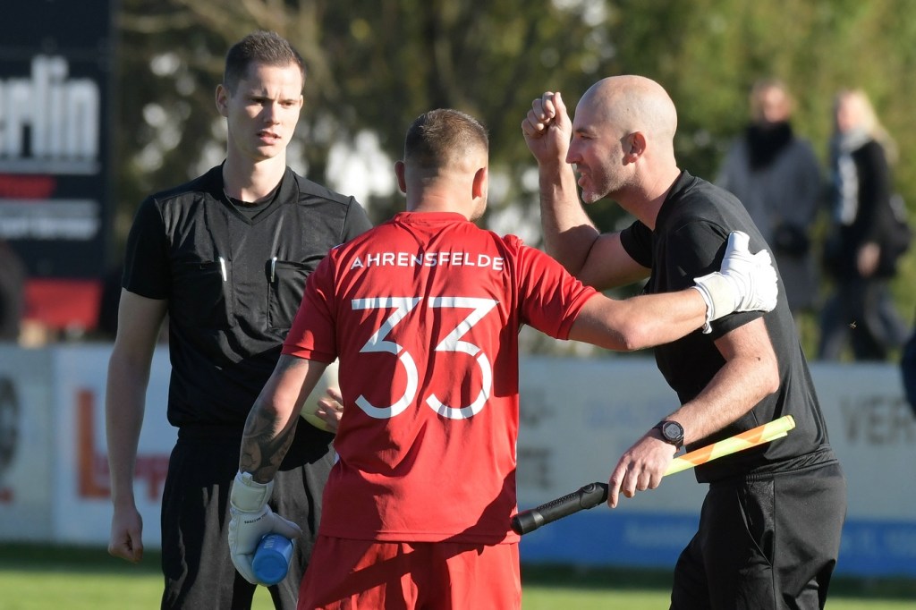 Mit der knappen Führung und der Hoffnung auf einen überzeugenderen Auftritt der Heimelf begann dann die zweite Halbzeit. Das Bemühen der Partie eine Wende zu geben, war den Hausherren nicht abzusprechen. Doch mehr als ein Flämmchen, welches nur kurze Zeit glimmte, war es dann doch nicht. Aber auch Ahrensfelde konnte den Schwung aus den Anfangsminuten des ersten Durchganges nicht wieder entfachen, so dass die Begegnung schon ein wenig lange Weile versprühte. Die 58. Minute war dann der erste Zeitpunkt in Halbzeit zwei, welche wieder eine Möglichkeit auf den Plan brachte. Ein Konter der Hausherren, den Artur Naftz abschloss und weit über das Tor setzte, konnte die knapp 400 Zuschauer auch nicht wirklich begeistern. Was der Begegnung grundsätzlich fehlte, war die Intensität und absolute Leidenschaft, zusammengefasst der Charakter eines Pokalfightes. Nick Meißner war es dann in der 61. Minute vorbehalten, den Sack für seine Ahrensfelder Truppe endgültig zuzumachen. Eine Flanke von der rechten Seite wurde abgewehrt und landete ihm direkt vor seinen Füßen. Das fast leere Tor vor sich, schaffte er das Kunststück die Kugel über das Tor zu entfernen. Im Auftritt der Gäste wurde man in der Folgezeit den Eindruck einfach nicht los, dass man schon im Verwaltungsmodus angekommen war. Der Platzverweis für Denis Teterea, der eine Toraus-Entscheidung gegen ihn mit einer knappen, aber knackigen Beleidung Richtung Schiedsrichter-Assistent Rene Müller kommentierte, brachte der Partie nun etwas mehr Knackigkeit. Die Zweikämpfe hatten nun Rasse und wurden auch mit Leidenschaft geführt. Schöneiche kam nun auch besser in die Partie. Doch große Torgefahr kam dabei auf beiden Seiten nicht mehr auf. Am Ende jubelte Grün-Weiss, bei dem GWA-Trainer Sven Orbanke im Nachgespräch nicht alles gefallen hatte. „Erst einmal finde ich, dass wir verdient weitergekommen sind. Trotzdem haben wir uns gerade im Vorwärtsgang nicht sehr klug angestellt. Wir waren auffällig oft im Abseits und haben auch wirklich gute Chancen zu einfach liegen lassen. Trotzdem muss ich sagen, dass Schöneiche der erste richtige Gradmesser war, den wir in dieser Saison hatten.“ Einen Wunschgegner für das Viertelfinale wollte Orbanke nicht nennen. „Wir nehmen, wie es kommt“, mehr war ihm in diesem Punkt nicht zu entlocken.