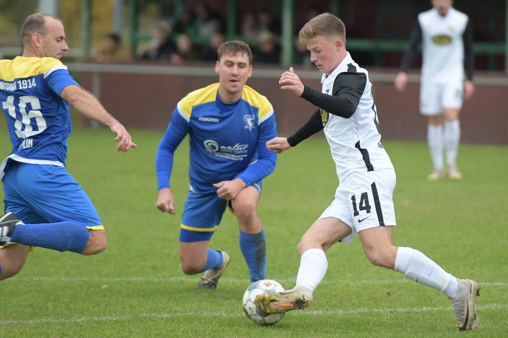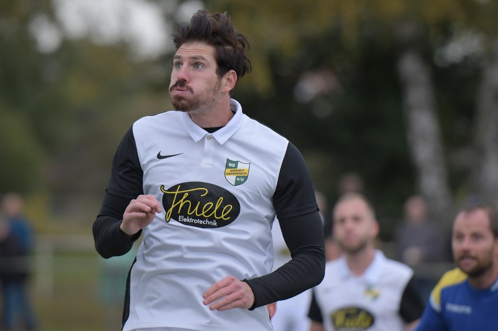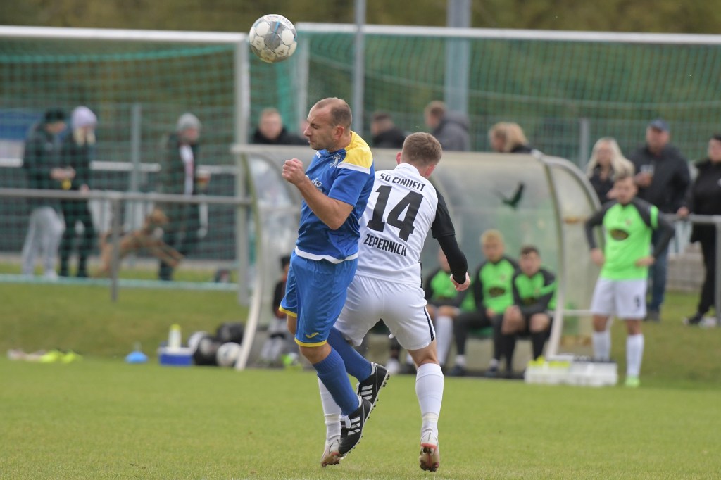 Mit viel Sicherheitsfußball stiegen beide Vertretungen in die Partie ein. Das Fehlen von Kevin Maek, der urlaubsbedingt fernblieb, merkte man dem Auftritt des bis dato Tabellenführers schon an. So wurde viel hinten quer gespielt und kaum Tempo aufgenommen. Templin, die im Übrigen vor der Saison niemand so richtig auf dem Zettel hatte, agierte in den Anfangsminuten auf Augenhöhe, musste aber mit zunehmender Dauer die Demarkationslinie immer weiter in die eigene Hälfte zurückverlagern. Das erste Rauchzeichen der Hausherren hätte Marinko Becke setzen können, nach dem er per Querpass von Jerome Ehweiner an der Strafraumgrenze angespielt wurde. Doch Becke hatte Pech, dass ihm die Kugel über den Spann rutschte und folgend klar im Aus landete (12.). Max Gerhard versuchte es dann mal aus der zweiten Reihe, doch auch sein Geschoß verfehlte der Kasten um einiges (18.). Die Gäste hingegen standen hinten sicher. Gerade die langen Kerle, die bei Flanken die Lufthoheit lebten, machten den großen Unterschied aus. Genauso wie bei den Standards im Zepernicker Strafraum. Denn genauso eine Möglichkeit brachte das 0:1. Ein Eckball, sehr präzise in den Strafraum gezirkelt, erreicht Templins Torgarant Johannes Collin, der sich im Kopfballduell durchsetzte und das Spielgerät fast unhaltbar einnetzte (26.). Zepernick war nun gefordert. Doch allzu viel kam dabei nicht rum. Und was der Truppe nun auf die Füße fiel, war der von ihrem Trainer angesprochene noch nicht beendete Prozess, mit der Selbstverständlichkeit und dem „das kriegen wir schon irgendwie hin“. Dass es mit dem Nervenkostüm situationsbedingt auch nicht zum Besten bestellt war, zeigten einige Diskussionsrunden mit dem Schiedsrichter. Jerome Ehweiner zum Beispiel, bekam sich wegen einer Belanglosigkeit kaum ein und holte sich dafür absolut verdient den gelben Karton ab (29.). Die Partie zog nun etwas an, wurde dadurch intensiver und auch hektischer. Zwar hatte Einheit noch das Übergewicht im Mittelfeld und wenn dann mal etwas Richtung Gästetor ging, hatte Schiedsrichterassistent Max Steiner etwas dagegen, weil er fast immer eine Abseitsstellung sah. Dass er dabei augenscheinlich nicht immer richtig lag, ließ weitere Gesprächstermine entstehen. „Alibi-Fußball“ war der Begriff, der über dem Auftritt der Heimtruppe schwebte und sicherlich zum Thema der Kabinen-Predigt wurde. Auf Gästeseite konnte man mit dem Halbzeitergebnis durchaus zufrieden sein, weil man ja, bis auf die geringen Offensivbemühungen, alles richtig gemacht hatte.