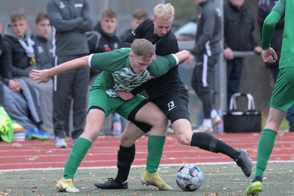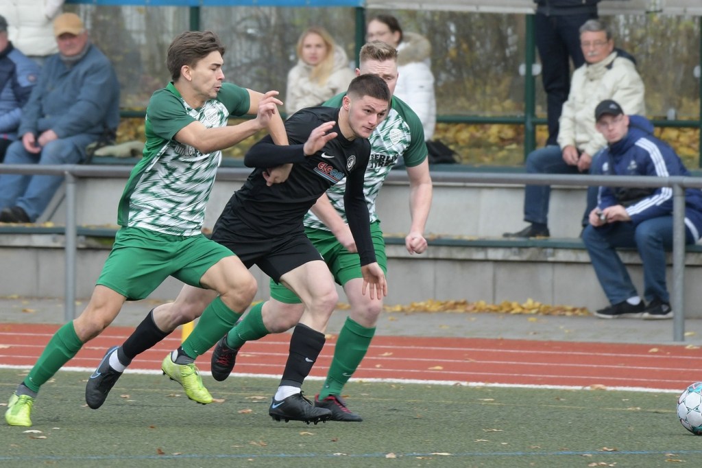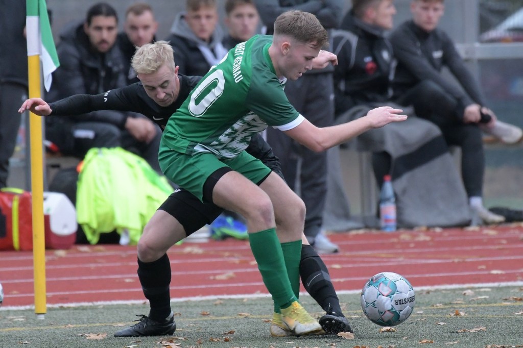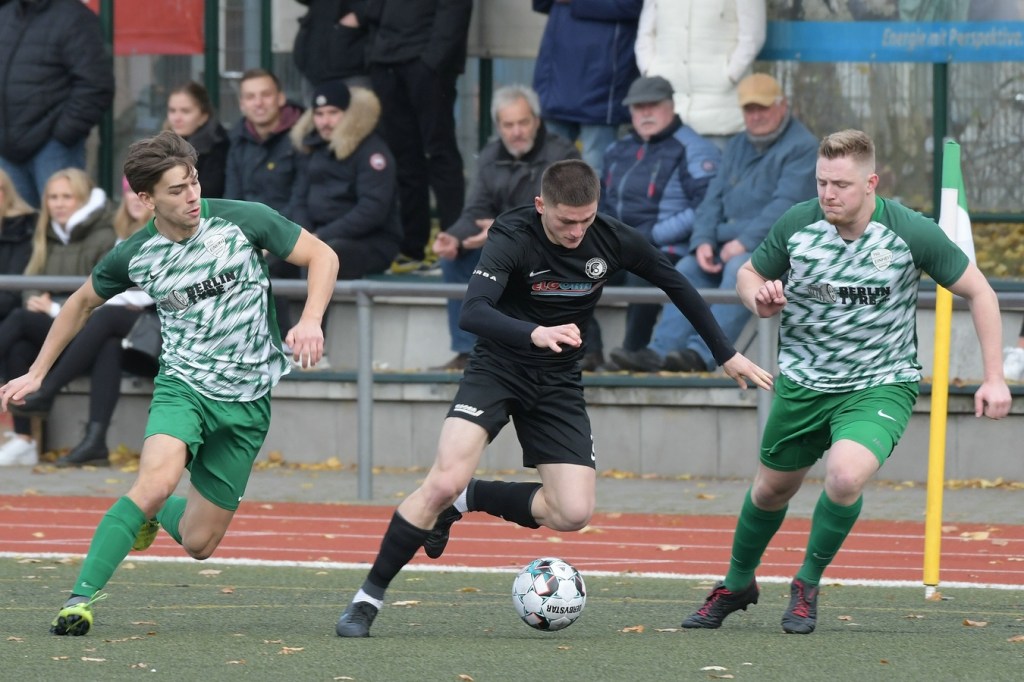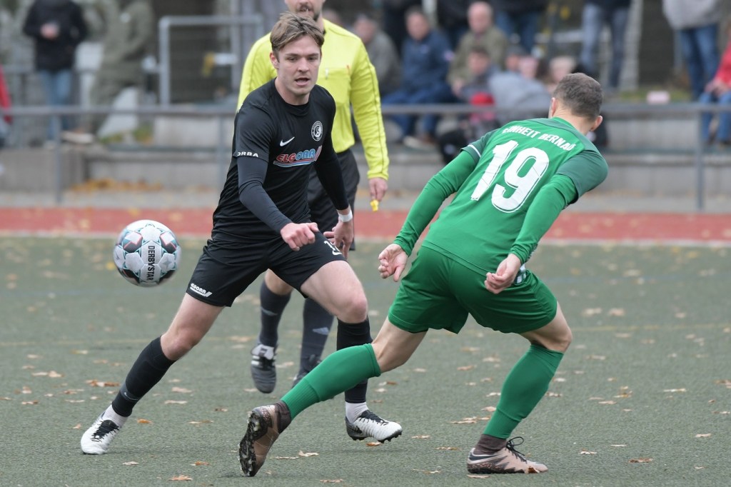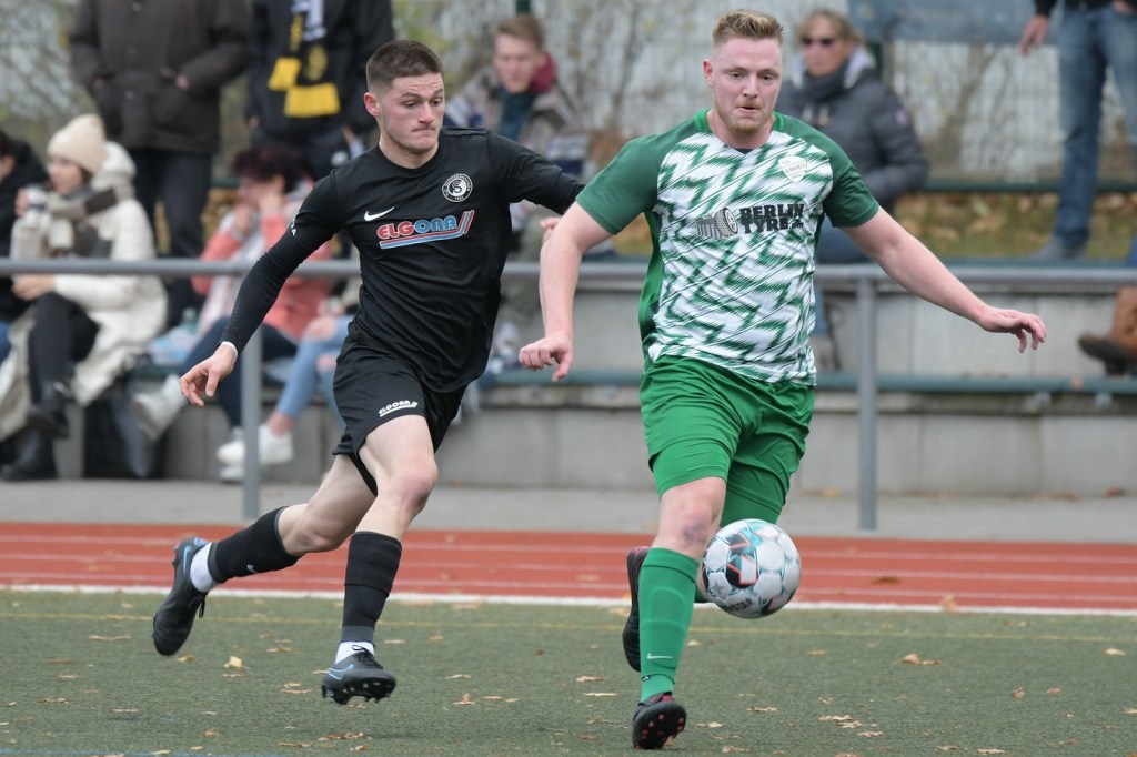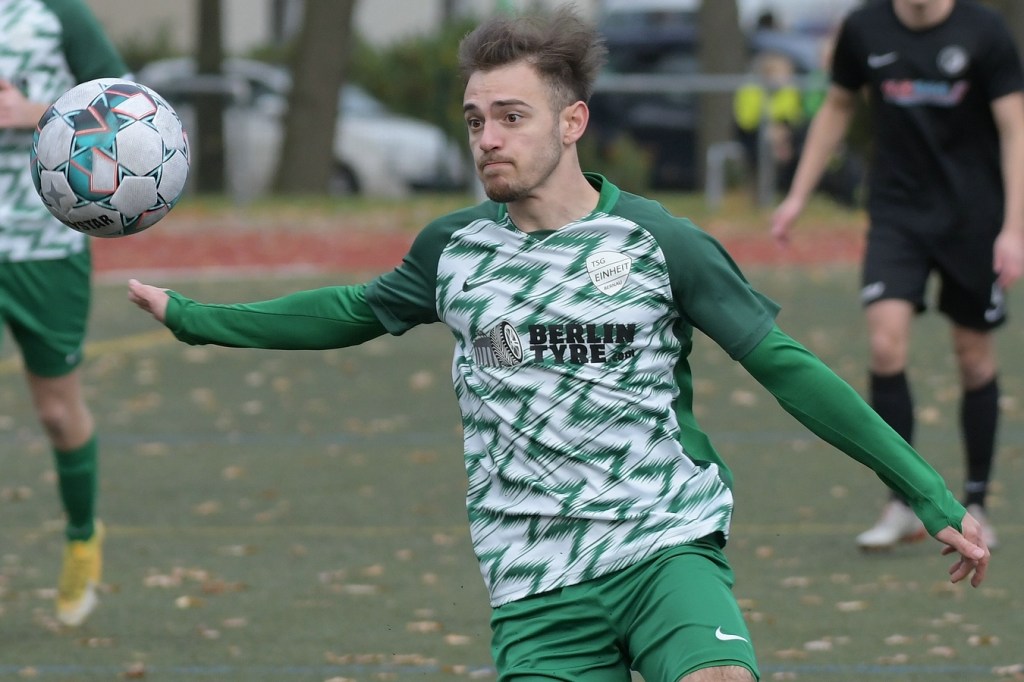„Der Tabellenführer, die Stars von Morgen, die TSG Einheit Bernau“, so begann der Stadionsprecher seine Offerte zum Spitzenspiel in der Brandenburgliga und sorgte damit schon bei einigen Anwesenden für ein grinsendes Kopfschütteln. Das was dann aber auf den Anpfiff des Berliner Schiedsrichters Sebastian Hornig folgte, war Spitzenfußball ‚par excellence‘. Es wurde eine Begegnung zweier Teams, welche mit absolutem Recht das Prädikat „Oberstes Regal der Liga“ tragen dürfen. Aufwärmphase war für beide Vertretungen ein Fremdwort, die Visiere wurde sofort heruntergelassen und Vollgas gegeben. Rasse, Leidenschaft, spielerische Intelligenz und körperliches Knowhow waren die Attribute, die das Spiel prägten, welches keine Sekunde Unaufmerksamkeiten erlaubte. Mit der eigentlich ersten Möglichkeit für die Hausherren fiel auch das 1:0. Torschütze war Frederick Fiebig, der von der rechten Strafraumecke per Flachschutz im langen Eck einnetzte (6.). Artur Sajfutdinov hatte dann zwei Minuten später den nächsten Treffer auf dem Fuße. Doch in der Vorbereitung dazu, als er versuchte in eine noch bessere Position zu kommen, verhaspelte er sich etwas und sein Schuss ging dann doch recht eindeutig am Gästekasten vorbei. Ein Einwurf und einer daraus folgenden Flanke in den Fünfer der Hausherren brachte den Ausgleich zum Tragen. Christopher Groll, als Kopfball-Torschütze wird sich schon etwas gewundert haben, dass er so frei zwischen zwei Abwehrspielern zum Abschluss kam (10.). Wenn die Begegnung nicht auf Kunstrasen stattgefunden hätte, wäre das oft zitierte „Grasfressen“ viel passender gewesen. Gerade im Mittelfeld wurde kein Zentimeter preisgegeben. Beide Mannschaften lebten dabei vom Teamgeist und bewiesen in vielen Aktionen, dass im modernen Fußball, neben der Qualität auch diese Tugend extrem an Gewicht gewonnen hat. Ein langer Ball in der 23. Minute bereitete dann die erneute Führung der Hausherren vor. Die Kugel, welche an der Strafraumkante aufsetzte und im Handling damit die TuS-Abwehr schlecht aussehen ließ, brachte Maximilian Walter in die Position mit einen Heber Sachenhausens Keeper Nick Schrobback viel umjubelt zu überwinden. Obwohl die Begegnung in der Folge nur noch ein paar Halbchancen in der Präsentation hatte, blieb das Niveau weiterhin im oberen Level. Von TuS-Torgarant Andor Müller war nicht viel sehen, der zwar viel versuchte, aber im ersten Durchgang recht glücklos agierte. Ein Gästekopfball, den Bernaus Sam-Rene Bartz auf der Linie stehend in letzter Konsequenz entschärfte, beendete dann die erste Halbzeit (47.).