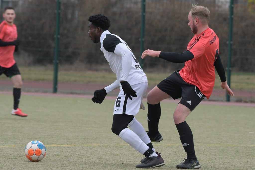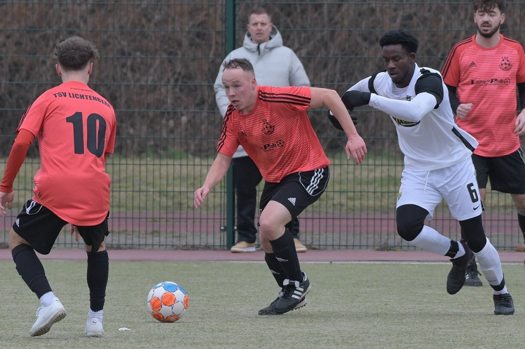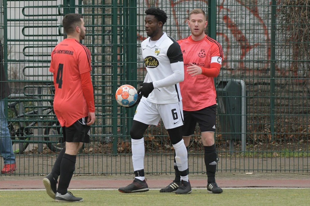 Die Begegnung brauchte keine Aufwärmphase und es war schon interessant zu sehen, ob in den Ligaparallelen beider Vertretungen (Bezirksliga Berlin = Landesklasse Brandenburg) ein qualitativer Unterschied bestehen würde. Dieser blieb erst einmal aus, denn der TSV mischte munter mit und versteckte sich keineswegs, obwohl Opitz seine Truppe schon auf die spielerischen Qualitäten der Barnimer eingestellt hatte und deshalb etwas defensiver dachte. Ein Missverständnis im Abwehrverbund der Gäste in Zusammenarbeit mit Keeper Dennis Tietz, der den Strafraum abwehrtechnisch verlassen musste, brachte die erste Lichtenberger Möglichkeit. Oskar Piltz hatte den Braten gerochen und per Bogenlampe versucht das leere Tor zu treffen. Schlussendlich landete die Kugel an der Latte und sehr zum Glück der Gäste nicht im Tor (4.). Die durchatmenden Barnimer bekamen nun zunehmend optisch gesehen das Spiel besser in den Griff, blieben aber gerade in Punkto Einstellung und daraus resultierenden Körpersprache ohne Überzeugung und auch ohne zwingende Torabschlüsse. In der 9. Minute schaffte es Nassar-Choco Saado den Ball über die rechte Seite kommend gegen zwei Gästeakteure zu behaupten. Sein Anspiel in den verlängerten Rückraum nutzte dann Enes Ribic zur bis zu diesem Zeitpunkt nicht unverdienten Führung. Schon hier zeigte sich eine gewisse Anfälligkeit im Defensivverhalten der Gäste, die es nicht schafften, bei aller vorhandenen Qualität den Vorlagengeber aus dem Spiel zu nehmen. Drei Minuten später hätte Zepernicks Neuzugang Joshua Idaehor zumindest mit dem Ausgleich, den doch recht schwachen Auftritt seiner Neukollegen etwas aufwerten können. Allein vor Heimtorsteher Sebastian Gerlach auftauchend, verzog er knapp am linken Pfosten vorbei. Die Partie blieb in der Folge ob der fehlenden Chancen auf beiden Seiten zwar nicht unattraktiv, offenbarte aber schon das Maß der Herangehensweise. Lichtenberg zeigte „Bock auf Fußball“, welchen man auch bei der Einheit erwartete, allein schon der achtwöchigen Zwangspause durch Corona geschuldet, diesen aber irgendwie vermisste. Halbchancen für die Gäste standen nun auf der Tagesordnung, welche den gut sortierten Berlinern kaum Probleme bereiteten. Gefährlicher wurde es aber auf der anderen Seite, wenn auch nur sporadisch. Justin Wende hatte nach einer Ballstafette die fast sichere Möglichkeit, verzog dann aber aus guter Position (26.). Das 2:0 war dann irgendwie das Spiegelbild des, bis dato doch recht uninspirierten Gekicke der Gäste. Ein Rückpass von Eric Woiton zu Keeper Tietz, der offensichtlich für eine Spieleröffnung gedacht war, landete zur Verwunderung aller im eigenen Kasten (39.).