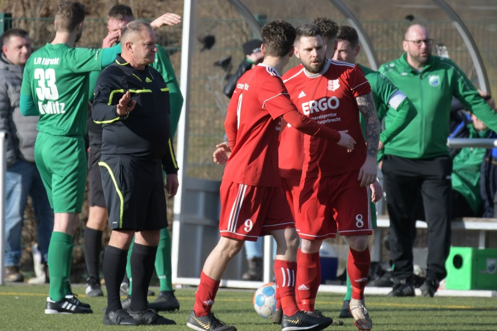 Bei bestem Fußballwetter stellte sich schon die Frage, wie der akute Abstiegskandidat aus Britz die vom Verein begünstigte Trennung vom Trainer verkraften und wie Wandlitz mit der Niederlage unter der Woche in Zepernick, wo man auch viel Lob für die gezeigte Leistung vernehmen konnte, umgehen würde. Paul Roller hatte nebenbei beim Warmmachen schon mal kundgetan, dass ihm die Partie vom Mittwoch noch in den Knochen steckte. Es war eine komische Begegnung, in der Wandlitz lange auf der Suche war die Favoritenrolle auszufüllen und irgendwie nur selten in die Überzeugung fand. Und daran waren auch die Gäste nicht unschuldig, denn gerade im ersten Durchgang wirkte die Truppe viel griffiger und vor allem entschlossener. Allein der erste Abschluss nach einer Minute durch Tim Marvin Mengel, dessen Geschoß noch hängenblieb und zum Eckball im Aus landete, und der folgenden Ecke, bei der Eintracht Keeper Florian Schweitzer seine liebe Mühe hatte die Kugel unter Kontrolle zu bringen, offenbarte schon wohin die Reise für Fortuna gehen könnte. Als dann Marc Seifert, der zusätzlich noch Defizite im Sprintvermögen der Hausherrenverteidigung offenlegte, nach präzisem Anspiel allein vor Schweitzer auftauchte und sehr abgebrüht zum 0:1 einschob, bekamen die Züge in den Gesichtern der Eintracht Verantwortlichen schon eine gewisse Längsdehnung (7.). Die Fehlerquote im schwerfälligen Aufbauspiel und besonders das Statische im Umgang mit Ball und Gegner, machten es Britz wirklich leicht zu verteidigen und im Gegenzug schnell offensiv gefährlich zu werden. Marc Seifert, nebenbei auch noch mit einer gewissen Zweikampfaggressivität ausgestattet, markierte nach vierundzwanzig Minuten das nüchterne 0:2. Den zu ihm durchgesteckten Ball brachte er wieder sehr kaltschnäuzig im Wandlitzer Kasten unter. Wandlitz war eigentlich nicht chancenlos und hatte durch Paul Roller und Marcel Petrahn auch Möglichkeiten. Denen fehlten aber die Eigenschaften von Seifert und auch etwas das Glück. Eintracht Kapitän Dennis Plaumanns laustarke Analyse so gut nach dreißig Minuten „Wir treffen einfach viel zu viele falsche Entscheidungen.“, traf den Nagel absolut auf den Kopf. Und ehe man sich versah, lag das Spielgerät schon wieder im Netz der Heimtruppe. Darren Kaßner hatte nach einem Ballverlust der Gegnerschaft an der Mittellinie genau Maß genommen, als er sah das Schweitzer sehr weit vor seinen Gehäuse Stellung bezogen hatte. Der lange Ball überraschte den jungen Keeper, der seinerseits recht hilflos zuschauen musste, wie der Ball zum Pausenstand von 0:3 hinter ihm einschlug (39.). Die Nerven lagen nun blank und offenbarten nebenbei auch abhandengekommene Regelkenntnisse. Ein Beispiel: Referee Bernd Marggraf wurde angeschossen und unterbrach regelkonform das Spiel. Britz wollte schnell spielen und setzte per Freistoß die Begegnung fort. Marggraf unterbrach nun nochmal und musste von beiden Seiten schon sehr aufgeheizte Verbalattacken über sich ergehen lassen. Schlussendlich, nach Aufklärung und der Fortsetzung durch Schiedsrichterball für die Gäste beruhigten sich die Gemüter wieder.