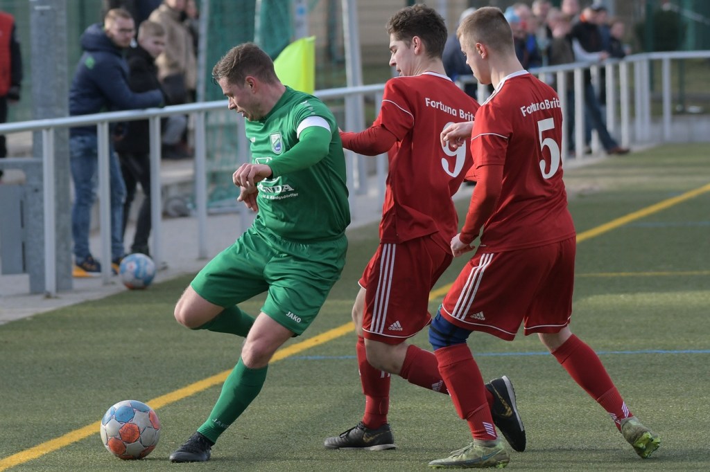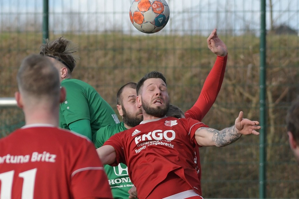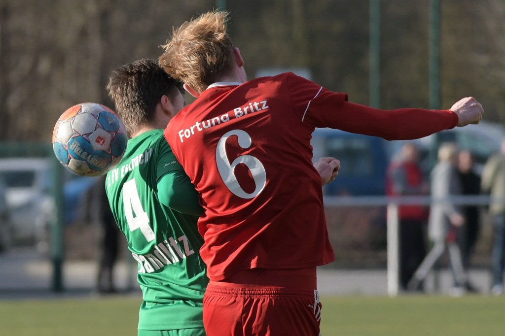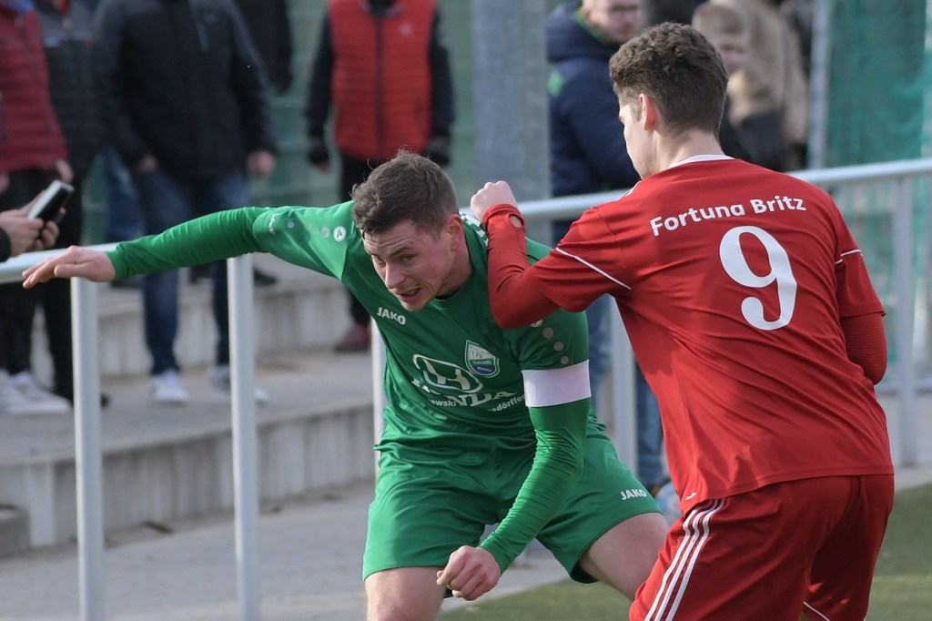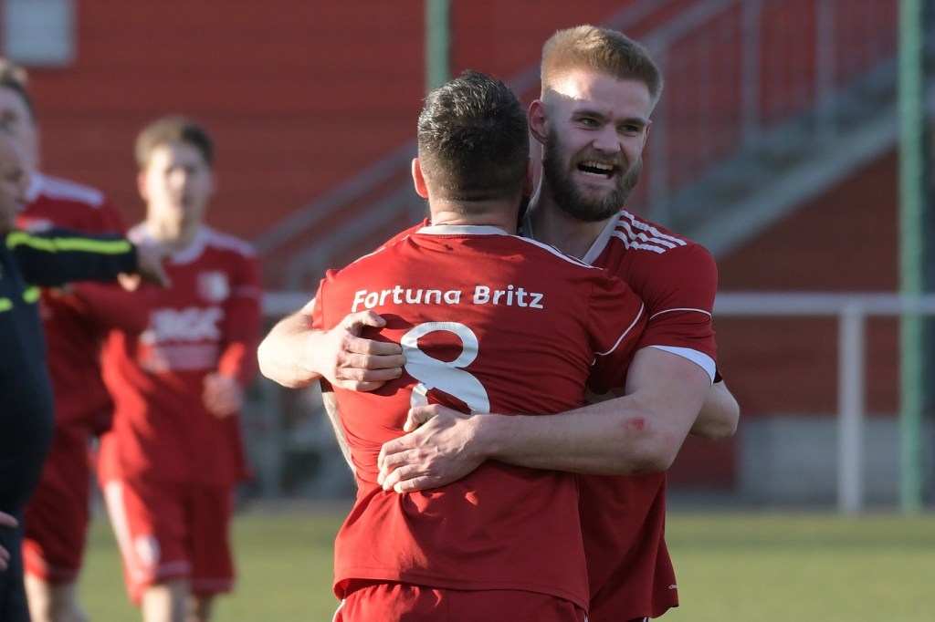 Zum Wiederanpfiff hatte gerade die Wandlitzer Fangemeinde schon Hoffnung auf eine Reaktion für den doch schon sehr durchwachsen Auftritt der eigenen Truppe gehegt. So richtig bekam die Zuversicht aber keine Nahrung. Zwar wurde die Ballbesitzquote auf fast achtzig Prozent hochgeschraubt und Britz mehr und mehr in die eigene Hälfte gedrängt, aber richtig zwingend wurde es nur selten. Stattdessen startete Marc Seifert in der 63. Minute einen Sprint und markierte am Ende ganz überlegt das 0:4. Wandlitz reagierte und brachte mit Pascal Sorgatz, der aus einer längeren Auszeit kam, den Mann, der noch einmal Aufbruchsstimmung verbreitete. Paul Roller rückte nun immer mehr in den Focus, prüfte innerhalb weniger Minuten zweimal per Kopf den überragend reagierenden Britzer Torsteher Hendrik Tubandt, ehe im dritten Versuch Steffen Philipp Hennig zur Stelle war und das 1:4 markierte (77.). Britz, nun sichtbar das Limit des Kräftehaushalts überschritten, wurde in der Schlussviertelstunde zum Leiden verdammt. Paul Roller erzielte dann das 2:4 per Kopf nach Flanke von der rechten Seite und packte damit seine Kollegen noch einmal am moralischen und auch emotionalen Schopfe (83.). Fortuna versuchte sich zu wehren und rutschte dabei auch in die emotionale Schiene. Diskussionen, viele Nicklichkeiten, auch neben dem Feld, zwangen Schiedsrichter Bernd Marggraf zum Handeln, was auch die Zahl der konsequenten Verwarnungen in der Schlussphase untermauerte. Die Nachspielzeit war noch nicht angezeigt, da lag der Ball schon wieder im Britzer Tor. Tim Franken hatte ein Eigentor erzielt, was auf den ersten Blick aus dem Gewühl heraus nicht erkennbar war, weil sich Paul Roller schlussendlich feiern ließ (90.). Die Begegnung kochte, fünf Minuten Nachspielzeit wurden angezeigt. Britz schwächte sich in der 91. Minute noch zusätzlich, weil Erik Klein schon Gelb belastet, nicht seinen Mund halten konnte. So kam es, wie es kommen musste. Paul Roller wurde zum vielumjubelten Matchwinner, als er in der 94. Minute wiederum per Kopf am richtigen Ort zum Abschluss kam und den völlig unerwarteten Ausgleich zum Endstand aufs Spielformular brachte.