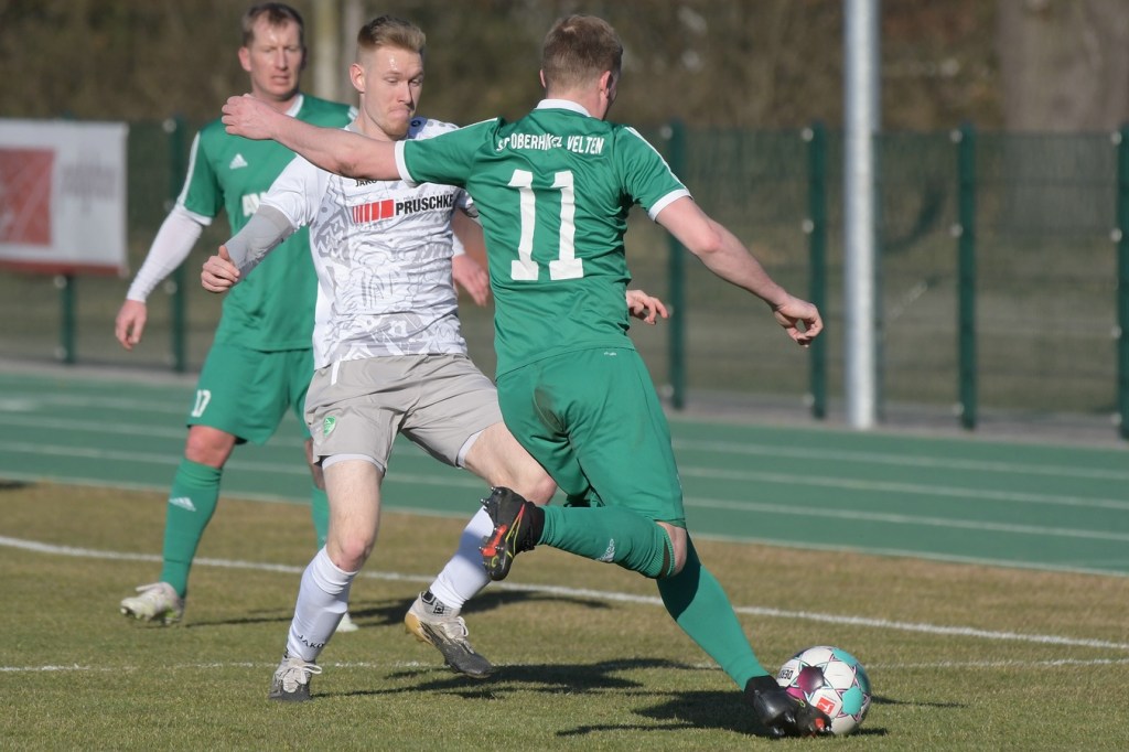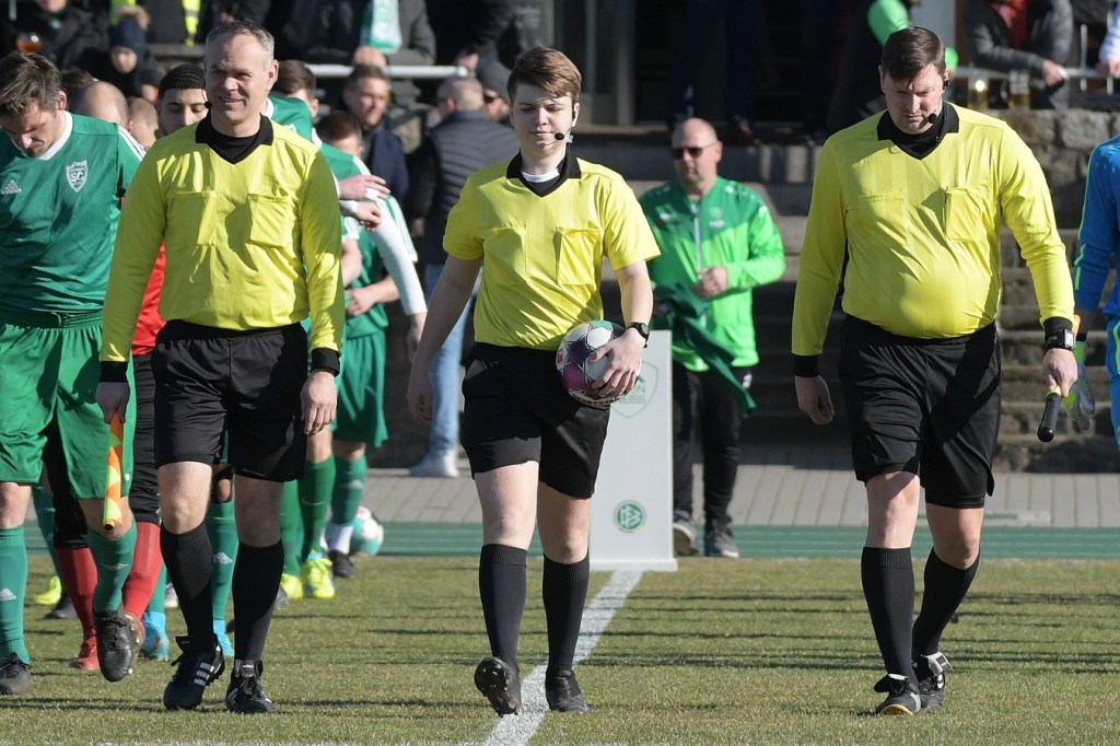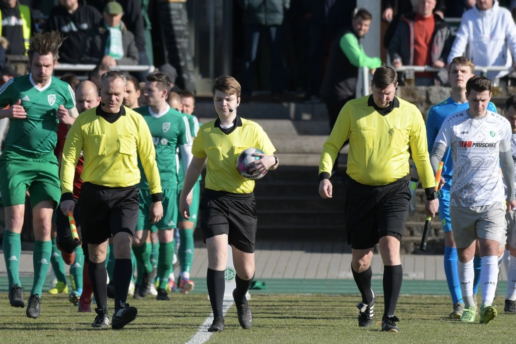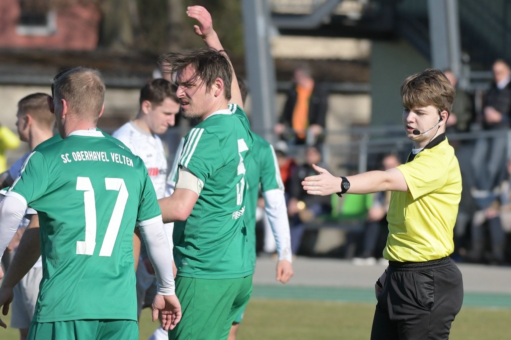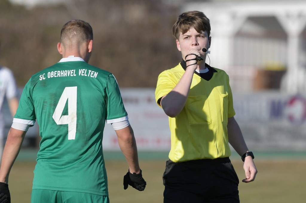 Schiedsrichter: Michel Sieh (Wirkte in seinem Auftreten nicht sehr überzeugend. Definitiv hat die Nutzung des immer noch in diesen Ligen unüblichen Headsets im persönlichen Auftreten keine positiven Effekte erzeugt, weil er damit angreifbarer wirkte. Er ließ sich im ersten Durchgang eine Reaktion auf das Veltener-Zeitspiel-Gehabe von seinen Kollegen aufdrücken, welches in dieser Phase der Begegnung überhaupt noch keine Rolle spielte und sich zusätzlich zu einer völlig unnötigen Baustelle für den jungen Referee entwickelte. Gerade in der Schlussphase wurde es ihm aber auch nicht leicht gemacht.)