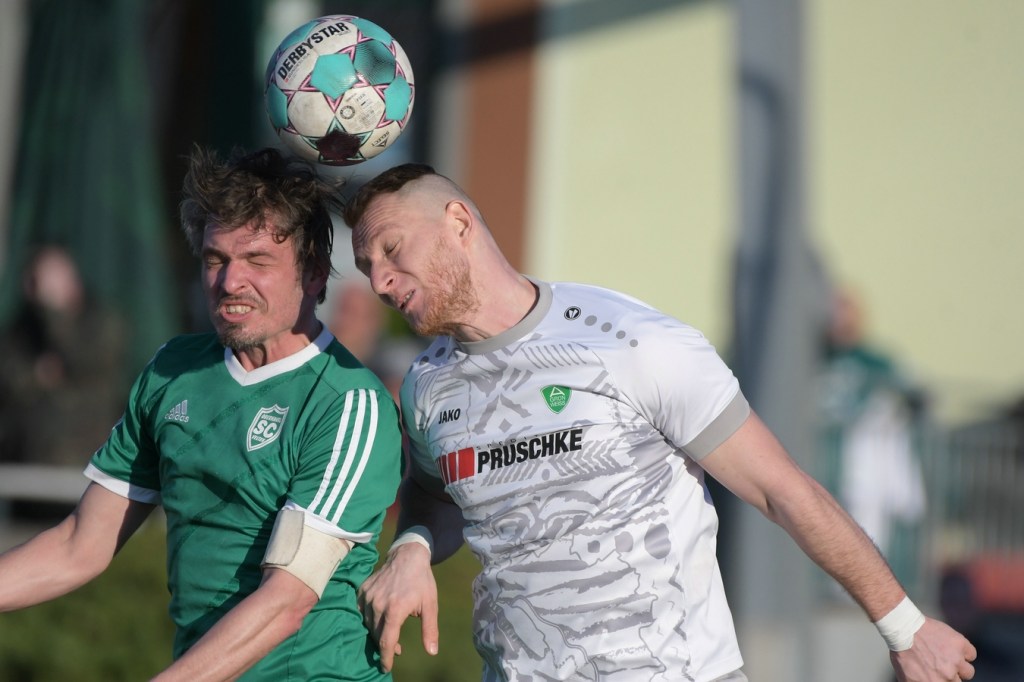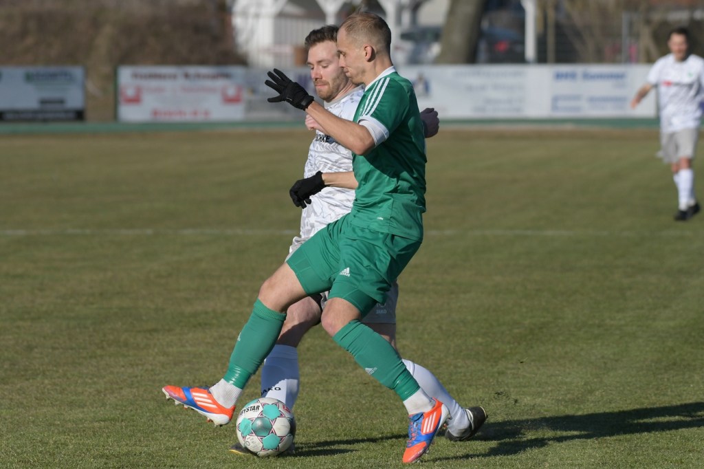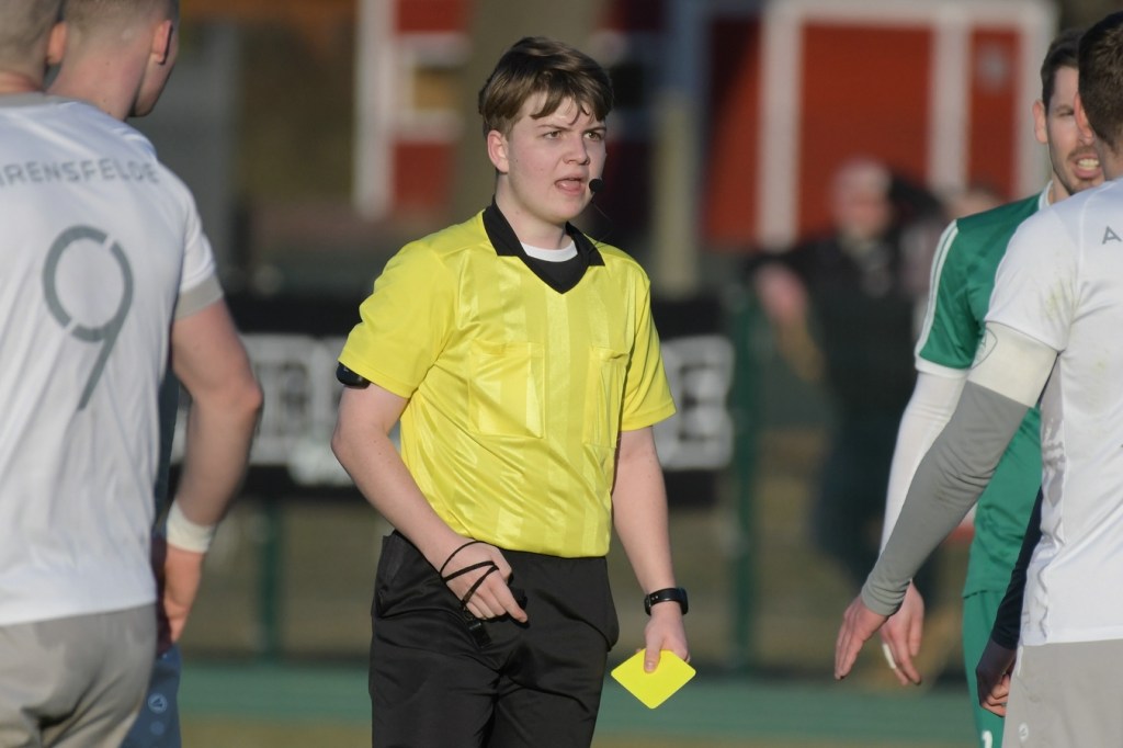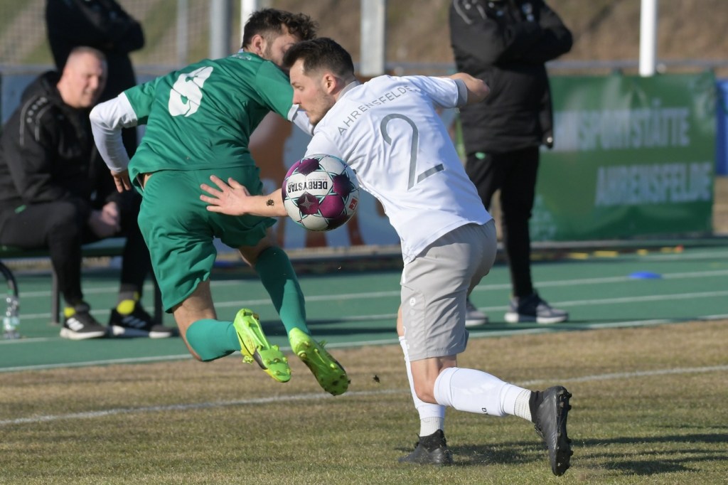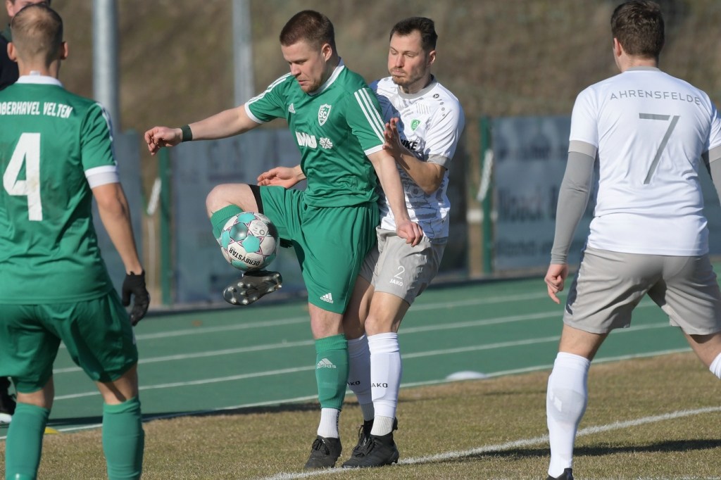 Zum Wiederanpfiff herrschte auf Ahrensfelder Seite große Hoffnung auf Besserung, zumal aus den Insiderkreisen der mannschaftsbetreuenden Einheit zu erfahren war, dass die Kopfwäsche in der Kabine wohl sehr intensiv und mit lauter Ansprache untermauert gewesen sein soll. Doch so richtig Wirkung war im weiteren Verlauf nicht zu erkennen. Noch immer fehlten die Ideen, die Leidenschaft und vielleicht auch die Einstellung ein Spiel mal mit grasfressender Lösung zur Entscheidung zu bringen. Velten dementgegen blieb bei seltenen Kontern brandgefährlich. Philipp Männel hatte eine dieser Möglichkeiten, dabei aber auch Pech, dass Ahrensfeldes Torsteher Hugo Paschen zur Stelle war, um das Ganze zu entschärfen (53.). Es wurde aber auch intensiver. Viele Nicklichkeiten in verbaler und körperbetonter „Auslebe“ hemmten weiterhin den erhofften und der Partie eigentlich guttuenden Spielfluss. Letztendlich war es Julian Hentschel, der einen Freistoß, aus gut achtzehn Metern vor der linken Strafraumgrenze, unter die Latte nagelte und somit das 1:0 markierte (57.). Grün-Weiss blieb nun am Drücker und erhöhte in der 62. Minute auf 2:0. Torschütze war Robin Mansfeld, der eine Flanke von Lucas Nico Gurklys von der rechten Strafraumgrundline kommend über die komplette Abwehr per Kopf unhaltbar im Gästekasten unterbrachte. Die Messen schienen nun gesungen. Doch weitgefehlt. Nur 120 Sekunden später lag das Spielgerät im Ahrensfelder Netz. Maximilian Schell bekam ein Zuspiel in die linke Strafraumseite und schoss gar nicht mal scharf, aber platziert und eventuell auch haltbar ins rechte untere Eck. Die Folgeminuten blieben intensiv und auch umkämpft. Und das wohl nicht mehr für möglichgehaltene „Veltener-Jubel-Event“ produzierte wiederum Maximilian Schell, als er an der Strafraumgrenze den Ball völlig frei durchgesteckt bekam und abgezockt zum 2:2 vollendete (76.). Die Schlussviertelstunde wurde dann noch intensiver mit vielen Fouls und daraus folgenden verbalen Auseinandersetzungen. Dabei hatte der junge Referee nicht immer ein glückliches Händchen und stand mehr im Mittelpunkt und dem Unverständnis der Probanden, als ihm lieb sein konnte. Und eines war auch noch augenscheinlich. Beide Vertretungen wollten etwas mitnehmen. Velten wäre wohl mit dem einen Punkt zufrieden gewesen. Ahrensfelde brauchte aber den Dreier und schlug noch einmal eine höhere Schlagzahl an. Der eingewechselte Justin Lauterbach machte dann das, was seine Kollegen bis zu diesem Zeitpunkt vermissen ließen. Er nahm sich die Kugel, setzte zu einem Mini-Solo an und hämmerte den Ball aus sechzehn Metern zum Endstand in die Maschen (87.).