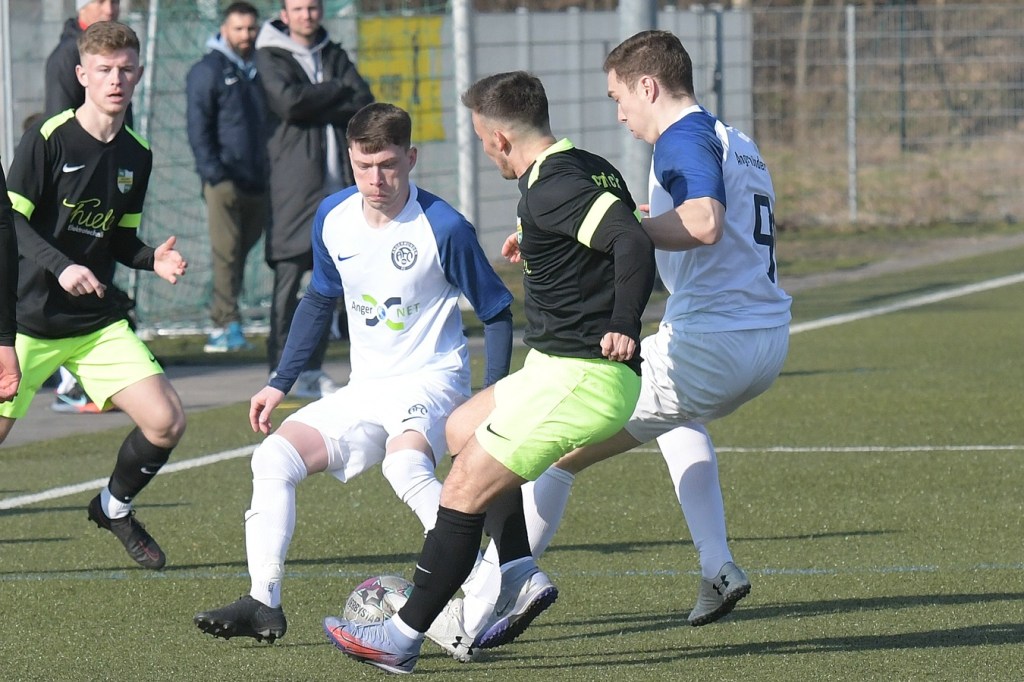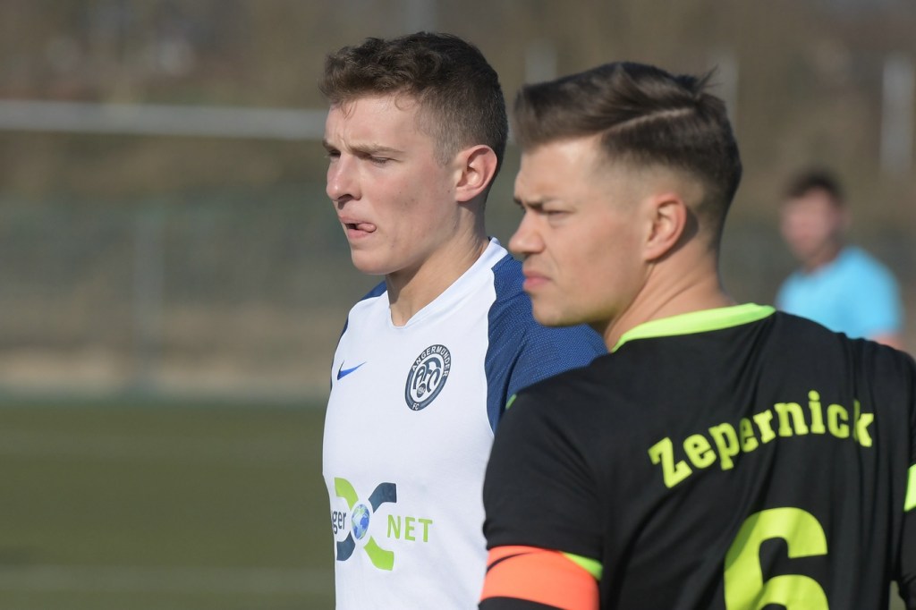 Die Partie begann mit allem, was man sich erhofft hatte. Rasse, Einsatzwillen, Leidenschaft und auch Spielfreunde, welche auf dem kleinen Kunstrasengeläuf keine Selbstverständlichkeit sein durfte, machten das Vorgetragene ansehnlich, vor allem aber spannend. Den Fallrückzieher, welchen Kevin Maek, nach einem langen Einwurf ansetzte und der Ball dann aber weit neben dem Tor ins Aus ging, war die erste nennenswerte Möglichkeit für die Hausherren (7.). Doch mit zunehmender Dauer, so etwa nach fünfzehn Minuten fing die Partie in der Intensität etwas nachzulassen. Einheit hatte nun optisch gesehen mehr vom Spiel, schaffte es dabei aber kaum gefährlich in die gegnerische Gefahrenzone zu kommen. Angermünde hingegen, versuchte viel mit langen Bällen, bekam aber auch kaum etwas in die Spur, weil vieles mit der nicht berücksichtigten Windunterstützung im Nirvana endete. Luka Grabarek, der Tor-Garant der letzten Spiele für die Einheit, hatte dann in der 15. Minute in der rechten Strafraumseite vielversprechend positioniert einen Flachschuss abgegeben, aber letztendlich sein Ziel knapp verfehlt. Die erste Gästemöglichkeit hatte Philip Thimian kurz hinter Strafraumkante auf den Schlappen, doch auch sein Geschoß war nicht platziert genug und landete ebenfalls im Aus (17.). Philip Opitz leitete mit einem unnötigen Ballverlust auf der rechten Seite die nächste Angermünder Chance ein. Wieder war es Philip Thimian der sich in eine gute Position brachte, dann aber viel zu überhastet abschloss und dabei wenig Präzision aufblitzen ließ (20.). Obwohl Angermünde die Spielkontrolle immer mehr der Heimtruppe überließ, waren deren Torchancen in der Qualität mit mehr „Schmackes“ bestückt. Die Möglichkeit nach einem langen Einwurf mit Kopfballverlängerung auf Tobias Schuchert, der im Fünfmeterraum mit der Stirn zur Stelle war und Heimkeeper Dennis Tietz in der Reaktion zum Abtauchen zwang, war schon sehr nah an der Gästeführung (27.). Die Partie verkrampfte in der Folge immer mehr und versank dabei auch zum Teil in Zerfahrenheit. Dabei übte sich die Einheit in Geduld und offenbarte in einigen Mannschaftsteilen fehlende Basics, wie sichere Ballannahmen und auch daraus resultierende Anspiele. Hinzu kam, dass Luka Grabarek sich glücklos aufrieb und auch ein wenig zum Opfer wurde, weil seine Kollegen es viel zu selten schafften, ihn entscheidend ins Spiel zu bekommen. Kurzzeitigen Zepernicker Jubel gab es in 38. Minute, als Vincent Lipp sich nach seinem Treffer feiern ließ. Doch Referee Cedric Molowitz mit seinem Kollegen Jens Hurtig würgten die Feier-Arie ab, weil man eine Abseitsposition in der Entstehung erkannte hatte.