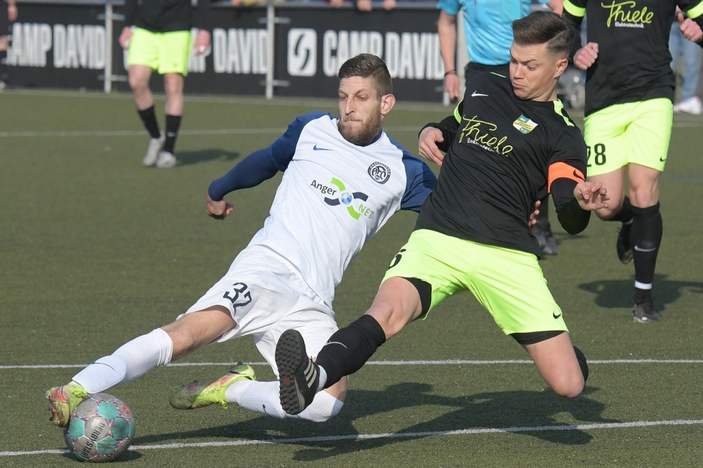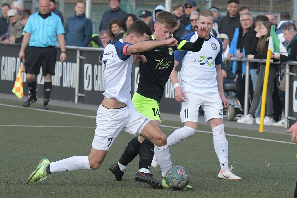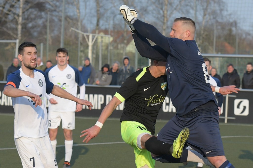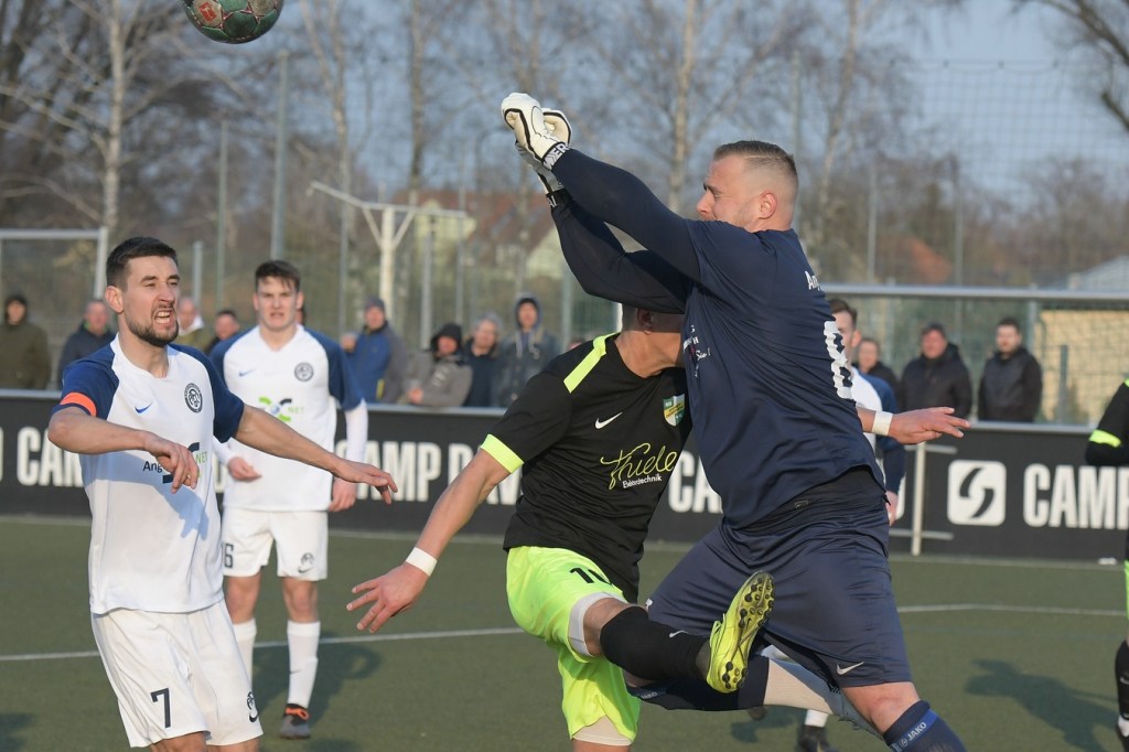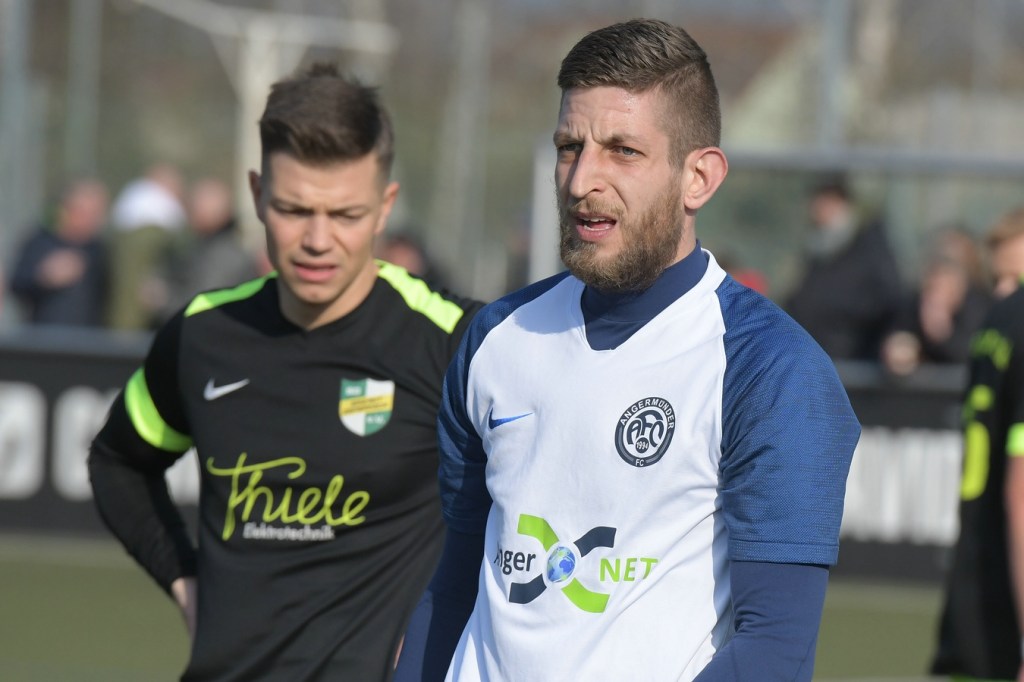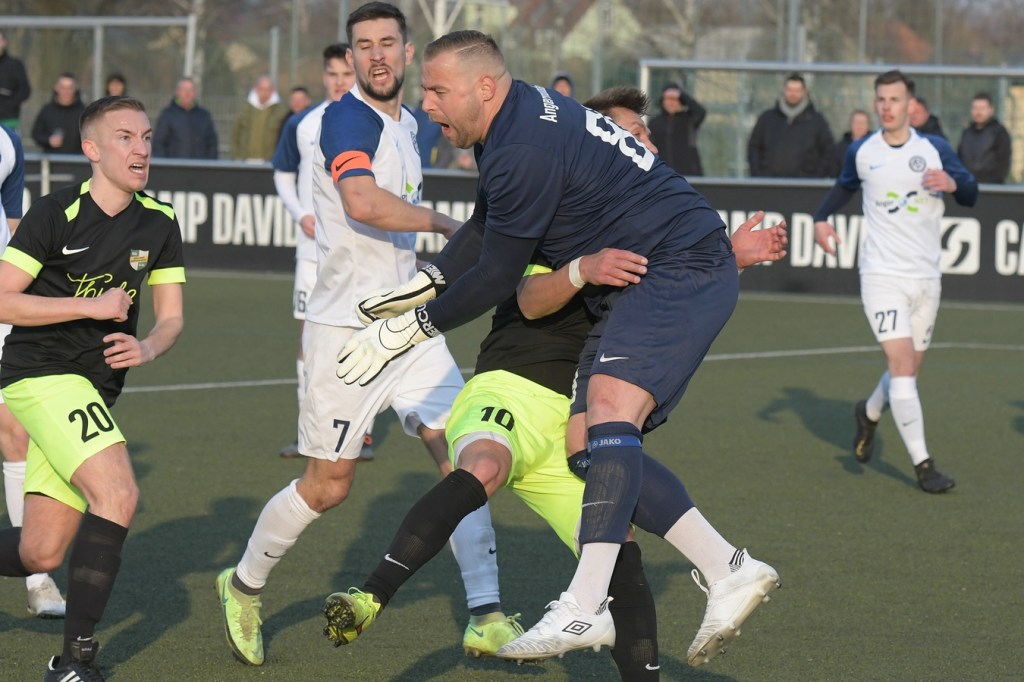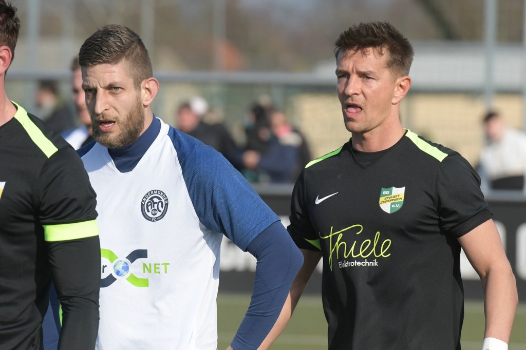 Mit dem torlosen Pausenstand, welcher schon zum ersten Durchgang passte, ging es nach dem Wiederanpfiff im gleichen Niveau-Aufschlag weiter. Zepernick, scheinbar immer noch am Geduldsfaden knabbernd, schaffte es weiterhin kaum Positives in den eigenen Auftritt zu bekommen. Zwar blieb das Spielgerät heißumkämpft, aber dies vornehmlich zwischen den Strafräumen. Strittig wurde es in der 52. Minute, als Kevin Maek an der gegnerischen Strafraumgrenze von den Beinen geholt wurde. Schiedsrichter Molowitz hatte gepfiffen und nach Abfrage bei seinem Assistenten Ingo Bernburg den Ort des Vergehens vor den Strafraum gelegt. Ein VAR hätte diese Entscheidung korrigiert, denn die Linie, auf der Maek augenscheinlich gelegt wurde, gehörte nun mal zu dem was sie begrenzt. Den nun gegebenen Freistoß nagelte Patrick Töpfer in die Mauer und vergab damit eine ebenfalls gute Möglichkeit. Töpfer war es dann, der mit seinem doch sehr lapidaren Umgang mit Ball und Gegner im Zweikampf das Tor des Tages einleitete. Der vollkommen unnötige Ballverlust landete schlussendlich bei Stefan Schmidt, der mit einem Schuss aus zwanzig Metern einen Flatterball produzierte, welcher an Dennis Tietz vorbei vielumjubelt im Netz zappelte (62.). „Wir haben durch diesen Treffer ein wenig den Faden verloren“, brachte es Einheits Co-Trainer Daniel Lingfeld, der den erkrankten Lucio Geral vertrat, auf den Punkt. Denn in der Folgezeit war zwar ein Bemühen der Zepernicker zu erkennen, doch fehlte dem Auftritt die erforderliche Struktur. Es wurde eher ein Agieren mit der Brechstange, was zwar noch zu ein, zwei sehr guten Möglichkeiten führte, aber in der Endkonsequenz keinen Erfolg brachte. Bei der größten Möglichkeit zum Ausgleich hatte Jerome Ehweiner eigentlich alles richtig gemacht und nach Flanke von Luca Grabarek den Ball am Fünfmeterraum platziert zum unteren rechten Toreck gezirkelt. Doch da war noch Angermündes Keeper Kevin Möbius, der per Glanztat die Kugel zur Ecke abwehrte (79.). So versuchte Einheit, zum Teil kopf- und planlos, wenigstens ein Unentschieden zu erreichen. Doch den Jungs vom Angermünder FC, welche mit Leidenschaft und auch dem Willen in den Zweikämpfen mehr Rustikalität einzubringen und der sicherlich in der Qualität besser aufgestellten Einheit damit den Schneid abzukaufen, gelang am Ende ein nicht unverdienter Auswärtssieg.
