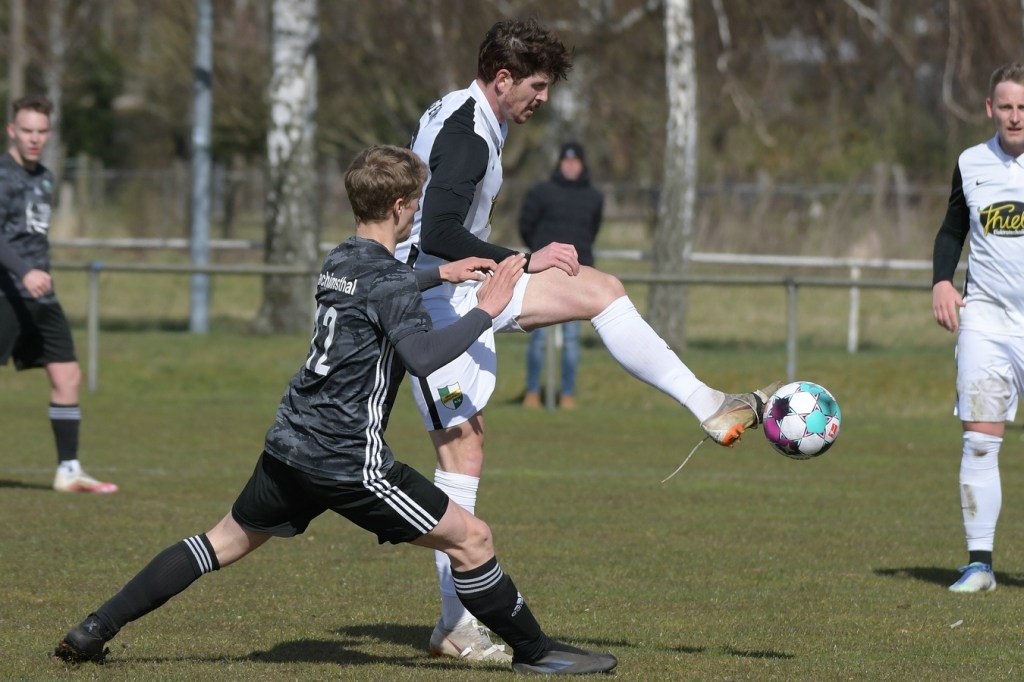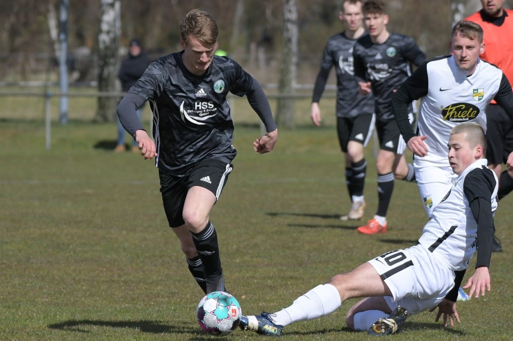 Mit dem Anpfiff zum zweiten Durchgang des umsichtig leitenden Martin Krause bekam die Begegnung das Niveau der Anfangsphase wieder aufgesetzt. Doch die nahen dunklen Wolken mit weitentferntem Gewittergrollen ließen nichts Gutes erahnen. Als dann der verhagelte Regen mit Sturmunterstützung einsetzte, unterbrach der Schiedsrichter die Partie für sechs Minuten (53.). Zwingend notwendig wäre diese Unterbrechung nicht gewesen, so konnte man das Ganze unter zuschauerfreundlich verbuchen, die sich für die Unwetterphase ein geschütztes Eckchen suchen konnten. Nach der Wiederaufnahme kam die beste Zeit der Hausherren. Diese mündete in einer hundertprozentigen Möglichkeit. Philip Opitz hatte von der linken Seite passgenau geflankt und Jan Gedenk die Kugel an der Fünfmeterraumgrenze aufgelegt. Der zog auch gleich ab und fand in Fabian Schröder seinen Meister, der in Weltklassemanier die Kugel hielt und die Situation entschärfte (76.). Schorfheide hingegen hatte sich den Kontermodus auferlegt und ging mit vielen daraus resultierenden Möglichkeiten sehr schlampig um. Das berühmte „besser ausspielen“ hätte der Partie sicherlich schon früher den nicht unverdienten Auswärtsdreier genehmigt. Schlussendlich fiel das Tor des Tages fast aus dem Nichts. Ein Angriff über die rechte Seite mit aufgelegtem Pass zu Lucas Schmidt brachte das vielumjubelte 1:0. Schmidt hatte sich ein Herz genommen und aus zwanzig Metern einfach mal abgezogen und dabei auch noch Glück, dass der Schuss abgefälscht wurde und unhaltbar im Netz der Hausherren einschlug (82.). Die Schlussminuten incl. der siebenminütigen Nachspielzeit waren noch einmal intensiv. Letztendlich ließen die Schorfheider Youngster nichts mehr zu, was der immer noch nicht sehr aussagekräftigen Tabellensituation mit diesem Schlussergebnis neues Aufstiegsfutter einimpfte.