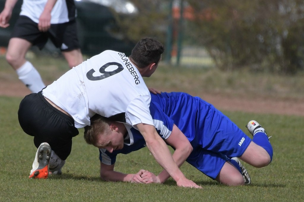 Die Partie brauchte einige Minuten für beide Teams, um aus der Sortierung zu kommen. Dabei kristallisierte sich recht schnell heraus, wer der Begegnung den Stempel aufdrücken wollte. Basdorf machte das Spiel, Grüneberg blieb mit Routinier Henrik Ludwig als Abwehr-Organisator größtenteils mit Defensivaufgaben beschäftigt. Es wurde eine zähe Partie, welche sich mehr schlecht als recht schleppte und doch irgendwie hektisch wirkte. Im Ballbesitz bekam der FSV keine Ruhe ins Spiel, verdaddelte einfache Anspiele und traf auch im Anspiel des Öfteren die falschen Entscheidungen, was schlussendlich kaum Möglichkeiten eröffnete. So wurde die erste Hausherren-Chance eine sogenannte Hundertprozentige, die Fortuna-Keeper Henrik Schmidt organisierte, als er im rechten Strafraum, um abzuwehren, zu spät kam und Dustin Micheal Thobis unsanft von den Beinen holte. Schiedsrichter Maurice Schmidt zögerte keine Sekunde und zeigte auf den Elfmeterpunkt. Julius Krause ließ sich nicht zweimal bitten und vollendete unhaltbar zur frühen Führung (10.). Doch leider hob der Treffer als Motivationsschub das Niveau nicht wirklich höher. Grüneberg legte in der Folge so ein wenig die eigene Lethargie ab und versuchte sich sporadisch mit Schüssen aus der zweiten Reihe. Doch diese überquerten den gegnerischen Kasten in luftiger Höhe. Basdorf konnte sich schon glücklich schätzen, dass die Gegnerschaft nicht wirklich in der Lage war, aus dem doch sehr durchwachsenen eigenen Auftreten Kapital zu schlagen. Möglichkeiten, wenn auch selten, waren sicherlich vorhanden, am Ende aber nicht konsequent ausgespielt. So dauerte es bis zur 40. Minute, ehe man die Treffer zwei und drei notieren konnte. Diese waren aber in der Entstehung und letztendlichen Ausführung sehr ansehnlich. Dem 2:0 ging ein Diagonalball von der rechten Seite in den Strafraum voraus, den Max Prollius erlief und unhaltbar an Henrik Schmidt vorbei flach einnetze (40.). Das 3:0 hatte ebenfalls eine sehenswerte Nuance, bei dem Dustin Michael Thobis Nutznießer eines sehr gut getimten Durchsteckers wurde und ebenfalls unhaltbar vollendete (44.).
