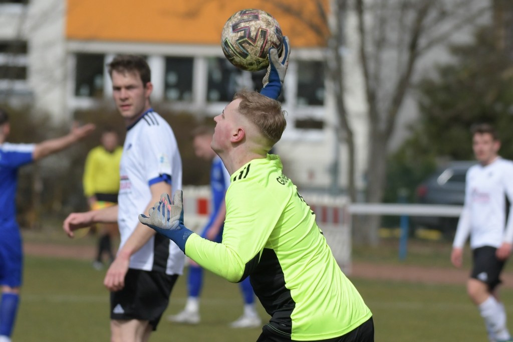 Dass mit dem klaren Halbzeitergebnis das Spiel gelaufen war, war die eine Erkenntnis, dass aber der Tabellenführer auch das Toreschießen fast einstellen würde, wohl noch nicht. Trotzdem hatte sich Basdorf sichtbar mehr für den zweiten Durchgang vorgenommen. Der Auftritt wirkte nun griffiger und auch zielstrebiger. Grüneberg hingegen blieb weiter im Modus „nicht gänzlich unterzugehen“ und hielt weiter an der Defensivstrategie fest. In der 47. Minute war es wiederum Thobis, der das mögliche vierte Tor auf den Schlappen hatte, aber aus Nahdistanz am sich breitgemachten Henrik Schmidt scheiterte. In der Folge wurden die erwähnenswerten Höhepunkte der Hausherren immer weniger. Aktiver wurde aber das eigene Trainergespann, welches sich sehr lautstark über einige Assistentenentscheidungen echauffierte und dabei auch auf verbale Gegenwehr der eigenen Spieler stieß, die diese Entgleisungen nicht unterstützen wollten. In der 73. Minute musste sich Basdorfs Torsteher Marcus Bock zum ersten Mal ernsthaft strecken. Ein Eckball, von der linken Seite zum Tor geschlagen, wurde so gefährlich, dass er den Ball per Flugeinlage wegkratzen musste und im Nachgang dann zur Stelle war, als Dustin Petzold den Nachschuss setzte. So ein wenig war diese Situation dann der Startschuss für die Gäste mehr zu tun. Basdorf stellte denen aber auch das Mittelfeld zur Verfügung, doch der richtige Nutzen der nun gewährten Freiheit stellte sich nicht ein. Auf Basdorfer Seite nagte an dem oder anderen der Konditionsnachlass, was sich gerade bei anbahnenden Kontersituationen zeigte, die man dann doch nicht mehr mit großer Laufarbeit bedienen wollte.