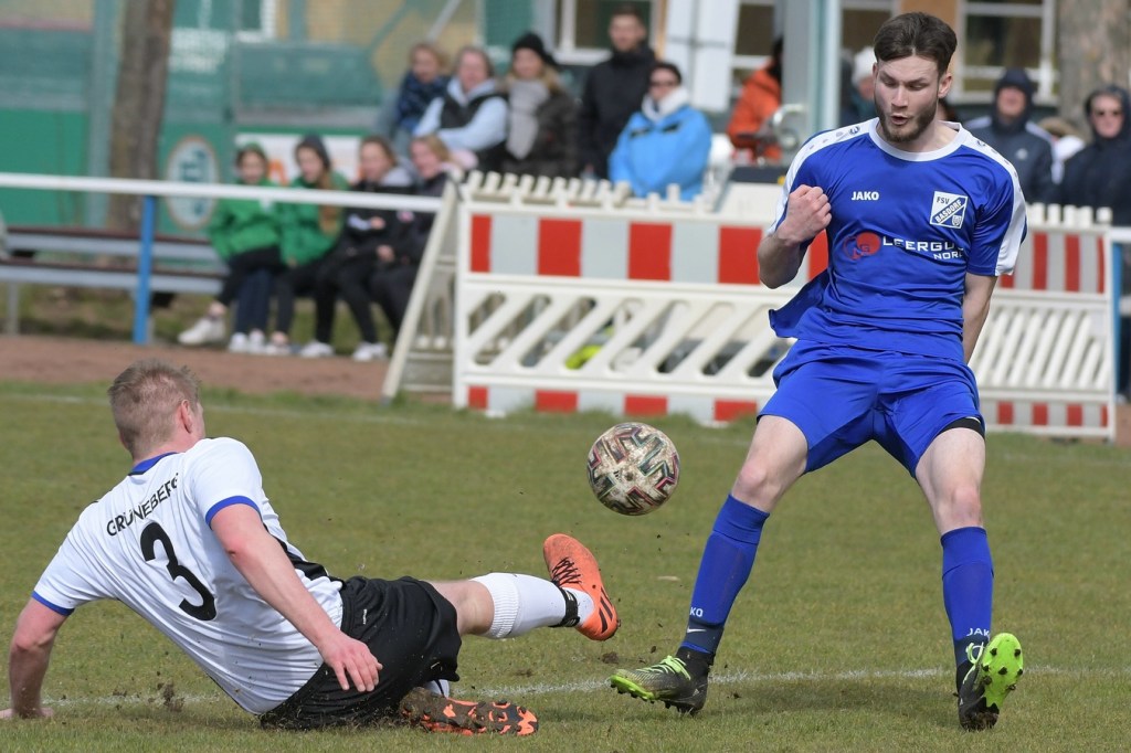 Am Ende der neunzig Minuten stand ein durchaus verdienter Favoritensieg mit 3:0 Toren an der händig zu bedienenden Anzeigetafel. Basdorf galt lange und bestätigte dies auch mit positiven Leistungen, als Staffelfavorit. Doch die mit Selbstvertrauen gespickte Souveränität ist so ein wenig einem Wackelpudding gewichen. Gerade der Start aus dem Winter heraus brachte einige nicht wirklich zu erwartende Niederlagen, welche das Team von Dietmar Kallweit dazu zwang, den eigenen Druck im Kessel zu erhöhen. „Der Saisonstart im neuen Jahr wurde ja auf Grund von Corona vorgezogen, wo wir, mich und meinen Co-Trainer einbezogen, ganz einfach im Urlaub waren“, so die Begründung von Kallweit für die Punktverluste in den ersten beiden Spielen. Bei Betrachtung der Tabelle war vor dem Spieltag der Kreis der Aspiraten mit fünf Teams auszumachen, wobei die Gäste aus Grüneberg nicht dazu gehörten, sich selber kaum in Nöte befinden, aber immer noch den ein oder anderen Zähler für Eventualitäten benötigten.