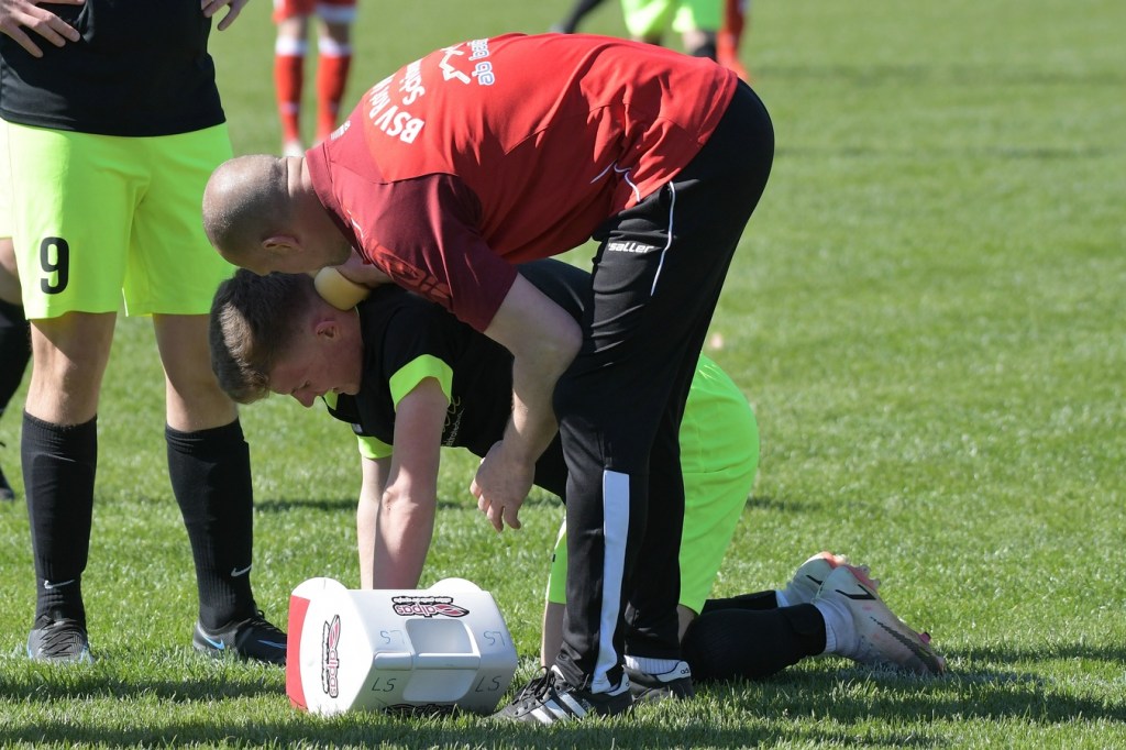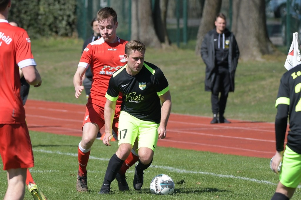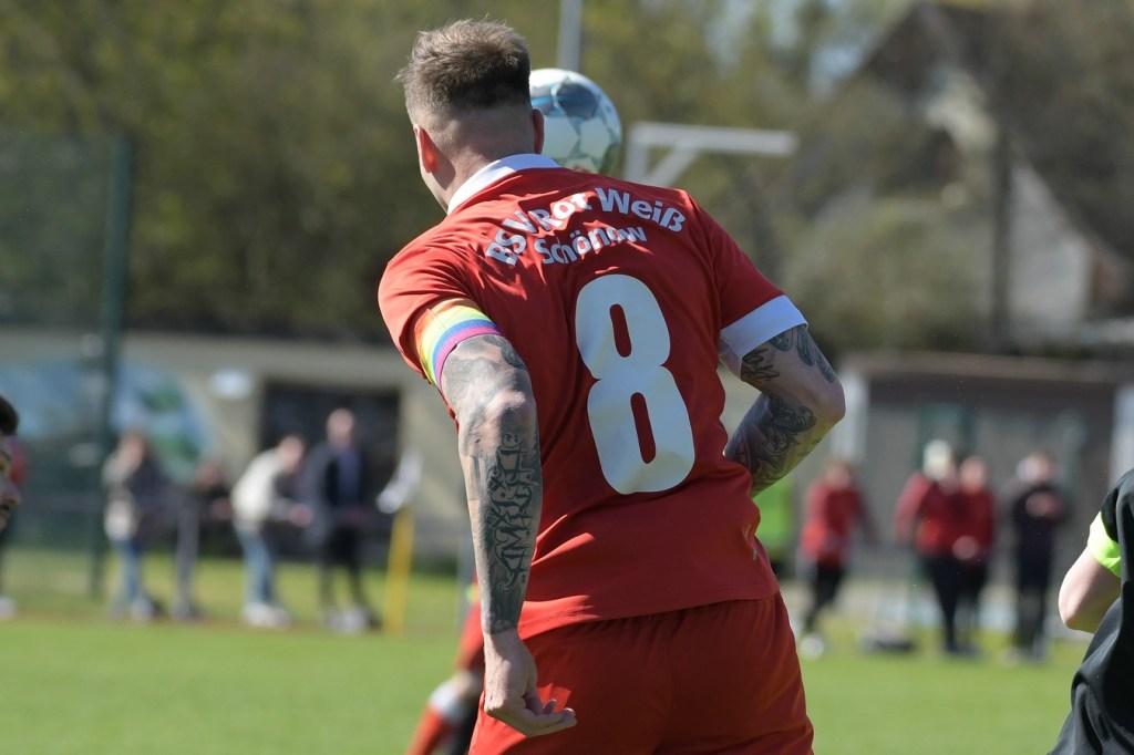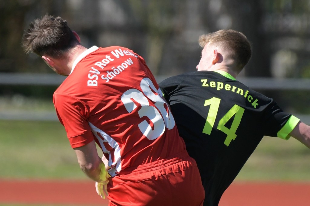 Die Begegnung begann bei bestem Wetter wie erwartet. Zwar waren die ersten Minuten noch mehr von Motivationsgebärde geprägt, aber augenscheinlich hatte sich beide Formationen einen Pokalfight vorgenommen. Dabei hatten die Hauherren mehr auf das frühe Anlaufen gesetzt, um die Bemühungen der Gäste, offensiv tätig zu werden, im Keim zu ersticken. Zepernick hingegen nahm die Einladung zum „Gezanke“ an, blieb aber mehr in der kontrollierten Betriebsart. So brauchte es bis zur 10. Minute, ehe sich dann der erste Aufreger in Form einer Möglichkeit für die Rot-Weißen ins Gespräch brachte. Ein Einwurf mit folgender Flanke von der rechten Seite landete am langen Pfosten bei Emurla Musa, der einen Mitspieler im Rückraum bedienen wollte, aber im Endeffekt nur reichlich abwehrende Gästebeine sah und die Möglichkeit verpuffte. In gleicher Minute wurde ebenfalls ein diesmal langer Einwurf für die Gäste fast zur Not-OP. Patrick Töpfer hatte sich beim Ansetzen zum Kopfball verschätzt, die Kugel unterlaufen und zwang damit seinen eigenen Keeper Dennis Tietz ein Luftduell mit der angreifenden Zunft unter großer Streckung für sich zu entscheiden. Die Begegnung blieb intensiv und lebte vornehmlich von der Spannung. Max Gerhard war der Zepernicker, welcher den ersten halbwegs ordentlichen Angriff aussichtsreich von der Strafraumgrenze abschloss. Letztendlich war sein Schuss zu ungenau und passierte das Schönower Quergebälk in der zweiten Etage (18.). In der 24. Minute wurde es dann richtig ernst. Einheit spielte über die rechte Seite, steckte einen Pass zu Philip Opitz durch, der zu Eric Woiton querpasste und schon zum Torjubel ansetzte. Doch Woiton tat ihm nicht den Gefallen. Sein nicht unplatzierter Flachschuss prallte gegen die linken Pfosten und machte damit eine eigentlich Hundertprozentige zu Nichte. Nur sechzig Sekunden später übernahm Zepernicks Youngster Luca Grabarek per Diagonalanspiel den Ball im Strafraum und brachte diesen unkontrolliert Richtung linkes unteres Eck. Schönows Torsteher Hubertus Zschorlich war aber hellwach und musste schon tief abtauchen, um die Kugel um den Pfosten zu lenken. Dieser Eckball war dann der Allererste der Partie und passte schon zum Spiel, welches mit reichlich Mittelfeldlastigkeit und der daraus resultierenden Chancen-Dürftigkeit glänzte. Zu selten dürfte sich das Spielgerät in den Strafräumen tummeln, was die Partie keineswegs unattraktiv machte, aber schlussendlich schon etwas an der Spannung rumknabberte. Hinzukam, dass der Raumgewinn zwischen den Sechszehnern, auch durch den oder anderen Fehlpass, kaum stattfand. Besonders Peter Erdmann, dem Abwehrorganisator des BSV, fehlte dreimal kurz hintereinander scheinbar die Konzentration, als seine Bälle zum Spielaufbau ohne Nöte im Aus landeten. Den Schlusspunkt einer etwas abbauenden mit einen Hang zur Zerfahrenheit schleichenden Partie setzte Tobias Münchberg, der an der Zepernicker Strafraumgrenze aus der Drehung abzog, den Ball nicht genau traf und dieser knapp am knapp am linken Pfosten vorbei ins Aus ging (45.).