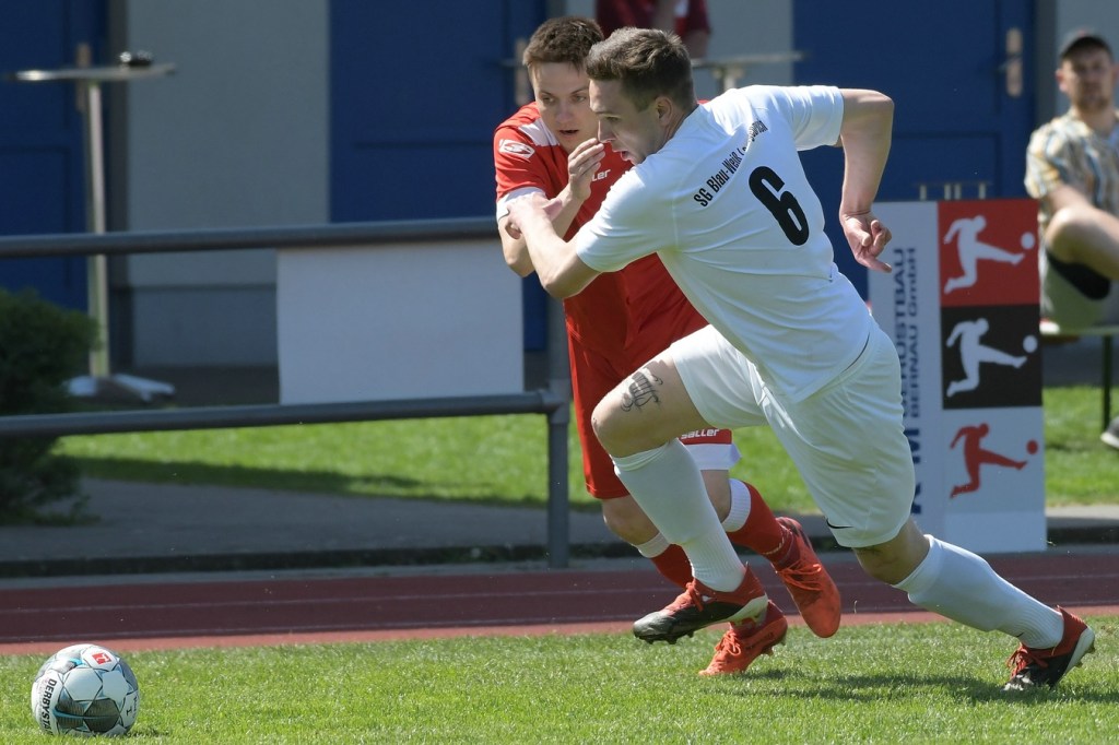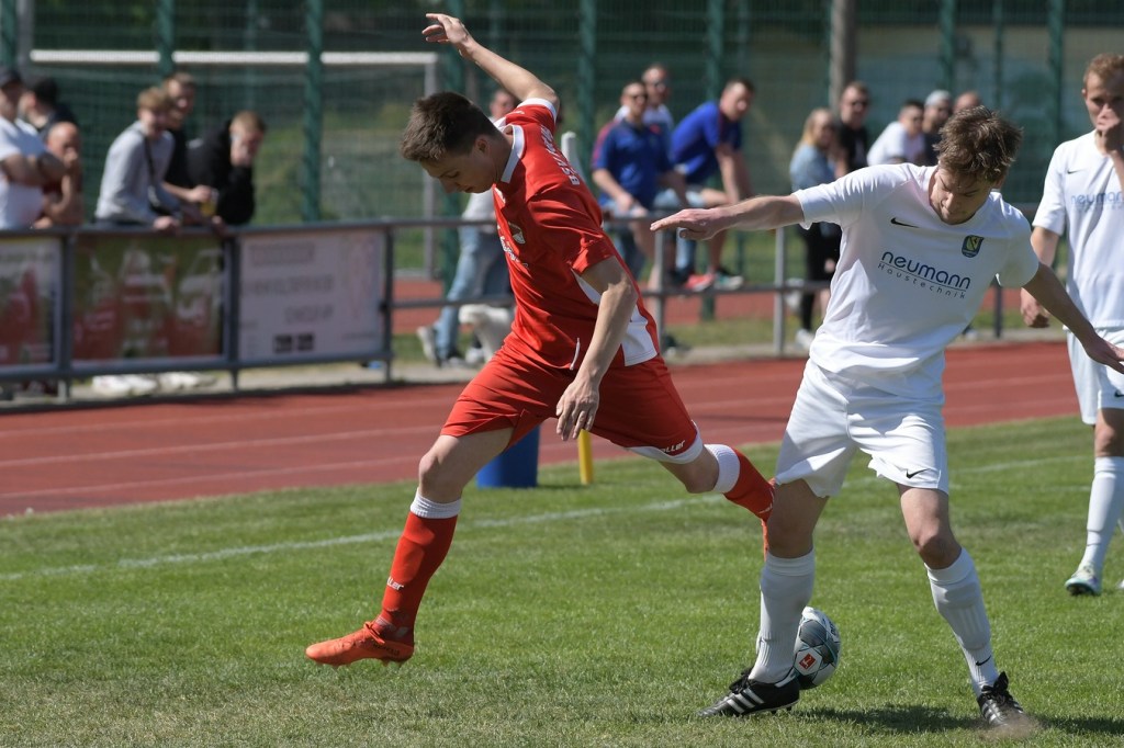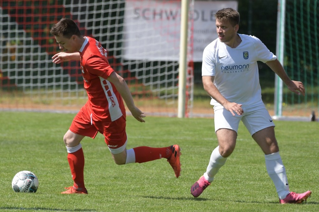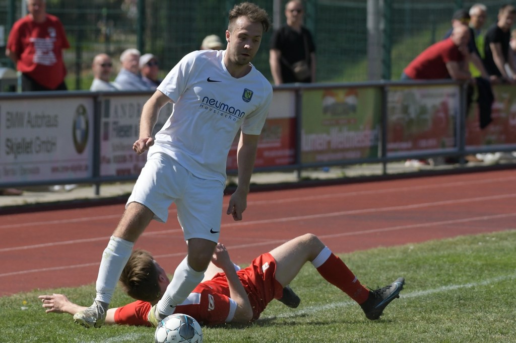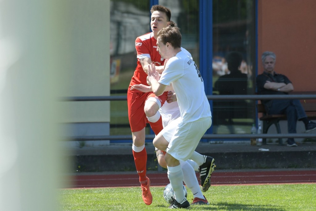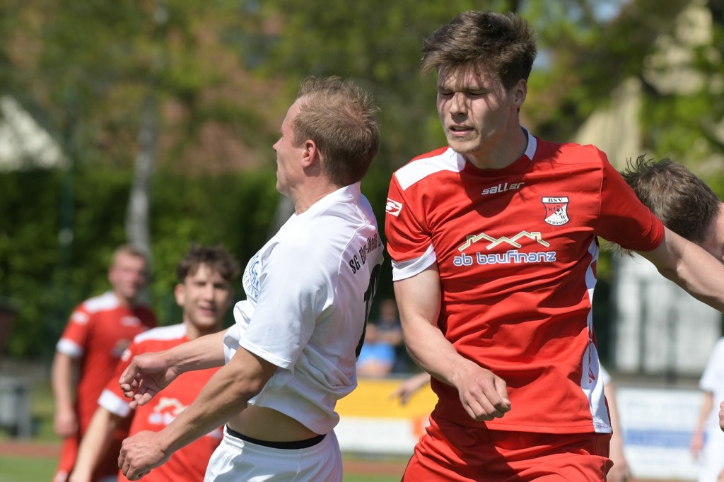 Es knisterte auf dem gut präparierten Rasen. Das Schönower Einschwören im Kreis wurde mit lautem Gebärden beendet, ehe es dann zum Anstoß ging. Intensität, Leidenschaft, Wille und Emotionen waren die Attribute, welcher der Partie den Stempel aufdrücken und das Ganze zum wirklichen Spitzenspiel machten. Dabei zeigte Rot-Weiß in der Anfangsphase die größeren Krallen und hatte mit der Mehrzahl an gewonnen Zweikämpfen so ein wenig die Oberhand im Mittelfeld übernommen. Mit der ersten Ecke für die Hausherren, aus der der Ball nach einem Kopfballduell ans linke Lattenkreuz prallte, war zumindest die Hoffnung gegeben, dass Tormöglichkeiten von dieser Qualität noch mehr auf die Tagesordnung hätten kommen können (4.). Doch leider kam es auf Schönower Seite nicht so. Leegebruch hingegen wirkte in der Anzahl der Abschlüsse etwas lebhafter, doch mehr als ein paar halbe Möglichkeiten sprangen dabei nicht heraus. Das Spiel war extrem intensiv, zwischen den Strafräumen wurde förmlich Gras gefressen, kein Halm preisgegeben und trotzdem fair miteinander umgegangen. Ein Konter in der 16. Minute, den Blau-Weiß über die linke Seite einleitete und daraus eine flache Eingabe in den Strafraum produzierte, wäre für Tim Matzat, wenn er den Ball richtig getroffen hätte, eine gute Möglichkeit gewesen. So musste sich Heimkeeper Hubertus Zschorlich nicht groß anstrengen, um die Kugel wegzufangen. Zur Mitte der Halbzeit kippte das Verhältnis der gewonnen Zweikämpfe in Gästerichtung, die nun ihrerseits ein wenig mehr Offensivkraft entwickeln konnten. Doch wie auch bei den Schönowern fehlte schlussendlich das Zählbare. Zwei Freistöße aus dem Linken Halbfeld, wo nicht ganz klar wurde, welche Absichten dahintersteckten, war die einzig zu erwähnenden Abschlüsse der Hausherren Richtung Halbzeitpfiff. Die Gäste hingegen blieben da durchaus gefährlicher. Nick Matzat bekam die Kugel nach einigem Hin und Her im Schönower Strafraum im Rückraum serviert, zog gleich ab und zwang Zschorlich schon mal sich etwas mehr in die Streckung zu begeben (28.). Als sich dann alle schon auf eine torlose Halbzeit eingestellt hatten, bekam Marcus Croonenbrock nach einem Einwurf mit mehreren Zwischenberührungen und Anspielversuchen den Ball aufgelegt. Sein verdeckter Schuss aus achtzehn Metern ließ alle Schönower Dämme brechen, nach dem das Spielgerat im rechten unteren Eck eingeschlagen hatte (44.). Da war es wieder, das berühmtberüchtigte psychologische Momentum kurz vor dem Pausentee, dass die einen positiv stimmt und den anderen einen Dämpfer versetzt.