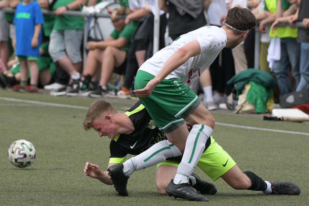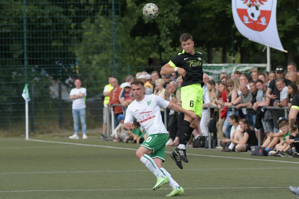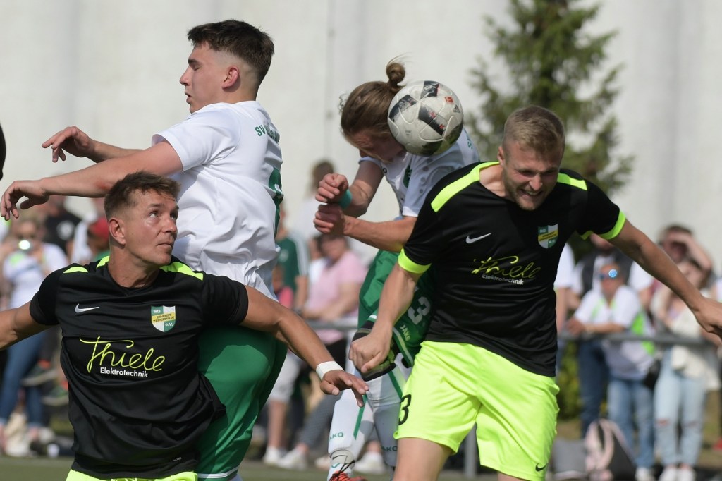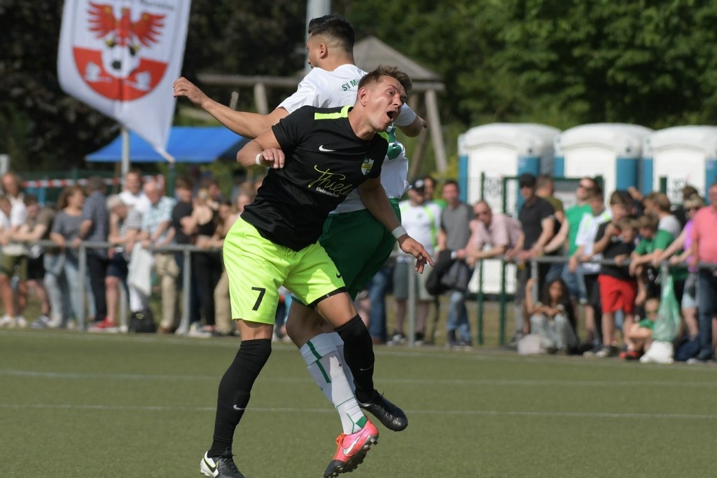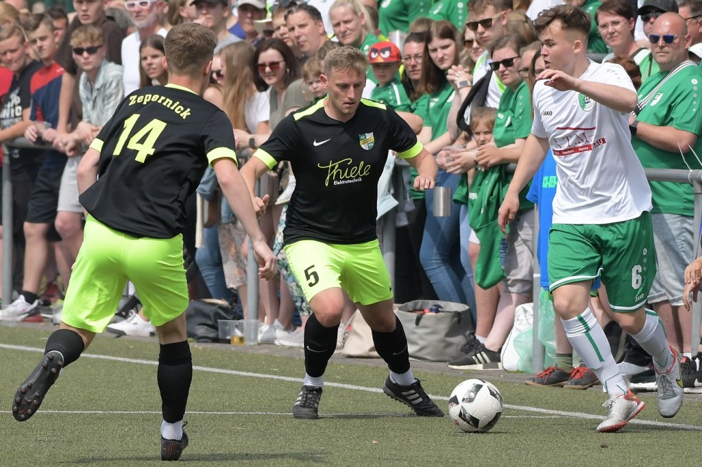 Fußball wurde auch noch gespielt und dies mit großer Überzeugung, welche besonders die favorisierten Zepernicker zelebrierten. David gegen Goliath, das viel zitierte Duell war in aller Munde und so wollte die Heimtruppe unbedingt sensationell in die Pokal-Endspiel-Historie eingehen. Lucio Geral, der Trainer der Landesklassenmannschaft, hatte im Vorgespräch ein paar personelle Ausfälle erwähnt und für den Spielverlauf ein wenig tiefgestapelt. Mühlenbeck präsentierte sich in den Anfangsminuten schon sehr selbstbewusst und versuchte mit aggressiv geführten Zweikämpfen den Gästen den Schneid abzukaufen. Die fünfte Spielminute war angebrochen, da wurde Zepernicks Youngster Luca Grabarek auf die Reise geschickt. In Stürmermanier gewann er das Laufduell und vollendete flach und unhaltbar für Heimkeeper Oskar Wolff zum 0:1. Das war der Paukenschlag, der dem erwarteten Pokal-Fight förmlich den Hahn abdrehte. Denn in der Folge, etwas schleichend, übernahm Zepernick mehr und mehr die Spielkontrolle. Zwar bekam Paul Michael Franzen in der 8. Minute die erste Möglichkeit für seine Heimelf aufgelegt, als er nach einer flachen Eingabe von der rechten Seite am kurzen Pfosten zum Schuss ansetzte, dann aber Pech hatte, dass Alexander Rathmann mit dem Fuß den Ball ins Aus lenkte. Doch der Klassenunterschied wurde nun immer präsenter. Das Kurzpassspiel der Gäste offenbarte in einigen wenigen Phasen schon einen Hang des Überforderns für den SV und brachte aber im Gegenpart auch Züge des Glückes mit, weil Einheit seine Angriffsaktionen manchmal zu verspielt aufzog, anstatt diese auf direktem Wege zu suchen. Als dann Routinier Vincent Lipp per Kopfball auf 0:2 stellte, war die Partie förmlich entschieden. Der 37jährige Torschütze, welcher im weiteren Spielverlauf zum besten Spieler der Begegnung avancierte, bereitete verbal seinen Treffer selber vor, als er Luca Gabarek rufend aufforderte, ihm den Ball aufzulegen (23.). Die Folge wurde für den Kreisligisten nun zur Leidenszeit. Einheit trat wie der erwartete Favorit auf, ließ die Kugel sehenswert laufen, marschierte wie Butter geschnitten durch die Mühlenbecker Abwehrreihen und kam immer wieder zu guten Möglichkeiten. Was dem Auftritt der Einheit aber immer noch fehlte, war die Zielstrebigkeit. Ein wenig Pech kam auch noch hinzu, wie beim Pfostentreffer von Grabarek, der sich vorab sehenswert in Position gebracht und im Endeffekt zu sehr maßgenommen hatte. (25.). Mühlenbeck hingegen war weiter bemüht die qualitative Scharte auszumerzen, musste aber schmerzlich anerkennen, dass der eigene Niveauanspruch nicht langte. Wenn dann mal die Mechanik im Spielaufbau der Gäste der Schludrigkeit geneigt war, was sehr selten passierte, war der SV präsent. In der 34. Minute bekam Alexander Will nach einem Querpass auf ihn an der Strafraumgrenze die Chance mit dem herauseilenden Gäste-Torsteher Dennis Tietz ins Eins-gegen-Eins-Duell zu gehen, welches Will auch gewann. Doch seinem Schuss fehlte ein wenig Schmackes, was der Einheit-Abwehr die Möglichkeit gab, den Ball kurz vor dem Überschreiten der Torlinie aus der Gefahrenzone zu befördern. Als sich dann die Akteure scheinbar auf ein noch überschaubares Halbzeitergebnis einstellten, schlug Zepernick doppelt zu und machte damit schon vor dem Pausengang die Tür für die Heimtruppe für ein Comeback sprichwörtlich zu. Vincent Lipp erzielte seinen zweiten Treffer, als er nach Flanke von Philip Opitz im Kopfballduell am höchsten stieg und Oskar Wolff im Kasten zur Glanztat zwang, dann nachsetzte und die abgewehrte Kugel über die Linie drückte (45.). Zwei Minuten später war Max Gerhard zur Stelle und verwertete vollkommen blank eine Flanke zum für die Hausherren nüchternen 0:4.
