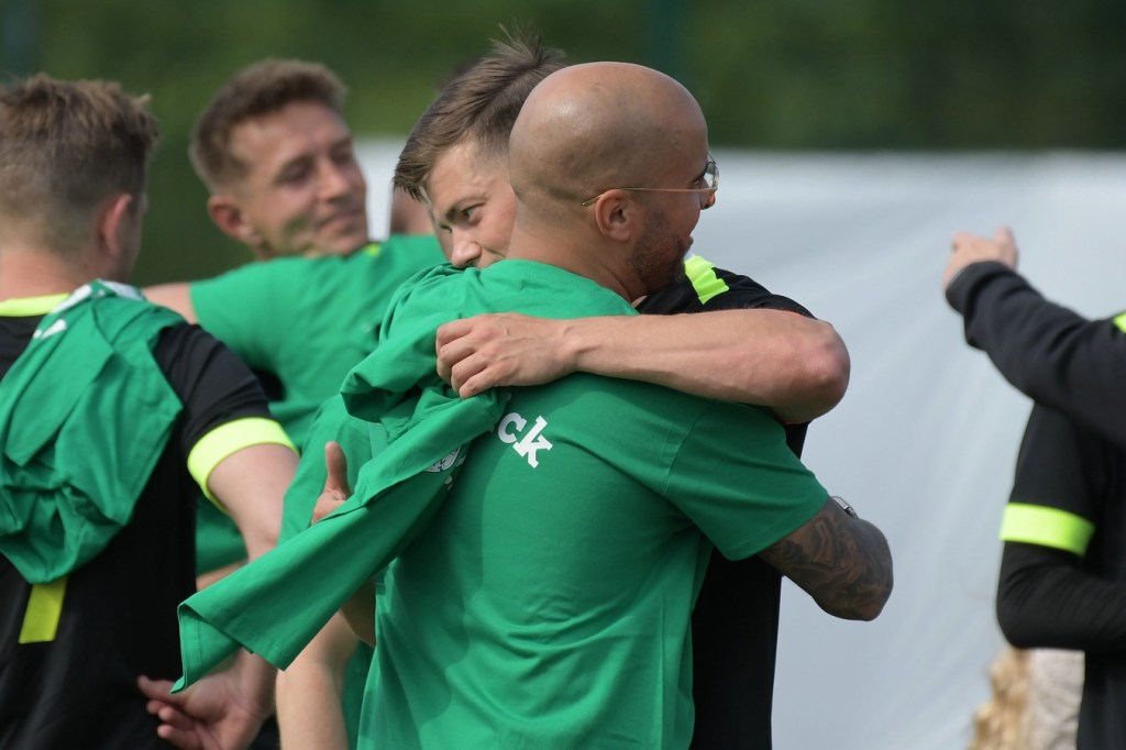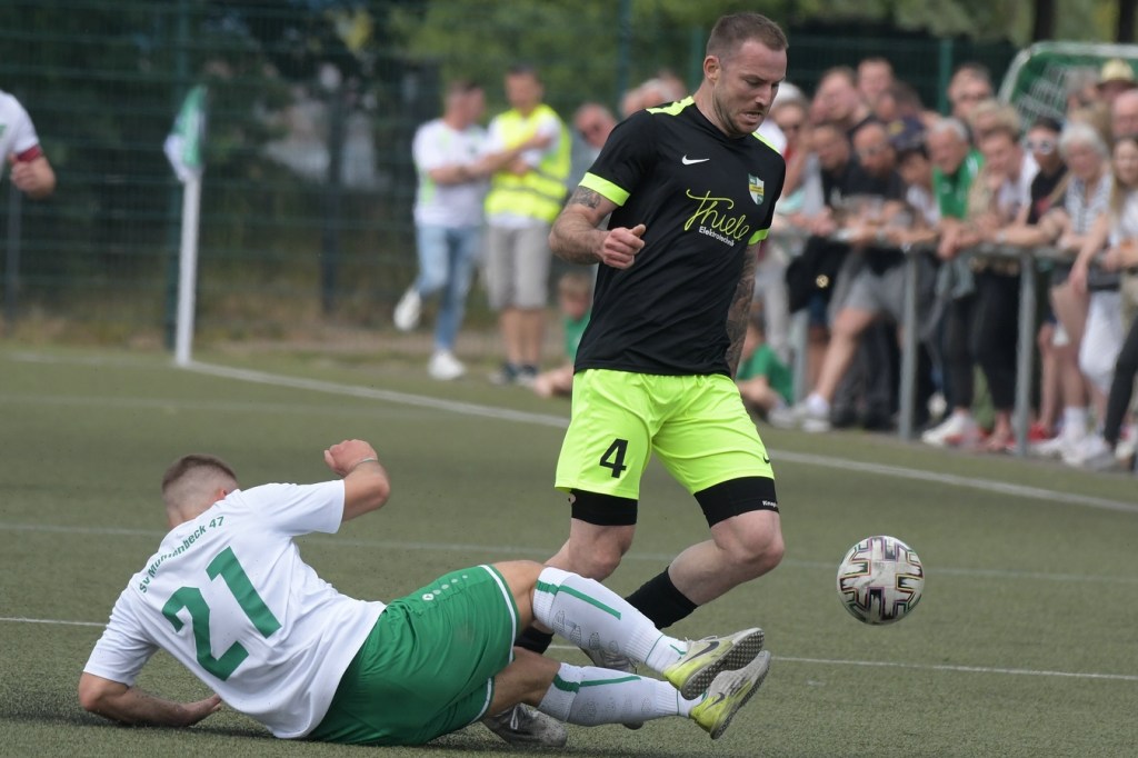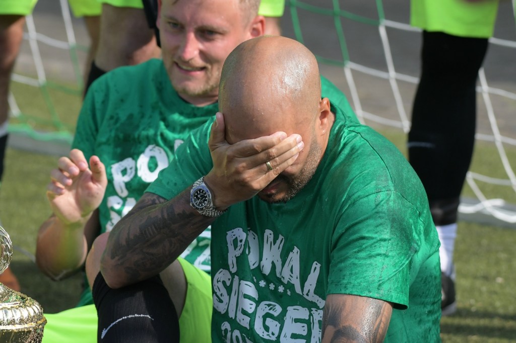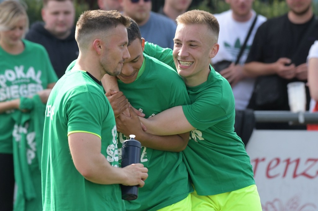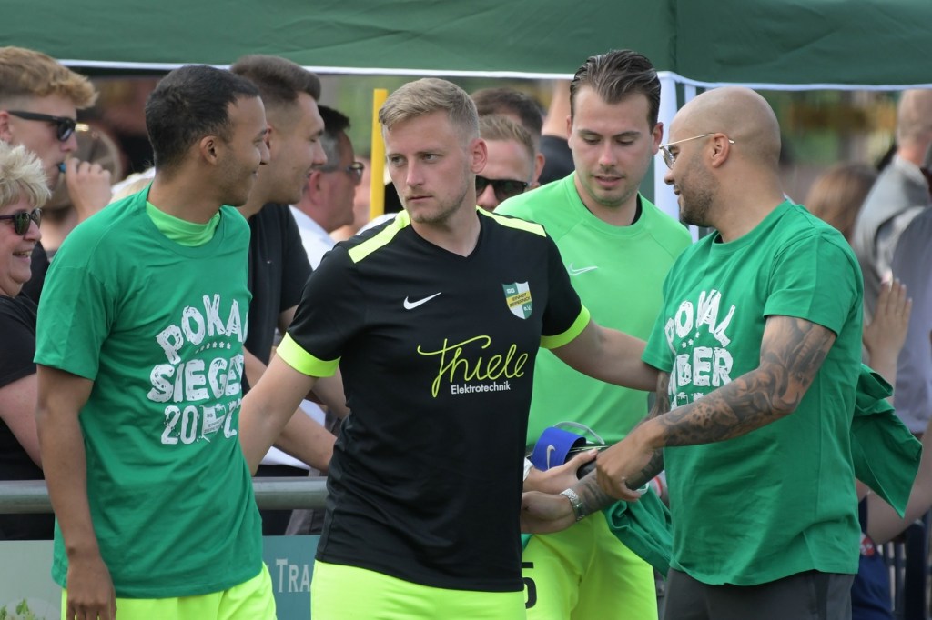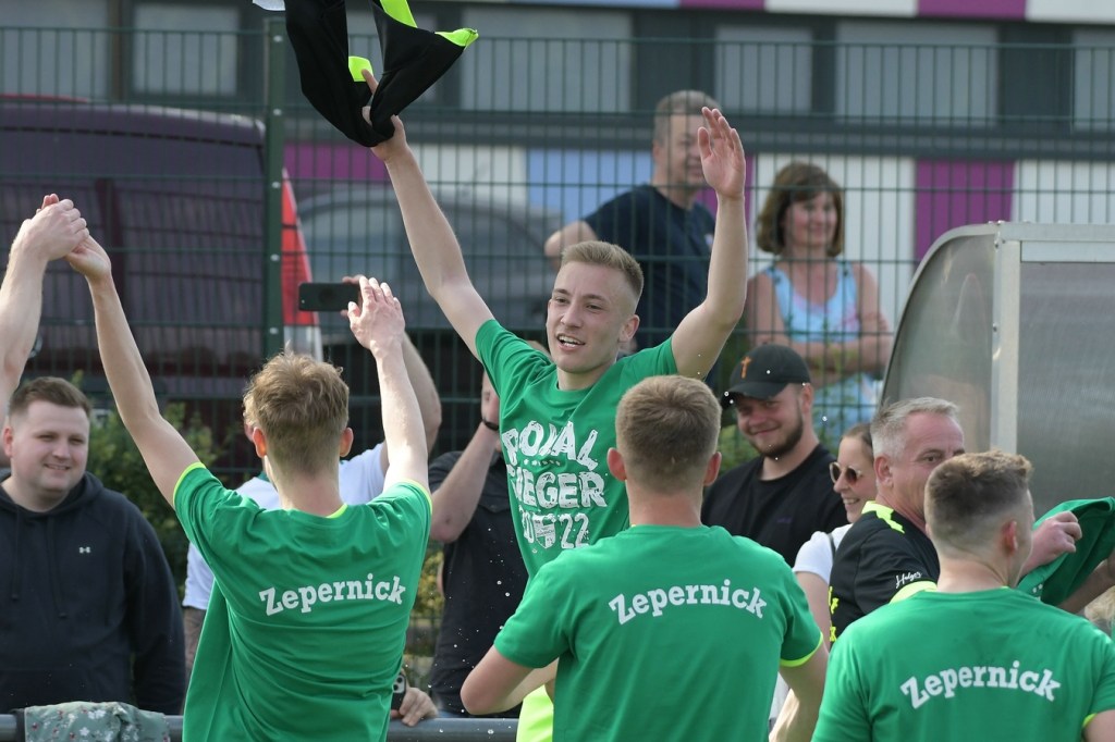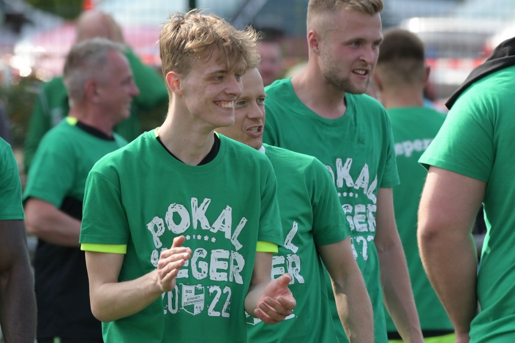 Mühlenbeck hatte zum Wiederanpfiff den Kopf noch nicht in den Sand gesteckt. Die Motivation, der zahlreich erschienenen und nimmermüden, anfeuernden eigenen Fan-Gemeinde noch einmal alles zu zeigen und damit Danke zu sagen, war in den Anfangsminuten sehr präsent. In den Einheit-Reihen hingegen war schon ein sicheres Selbstgefühl eingezogen, was dem Kreisligisten etwas mehr Freiheiten gab, sich Möglichkeiten zu kreieren. So hatte die Kopfball-Chance durch Hannes Stier nach einem Eckball schon eine gute Erfolgsquote, letztendlich überquerte der Ball dann die Querlatte, um im Anschluss mit Abstoß wieder ins Spiel gebracht zu werden (49.). Die Begegnung schleppte sich, weil besonders Zepernick in den Verwaltungsmodus umschaltete und nur noch das Nötigste anbot. Mühlenbeck arbeitete weiter am Torerfolg und hatte in Justin Dennis Zwarg den Kollegen in vorderster Front, der dem Torerfolg mit zwei sehr guten Möglichkeiten am nächsten kam. Das Glück hatte er dabei aber nicht gebucht bzw. in Dennis Tietz einen sicheren Gegenpart gefunden. Max Gerhard, einer der Auswechselkanditen bei den Zepernickern, machte wenige Minuten vor seinem Abgang noch einmal auf sich aufmerksam, als er die Kugel von der Strafraumgrenze recht kläglich in die Mühlenbecker Sonne jagte (64.). Viel lief dann nicht mehr zusammen. Im Endeffekt erhöhte Lesley Park in der 82. Minute auf 0:5. Große Freude kam noch einmal beim Pokalsieger auf, als der eingewechselte Jan Gedenk, eigentlich Stammspieler der Einheit-Reserve, das Schlussresultat herstellte (88.). Die ganz große Feiersause blieb dann aus. Bei dem klaren Ergebnis auch ein wenig verständlich. Lucio Geral, biergetränkt und deshalb auch ein wenig bedient, zeigte sich im Nachgespräch schon recht glücklich über den Erfolg und blickte aber dann auch noch in den laufenden Ligabetrieb. „Ich hatte mir schon gewünscht, dass wir souverän zum Erfolg kommen. Dass wir es dann auch so umgesetzt haben, macht mich schon glücklich. Es war aber nicht zwingend, denn wir wussten schon, dass es hier ein heißes Pflaster ist. Zur Halbzeit war die Partie eigentlich schon entschieden, im Endeffekt geht das Ergebnis auch in der Höhe in Ordnung. Jetzt schielen wir in der Meisterschaft weiter nach Templin und hoffen, dass dort noch aus Versehen etwas passiert.“