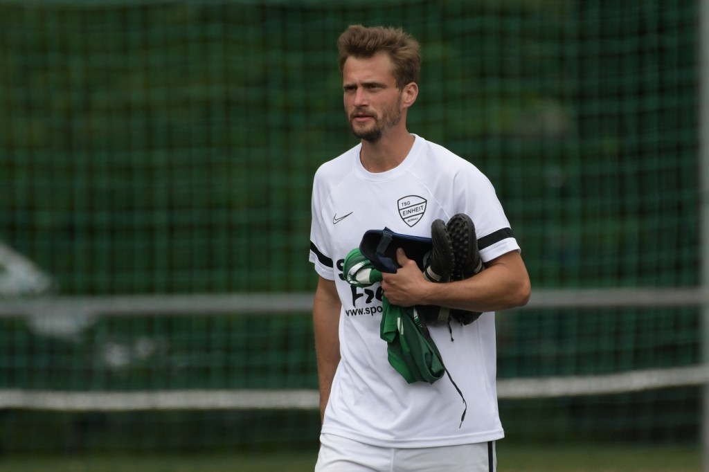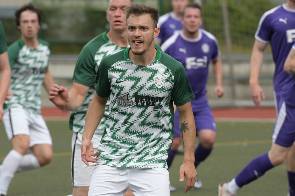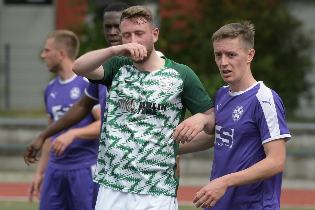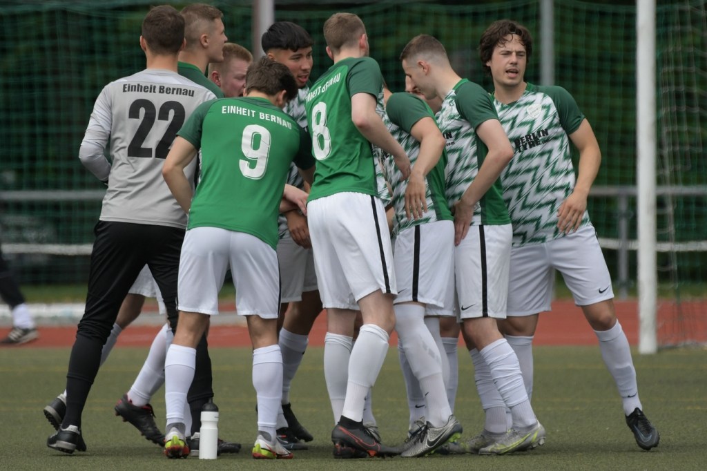 Die Partie begann sehr intensiv mit einer Bernauer Truppe, welche spielerisch und vor allem auch kämpferisch in die Angebotsvorlage ging. Der erste halbwegs ordentliche Angriff der Heimtruppe offenbarte klar und deutlich, dass Altlüdersdorf mental noch gar nicht die Kabine verlassen hatte und in der letzten Abwehrreihe die Kompromissfreudigkeit im Zweikampfverhalten sehr lapidar gehalten wurde. Tom Stedtler konnte sich über die linke Seite kommend mit vielen Freiheiten Richtung Gästekasten bewegen, per Flachschuss abschließen und im Anschluss feiern lassen, weil der Ball, für ihn zum Glück, abgefälscht im Netz zappelte. Letztendlich wurde dann Kelvin Adomah folgerichtig als Eigentorschütze im Spielformular erwähnt (3.). Nicht mal sechzig Sekunden später lag schon der Ausgleich in der Luft. Die Chance nach einem langen Ball auf den wieselflinken Niclas-Florian Junge, der dann im persönlichen Duell mit Einheit Keeper Steve Jarling den Kürzeren zog, hätte schon in die Kategorie der fast hundertprozentigen Möglichkeiten gehört. Aber auch Einheit blieb torgefährlich und hatte vor allem die Spielkontrolle auf die eigene Seite gezogen. „Wie haben heute schon gegen einen sehr starken Gegner gespielt. Ab der zehnten Minute hat die abgeklärtere Mannschaft etwas mehr Kontrolle bekommen, da hat sich dann doch die Routine der Gäste ausgezahlt“, hatte Einheit-Coach Nico Thomaschewski den Wandel in den Kräfteverhältnissen erklärt. Denn Altlüdersdorf schien in der Folgezeit die anfängliche Schläfrigkeit überwunden zu haben. Es blieb weiterhin intensiv und spannend. Der Schauplatz zwischen den Strafräumen wurde mehr und mehr zur Kampfarena ohne gebotene Möglichkeiten spielerische Qualitäten in die Waagschale zu werfen. Wenn es dann mal schnell ging und sich Räume boten, bekam das fußballerische Element ein ordentliches Gütezeichen. Chancen gab es auf beiden Seiten, Junge mit seiner zweiten Schussmöglichkeit blieb in den Bernauen Beinen hängen (9.), Viacheslav Veybert im Gegenzug per flachem Geschoß knapp am Kasten vorbei (11.). In der 16. Minute waren die Gäste wieder kurz vor dem Ausgleichsjubel. Dabei zeigte sich Heim-Torsteher Steve Jarling nicht gänzlich auf der Hut, als er sich beim Rauslaufen verschätzte, um den Heber von Kevin Künzer zu unterbinden. Bedanken konnte sich Jarling schlussendlich bei seinen Kollegen, die die Kugel noch rechtzeitig aus der Gefahrenzone entfernten. Wacher zeigte sich Jarling nur wenig Sekunden später, als er wieder Künzer vor sich hatte und diesmal per Großtat den Einschlag verhindern konnte. Es blieb weiterhin enge, große Auszeiten konnte sich niemand leisten. Altlüdersdorf drängelte schon ein wenig, offenbarte aber irgendwie das gleiche Problem wie das der Bernauer – nämlich die Effizienz. Den Höhepunkt im „Chancen auslassen“ hatte aber Bernaus Frederick Fiebig für sich gebucht. Vollkommen blank, nach flacher Eingabe von der rechten Seite, nagelte er den Ball kläglich neben das Tor (27.). Für immer auffälliger werdenden Gäste kam es in der 35. Minute nun ganz dicke. Denn mit dem 2:0 durch Tom Stedtler bog die Partie so ein wenig Richtung Heimsieg ab. Stedtler wurde Nutznießer einer abgewehrten Ecke, bei der er den Ball direkt und unhaltbar in die Maschen jagte. Doch damit nicht genug. Paul Peschke markierte den dritten Heimtreffer nach einem langen Einwurf unter der großen Mithilfe zuschauender Gäste, als er ohne Gegenwehr aus Nahdistanz einnetzen konnte (39.).