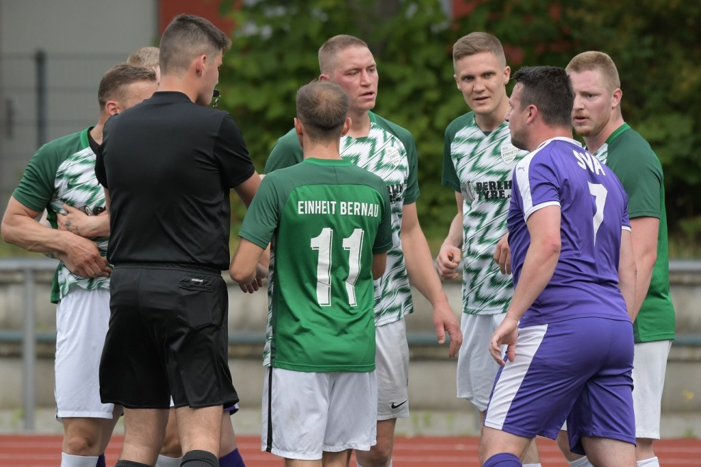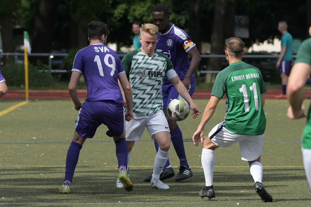 Dem Braten, dass Altlüdersdorf zum zweiten Durchgang nun dem Sommerfußball frönen und die Niederlage einfach so hinnehmen würde, wurde um die fünfzigste Minute jeglicher Geschmack genommen. Denn der Doppelschlag zum 3:2 ließ das Einheit-Kartenhaus mächtig wanken. Paul Radom hatte einen „Softball mit Hebewirkung“ abgesetzt und Steve Jarling überwunden (50.). Süleyman Gül war danach von der Strafraumgrenze mit platziertem Geschoß erfolgreich, nachdem die Einheit-Abwehrriege nicht den griffigsten Eindruck hinterlassen hatte (52.). Das Pendel zeigte nun eindeutig Richtung Ausgleich. Doch dagegen hatte Viacheslav Veybert die passende Bernauer Antwort gefunden. Ein Kampfgelage um das Spielgerät kurz vor der Gästestrafraumgrenze endete mit einem Pass auf den Torschützen, der mit viel Freiraum nicht lange fackelte und unhaltbar einlochte (60.). Es blieb weiterhin intensiv, mit mehr Möglichkeiten für das Team aus der Oberhavel. Doch die Partie hatte Kraft gekostet, was sich auch in der nachlassenden Power der Abschlüsse widerspiegelte, die den Torleuten kaum noch Probleme bereiteten. Schlussendlich blieb es beim Heimsieg „Der Effektiveren“.