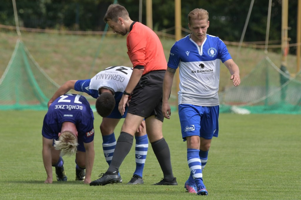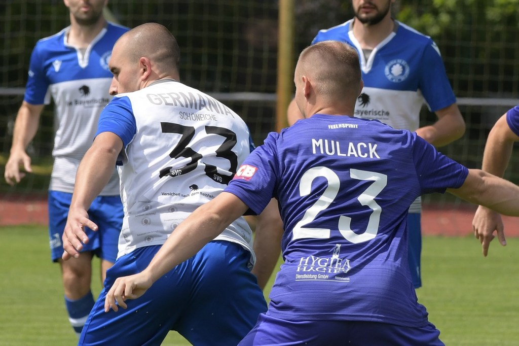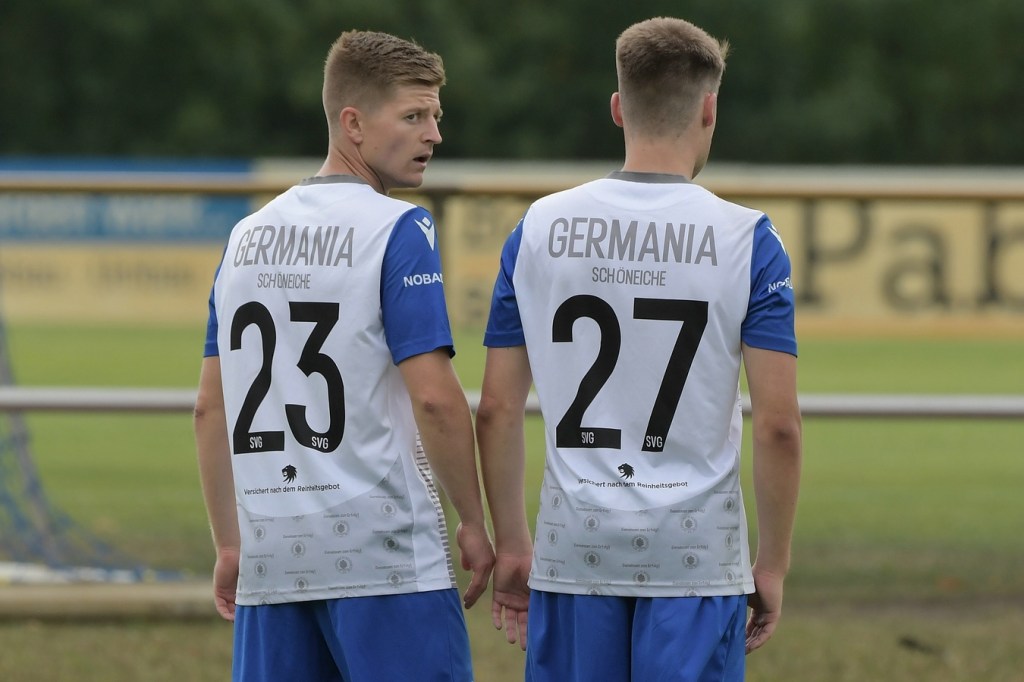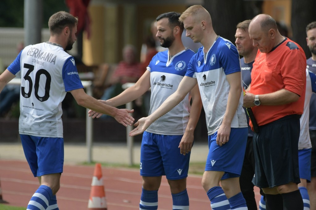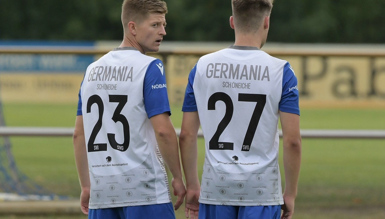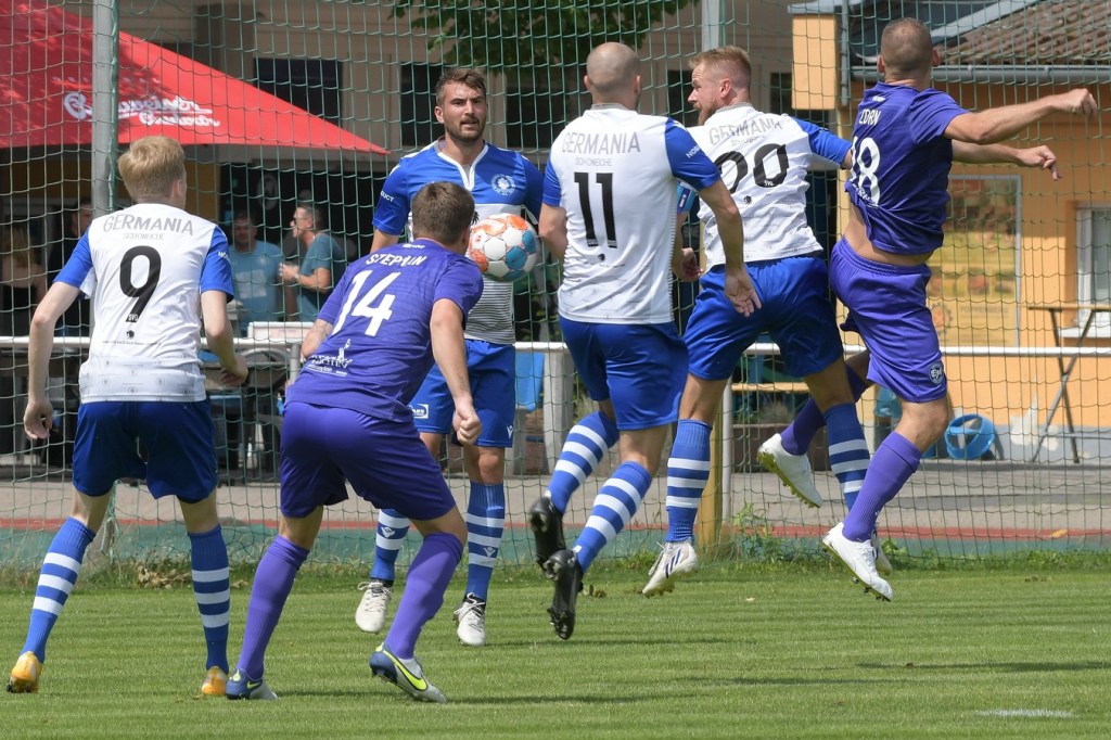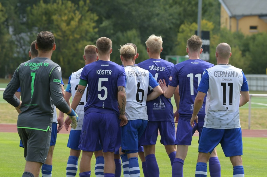 Zum zweiten Test in der Vorbereitungsphase hatte sich Germania den Berliner Oberligisten Eintracht Mahlsdorf eingeladen. Eine ganz schöne Hausnummer, wie die Schönknecht-Jungs auch von Minute eins an zu spüren bekamen. Bereits in der 4. Spielminute roch es stark nach einer Gästeführung, als Kevin Stephan nach einer Flanke von der rechten Seite am Fünfer zum Abschluss kam, der Schuss aber vom wachen Heimkeeper Emmanouil Demenikos gerade so noch entschärft werden konnte. Es war aber keineswegs so, dass Schöneiche sich hinter der Burgmauer versteckte, um den Laden dicht zu halten. Man versuchte schon mit Einsatzwillen und aggressiver Zweikampfführung in die Balleroberung zu kommen und kleine Rauchzeichen Richtung Oberligavertretung zu senden. So war es Denis Teterea der von der Strafraumgrenze abzog und Pech hatte, dass sein Geschoß durch einen Gästefuß eine Richtungsänderung neben das Tor bekam (7.). Die Partie war ansehnlich und hatte auch Züge aus dem Wettkampfmodus. Ein langer Ball in den Strafraum, bei dem sich die Heimabwehr inclusive Torsteher nicht sehr sattelfest präsentierten und den Ball unterliefen, landete bei Denis Mrkaljevic. Dieser hatte keine Mühe auf Christoph Zorn querzupassen, der schlussendlich nur noch den Fuß hinhalten musste um als erster Torschütze im Spielformular genannt zu werden (11.). Nur eine Minute später prüfte Niklas Thiel die Haltbarkeit des Pfostens, als er aus der zweiten Reihe einen abgewehrten Ball zum Strahl verwandelte und dabei Pech hatte, die Führung für die Gäste nicht ausbauen zu dürfen. Germania wackelte nicht, denn diese Umstände wurden so ein wenig der Löser der eigenen Handbremse. Das Team tauchte nun so langsam in eine Phase ein, in der man zumindest chancentechnisch zwei Mal hätte jubeln dürfen. Erst war es wiederum der agile Denis Teterea, der Gäste-Torsteher Niklaas Seifarth aussichtsreich prüfte (16.). Dann kam Aaron Marcel Weber volley zum Abschluss und musste ebenfalls Seifarth die Show mit einer Parade überlassen. Nach einer guten halben Stunde intensiver Beackerung der Spielfläche zwischen den Strafräumen und der Spielkontroll-Wiederübernahme der Gäste, konnte Mahlsdorf zwar mit Halbchancen glänzen, fand dabei aber zu selten den finalen Spielzug, der schlussendlich die zu erwartende Torgefahr ausstrahlte. Die 38. Minute zeigte ein Beispiel dafür, warum Eintracht bis dato nur mit 1:0 führte. Ein durchgesteckter Ball auf Christoph Zorn, der eigentlich dann wunderbar querpasste, endete mit einem vorbeirutschenden Kevin Stephan, der nur einen Wimpernschlag zu spät kam und die Kugel somit verpasste. Im Endeffekt konnte die Oberliga-Truppe diesen Makel bis zum Halbzeitpfiff doch noch vergessen machen. Dabei hatte Kevin Stephan in die Kabinettstückchen-Kiste gegriffen und das Anspiel zu ihm dann sehenswert selber vorgelegt und das Spielgerät per Heber über Demenikos im Netz untergebracht (41.). Das 3:0 erzielte wiederum Kevin Stephan, der Nutznießer der Schöneicher Schläfrigkeit wurde, als die Gäste im Mittelfeld einen Freistoß schnell ausführten, zusätzlich beim Anspiel auf den Torschützen Abseits monierten und sich dabei ein wenig aus dem Spielzug nahmen. Ein Lupfer über den Keeper stellte dann das standesgemäße Halbzeitergebnis her.