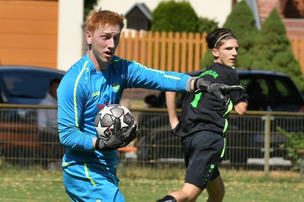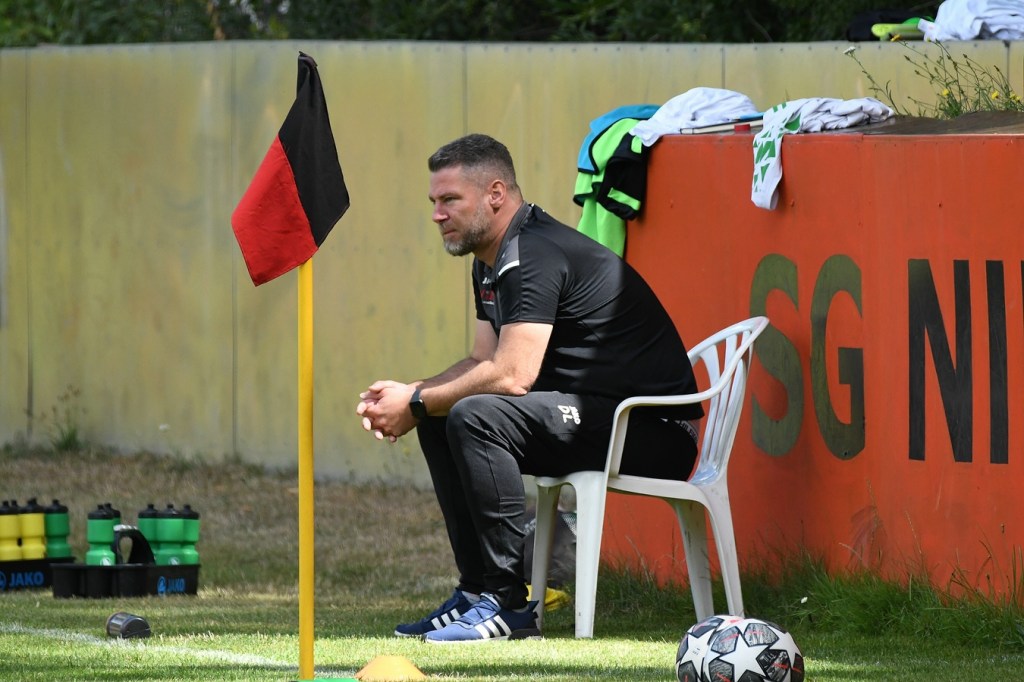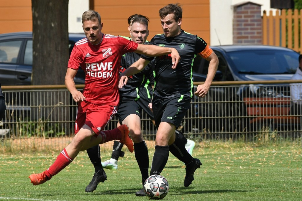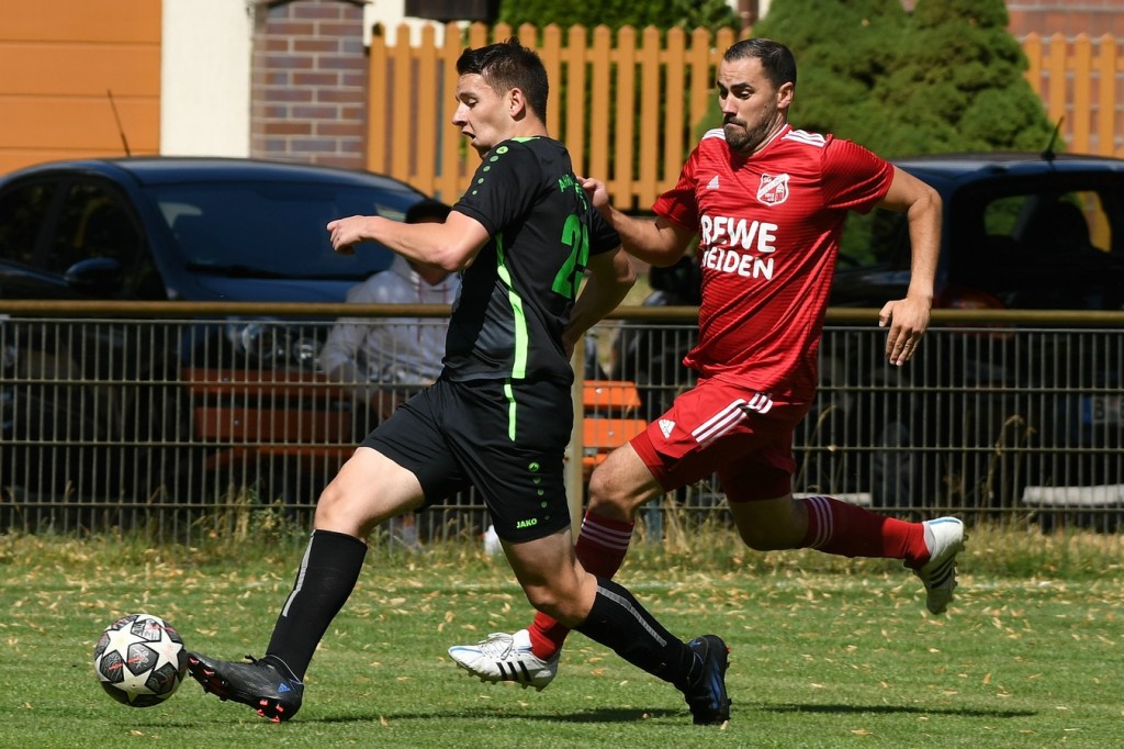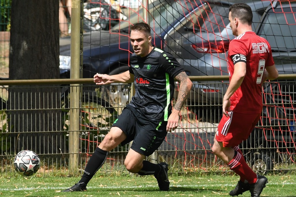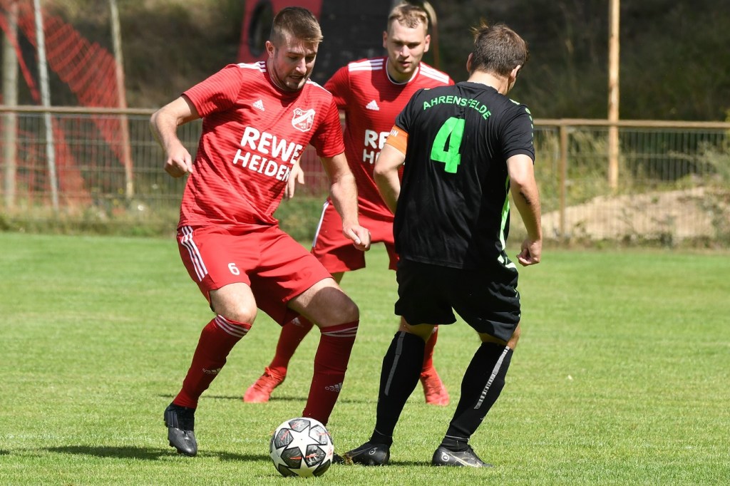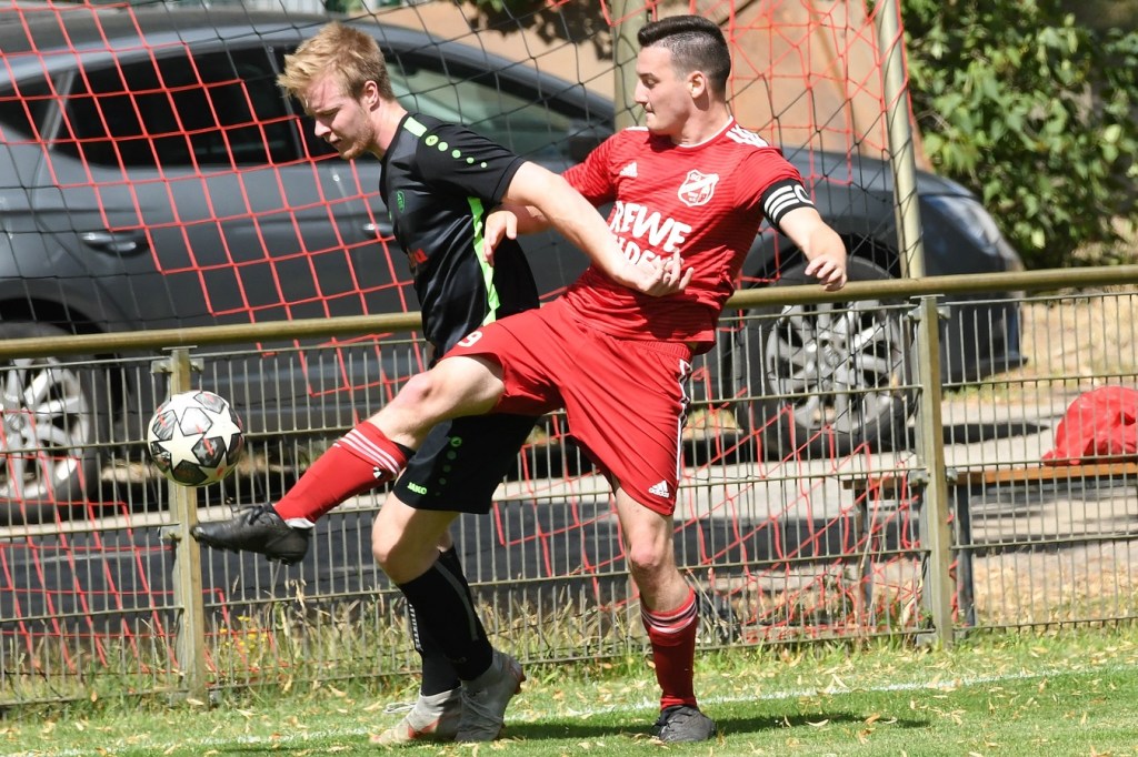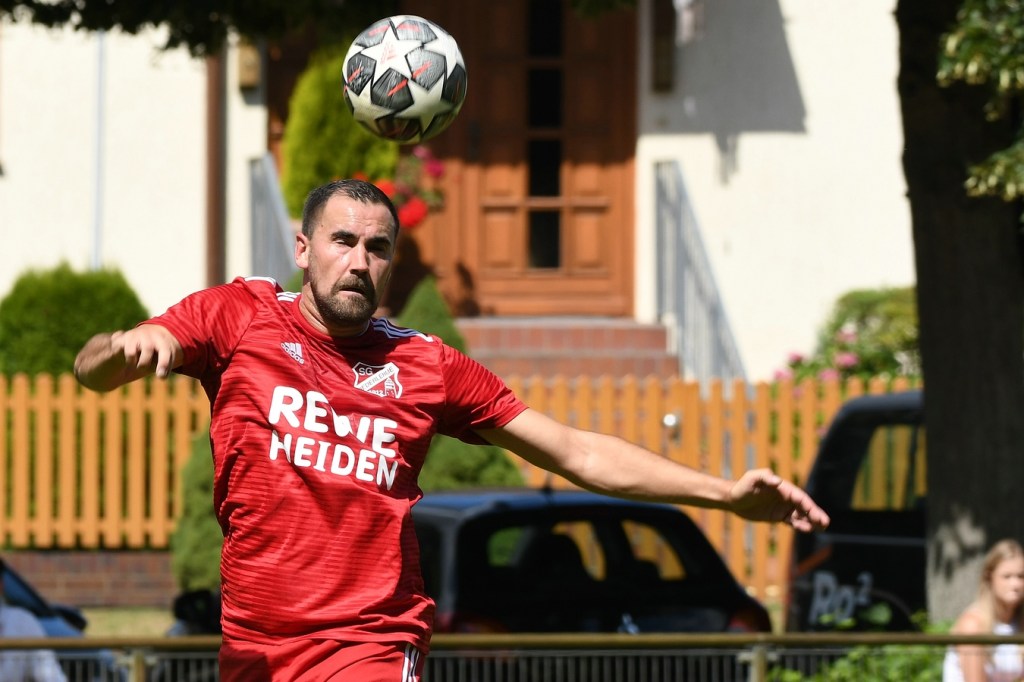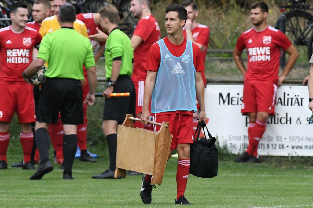 Personaltechnisch konnten beide Trainer nicht aus dem Vollen schöpfen, bei den Gästen fehlten sogar elf Aktive. „Es waren schon einige wichtige Stammkräfte nicht dabei“, sagte Ahrensfeldes Trainer Daniel Lüß und zeigte sich trotzdem mit dem Auftritt seiner Jungs sehr zufrieden. Besonders die Anfangsminuten zeigte Ahrensfelde Spiellaune und bewegte sich mit der Heimtruppe auf Augenhöhe. Es war intensiv, aber auch hektisch. Florian Redder setzte als Erster die Gästeflagge mit einer Möglichkeit in der 3. Minute, doch sein Schuss verunglückte aus guter Position dermaßen, dass aus diesem schlussendlich nur ein Einwurf für die Heimtruppe auf die Rechnung kam. Niederlehme brauchte etwas länger für die erste Torgefahr, welche Niklas Hentschel mit einem Geschoss aus der zweiten Reihe für sich verbuchte (8.). In der Folge wurde das Mittel der Abschlüsse aus dem Rückraum so ein wenig das Probateste. Nach gut zehn Minuten übernahm das Landesklassenteam zusehends die Spielkontrolle, drängte Grün-Weiss immer mehr in deren Hälfte und kam auch zu guten Möglichkeiten. Die größte Chance in dieser Phase hatte „k.A.“ in der 15. Minute, als nach einer Ecke die Abwehr von Gäste-Keeper Patrick Hilliger nicht sehr sattelfest wirkte und der Ball „k.A.“ direkt vor die Füße sprang. Mit allen Freiheiten ausgestattet, schaufelte er die Kugel Richtung Tor, aber nicht platziert genug, sodass Marcel Riemer den Ball auf der Torlinie stehend per Kopf aus der Gefahrenzone bugsieren konnte. Die SG drängelte und hatte genug Möglichkeiten, das Zählwerk auf mindestens 3:0 zu stellen. „Das ist unser Problem, die schlechte Chancenverwertung. In der vergangenen Saison waren wir lange im Abstiegskampf, das war auch eine der Ursachen dafür“, hatte Heim-Trainer Stephan Rosenberg im Nachgespräch den genannten Umstand moniert, ansonsten aber eine starke Halbzeit seiner Jungs gesehen. Ahrensfelde blieb nicht chancenlos, hatte in einer Situation aber Pech, dass Andrew Neumann sich von der rechten Seite kommend vor der Strafraumgrenze irgendwie versuchte eine Schussposition für den rechten Fuß zu finden, dies ihm aber nicht gelang (18.). Die Druckphase der Hausherren mit den vielen guten Möglichkeiten überstand die Brandenburgliga-Reserve schadlos und kam nach einer halben Stunde wieder mehr in die Entlastung. Justin Lauterbach hatte sich in der 38. Minute an der linken Eckfahne festgesetzt und den Ball, trotz einiger Versuche des „Abluchsens“, behauptet und straff geflankt. Marcel Riemer war im Anschluss am kurzen Pfosten mit der Stirn zur Stelle und verfehlte den Kasten letztendlich nur knapp.