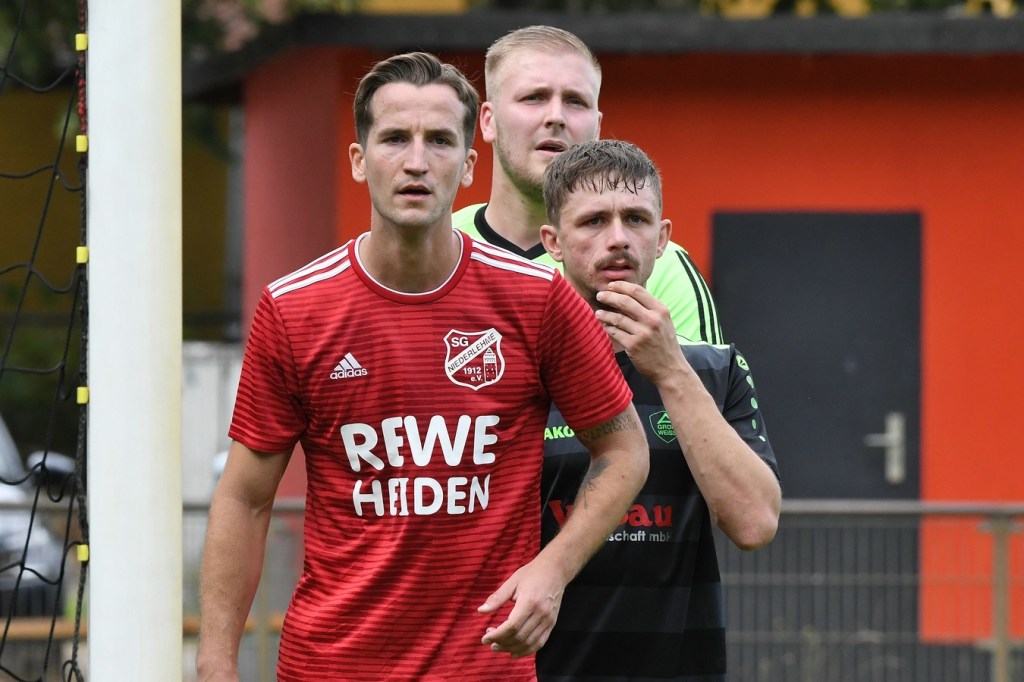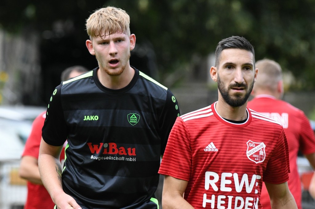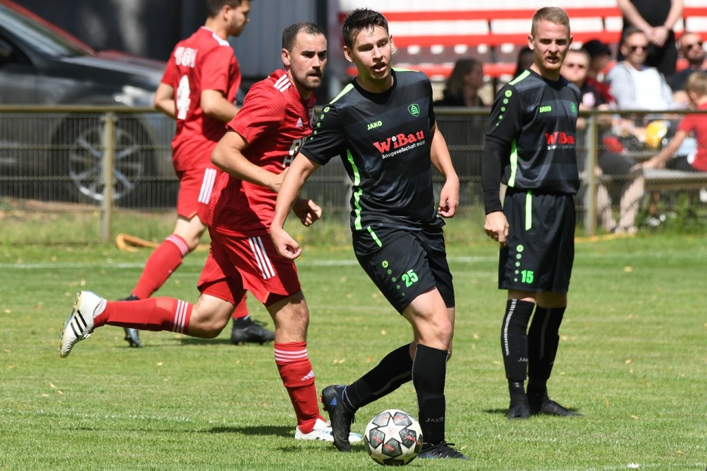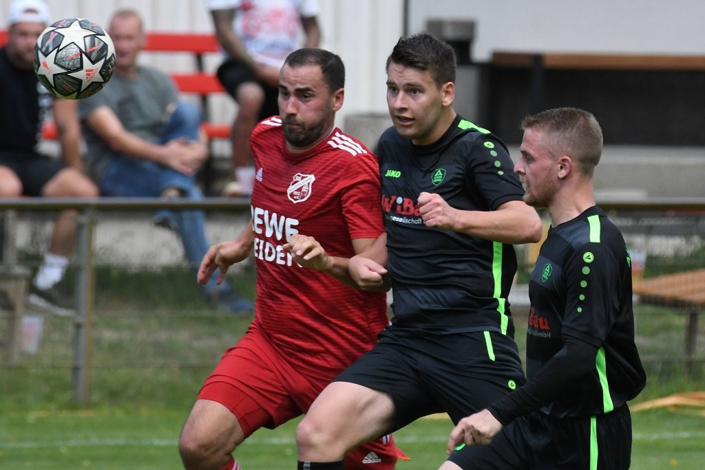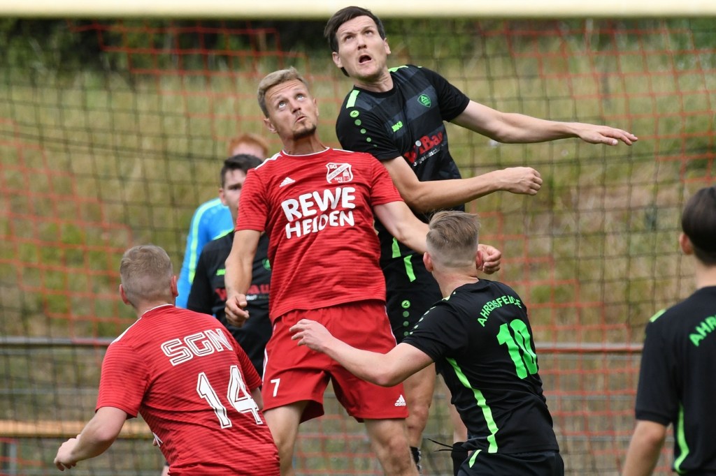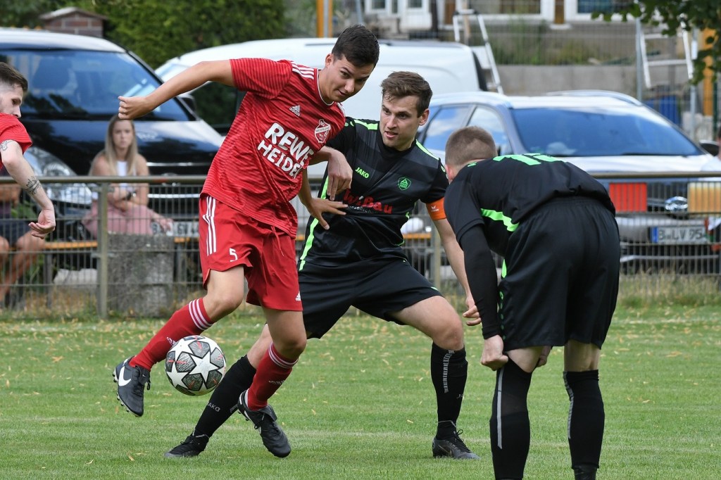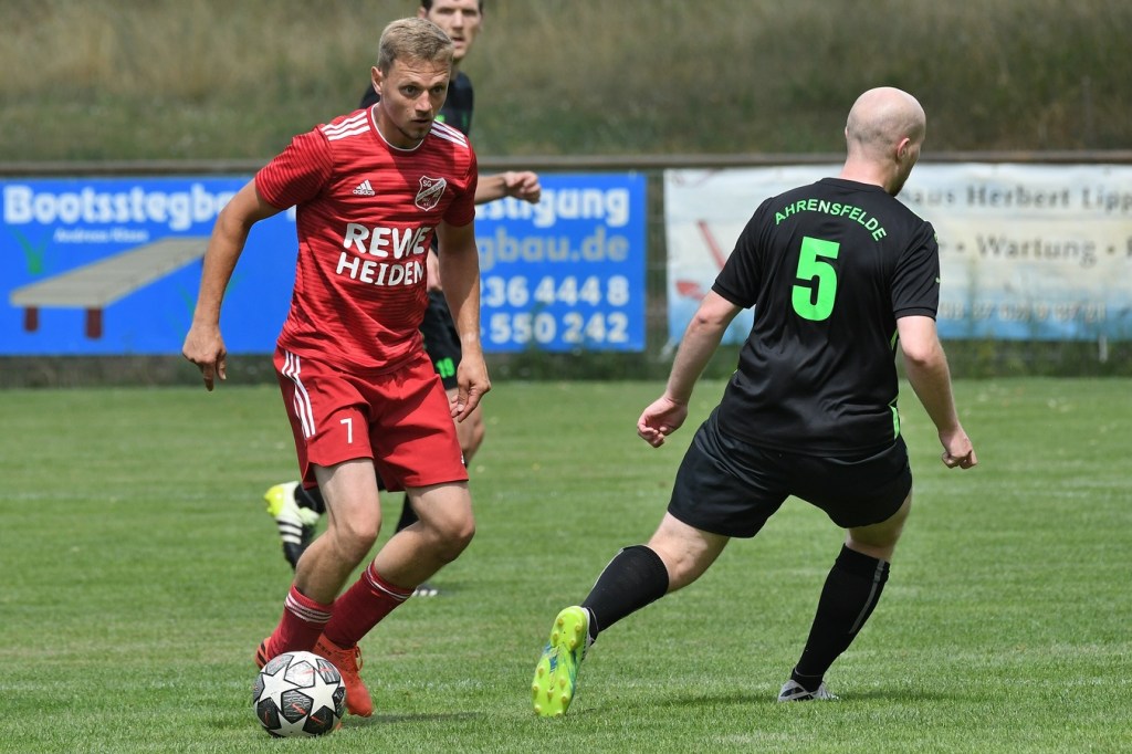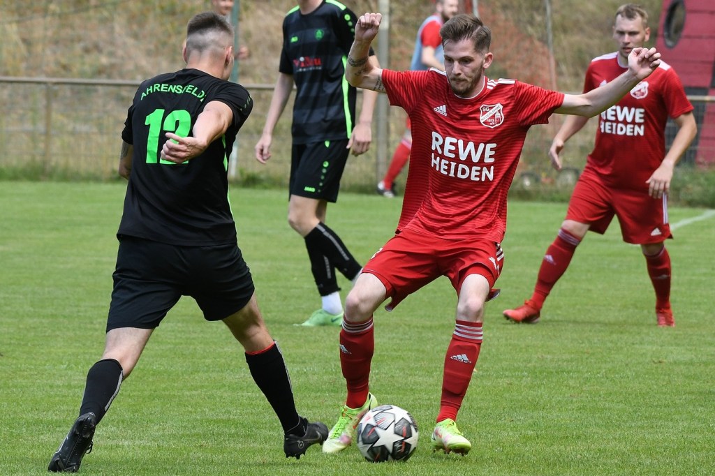 Personaltechnisch konnten beide Trainer nicht aus dem Vollen schöpfen, bei den Gästen fehlten sogar elf Aktive. „Es waren schon einige wichtige Stammkräfte nicht dabei“, sagte Ahrensfeldes Trainer Daniel Lüß und zeigte sich trotzdem mit dem Auftritt seiner Jungs sehr zufrieden. Besonders die Anfangsminuten zeigte Ahrensfelde Spiellaune und bewegte sich mit der Heimtruppe auf Augenhöhe. Es war intensiv, aber auch hektisch. Florian Redder setzte als Erster die Gästeflagge mit einer Möglichkeit in der 3. Minute, doch sein Schuss verunglückte aus guter Position dermaßen, dass aus diesem schlussendlich nur ein Einwurf für die Heimtruppe auf die Rechnung kam. Niederlehme brauchte etwas länger für die erste Torgefahr, welche Niklas Hentschel mit einem Geschoss aus der zweiten Reihe für sich verbuchte (8.). In der Folge wurde das Mittel der Abschlüsse aus dem Rückraum so ein wenig das Probateste. Nach gut zehn Minuten übernahm das Landesklassenteam zusehends die Spielkontrolle, drängte Grün-Weiss immer mehr in deren Hälfte und kam auch zu guten Möglichkeiten. Die größte Chance in dieser Phase hatte „k.A.“ in der 15. Minute, als nach einer Ecke die Abwehr von Gäste-Keeper Patrick Hilliger nicht sehr sattelfest wirkte und der Ball „k.A.“ direkt vor die Füße sprang. Mit allen Freiheiten ausgestattet, schaufelte er die Kugel Richtung Tor, aber nicht platziert genug, sodass Marcel Riemer den Ball auf der Torlinie stehend per Kopf aus der Gefahrenzone bugsieren konnte. Die SG drängelte und hatte genug Möglichkeiten, das Zählwerk auf mindestens 3:0 zu stellen. „Das ist unser Problem, die schlechte Chancenverwertung. In der vergangenen Saison waren wir lange im Abstiegskampf, das war auch eine der Ursachen dafür“, hatte Heim-Trainer Stephan Rosenberg im Nachgespräch den genannten Umstand moniert, ansonsten aber eine starke Halbzeit seiner Jungs gesehen. Ahrensfelde blieb nicht chancenlos, hatte in einer Situation aber Pech, dass Andrew Neumann sich von der rechten Seite kommend vor der Strafraumgrenze irgendwie versuchte eine Schussposition für den rechten Fuß zu finden, dies ihm aber nicht gelang (18.). Die Druckphase der Hausherren mit den vielen guten Möglichkeiten überstand die Brandenburgliga-Reserve schadlos und kam nach einer halben Stunde wieder mehr in die Entlastung. Justin Lauterbach hatte sich in der 38. Minute an der linken Eckfahne festgesetzt und den Ball, trotz einiger Versuche des „Abluchsens“, behauptet und straff geflankt. Marcel Riemer war im Anschluss am kurzen Pfosten mit der Stirn zur Stelle und verfehlte den Kasten letztendlich nur knapp.