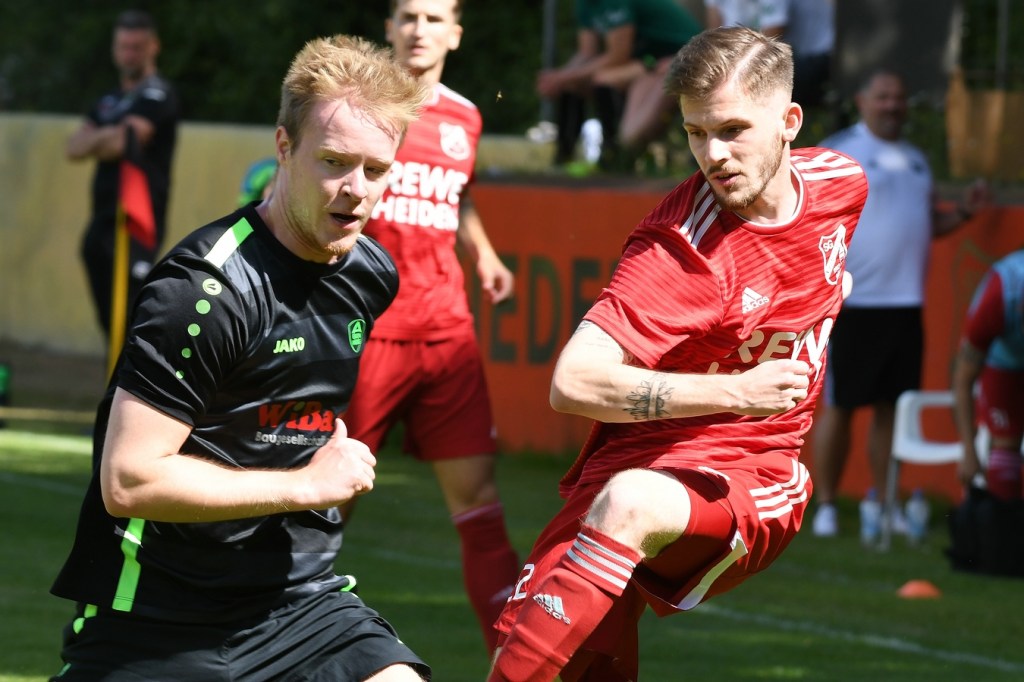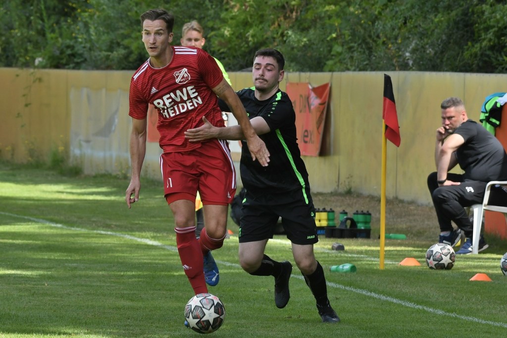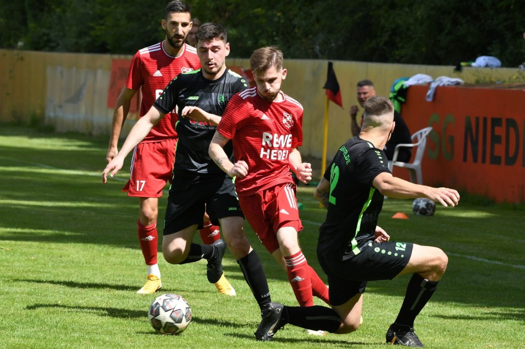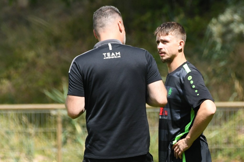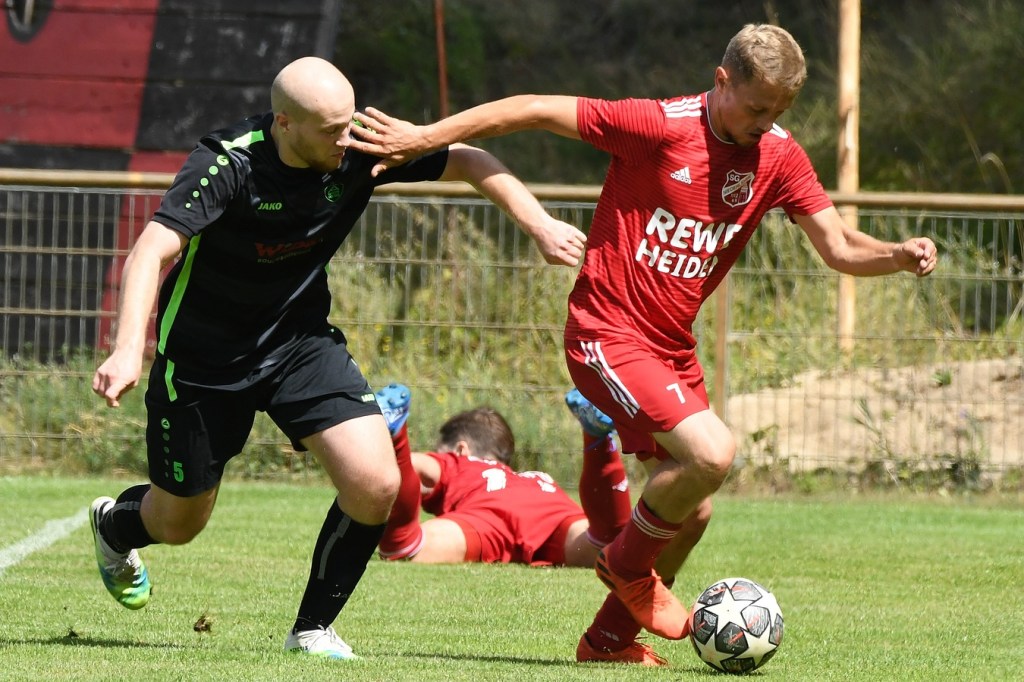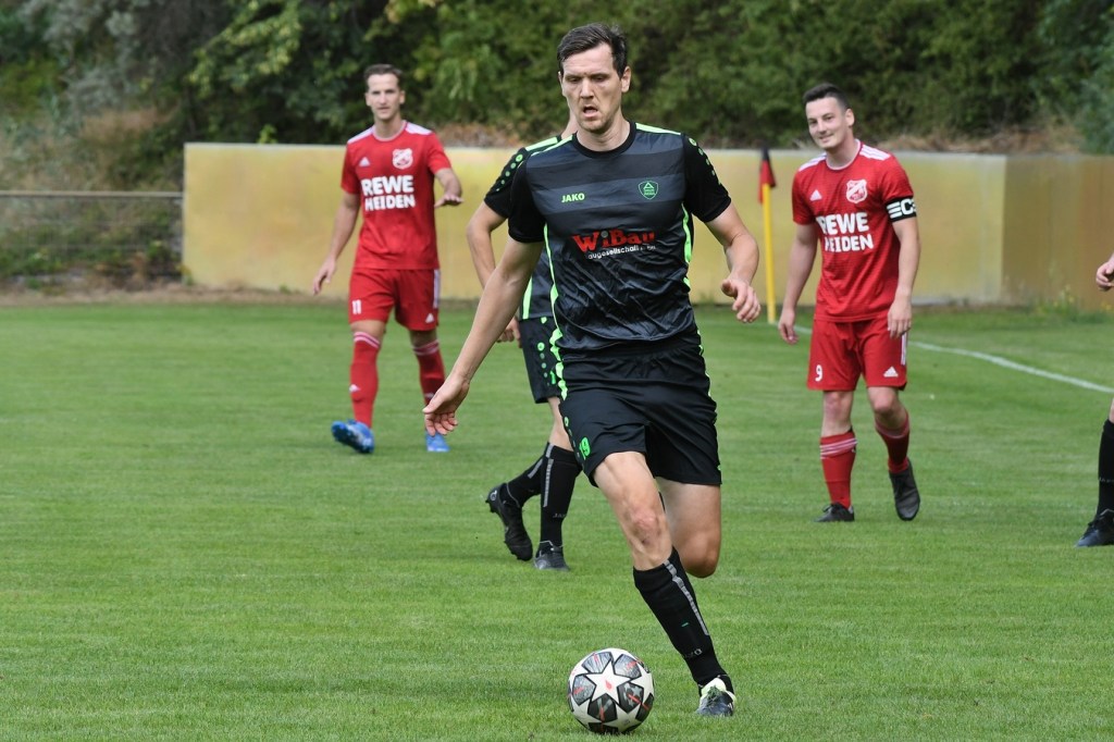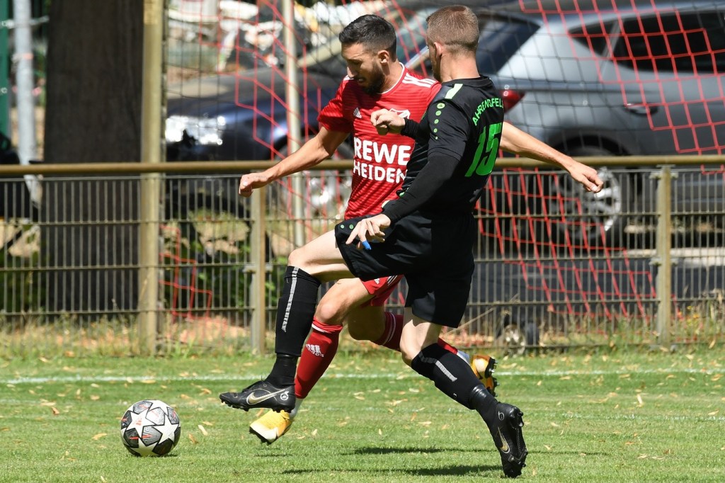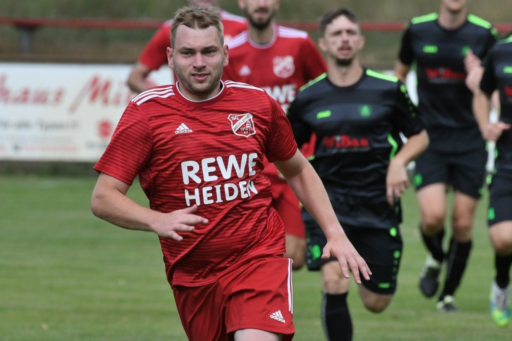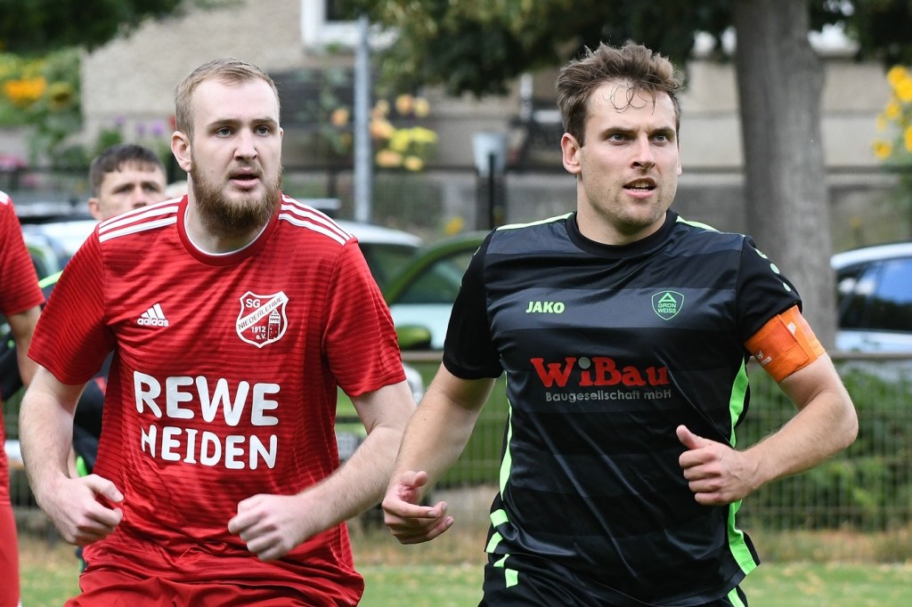Personaltechnisch konnten beide Trainer nicht aus dem Vollen schöpfen, bei den Gästen fehlten sogar elf Aktive. „Es waren schon einige wichtige Stammkräfte nicht dabei“, sagte Ahrensfeldes Trainer Daniel Lüß und zeigte sich trotzdem mit dem Auftritt seiner Jungs sehr zufrieden. Besonders die Anfangsminuten zeigte Ahrensfelde Spiellaune und bewegte sich mit der Heimtruppe auf Augenhöhe. Es war intensiv, aber auch hektisch. Florian Redder setzte als Erster die Gästeflagge mit einer Möglichkeit in der 3. Minute, doch sein Schuss verunglückte aus guter Position dermaßen, dass aus diesem schlussendlich nur ein Einwurf für die Heimtruppe auf die Rechnung kam. Niederlehme brauchte etwas länger für die erste Torgefahr, welche Niklas Hentschel mit einem Geschoss aus der zweiten Reihe für sich verbuchte (8.). In der Folge wurde das Mittel der Abschlüsse aus dem Rückraum so ein wenig das Probateste. Nach gut zehn Minuten übernahm das Landesklassenteam zusehends die Spielkontrolle, drängte Grün-Weiss immer mehr in deren Hälfte und kam auch zu guten Möglichkeiten. Die größte Chance in dieser Phase hatte „k.A.“ in der 15. Minute, als nach einer Ecke die Abwehr von Gäste-Keeper Patrick Hilliger nicht sehr sattelfest wirkte und der Ball „k.A.“ direkt vor die Füße sprang. Mit allen Freiheiten ausgestattet, schaufelte er die Kugel Richtung Tor, aber nicht platziert genug, sodass Marcel Riemer den Ball auf der Torlinie stehend per Kopf aus der Gefahrenzone bugsieren konnte. Die SG drängelte und hatte genug Möglichkeiten, das Zählwerk auf mindestens 3:0 zu stellen. „Das ist unser Problem, die schlechte Chancenverwertung. In der vergangenen Saison waren wir lange im Abstiegskampf, das war auch eine der Ursachen dafür“, hatte Heim-Trainer Stephan Rosenberg im Nachgespräch den genannten Umstand moniert, ansonsten aber eine starke Halbzeit seiner Jungs gesehen. Ahrensfelde blieb nicht chancenlos, hatte in einer Situation aber Pech, dass Andrew Neumann sich von der rechten Seite kommend vor der Strafraumgrenze irgendwie versuchte eine Schussposition für den rechten Fuß zu finden, dies ihm aber nicht gelang (18.). Die Druckphase der Hausherren mit den vielen guten Möglichkeiten überstand die Brandenburgliga-Reserve schadlos und kam nach einer halben Stunde wieder mehr in die Entlastung. Justin Lauterbach hatte sich in der 38. Minute an der linken Eckfahne festgesetzt und den Ball, trotz einiger Versuche des „Abluchsens“, behauptet und straff geflankt. Marcel Riemer war im Anschluss am kurzen Pfosten mit der Stirn zur Stelle und verfehlte den Kasten letztendlich nur knapp.