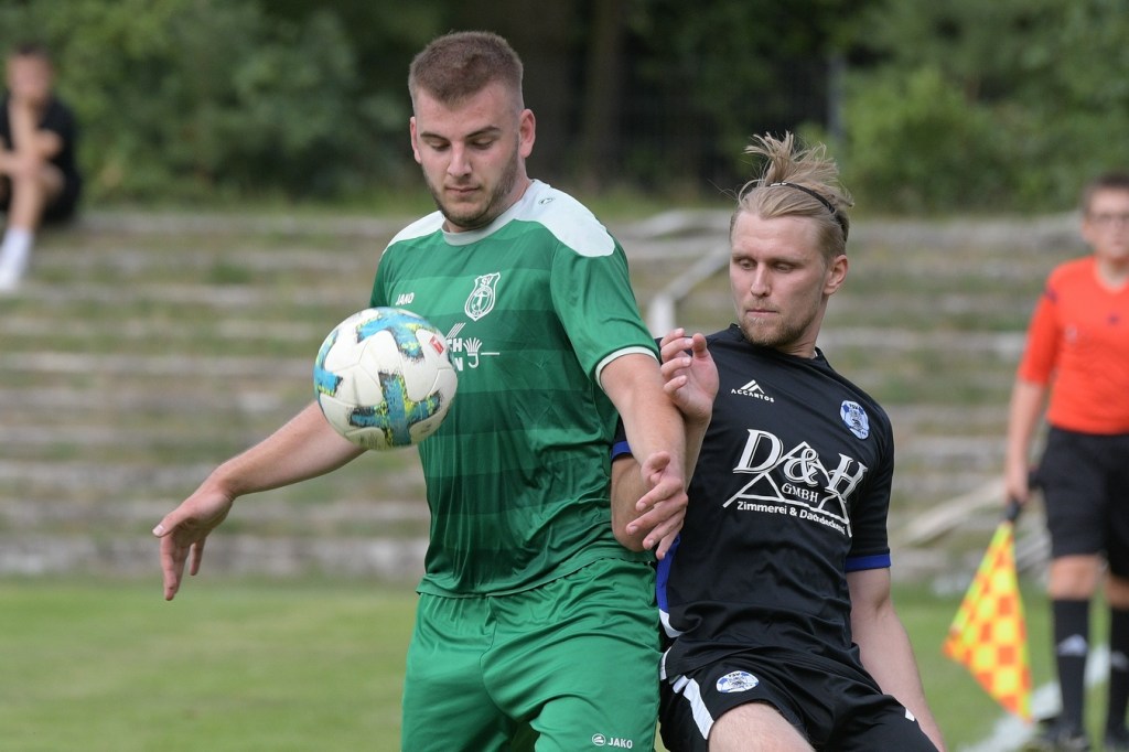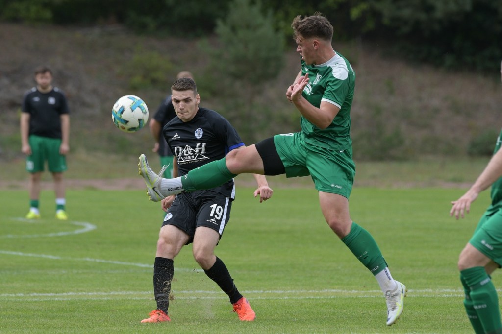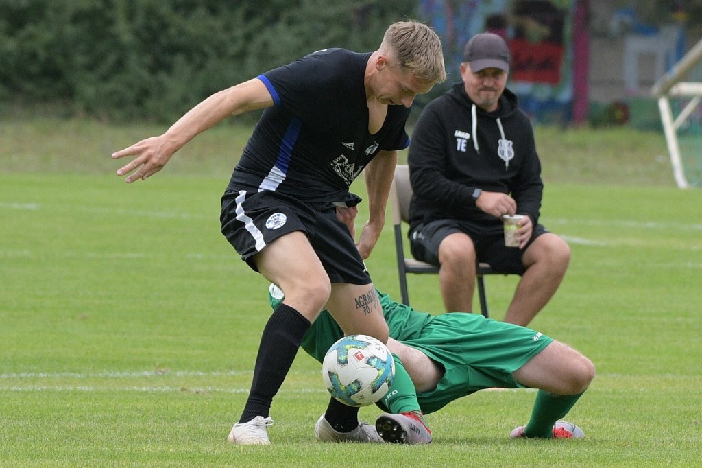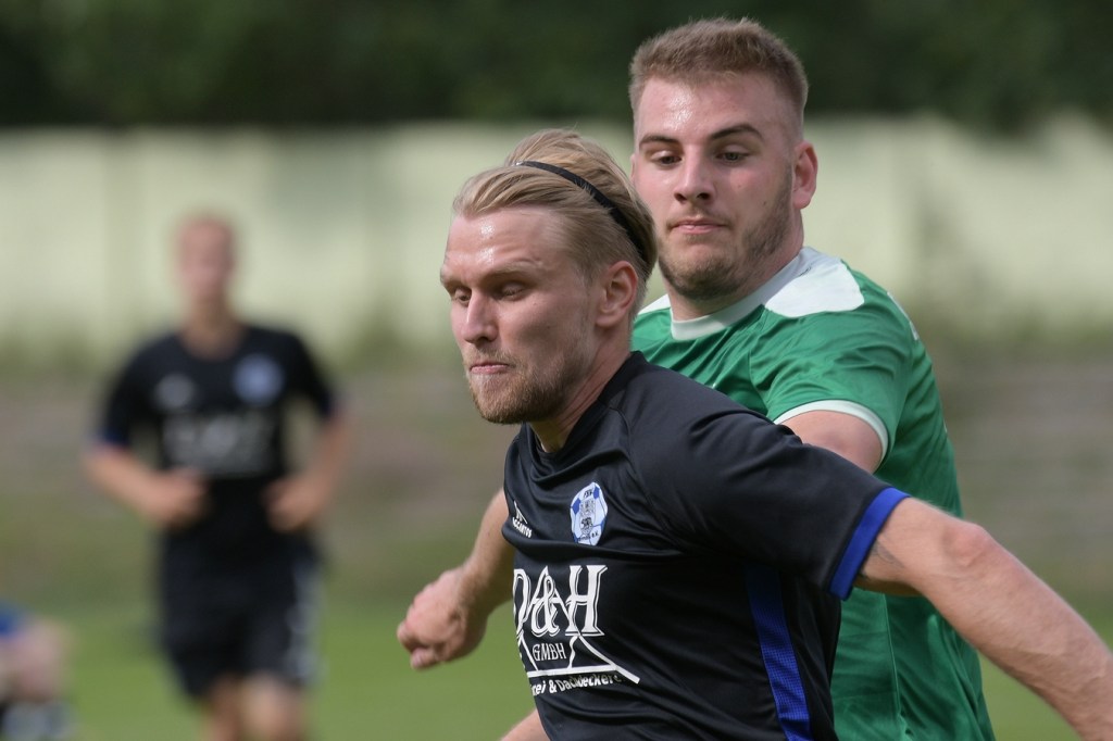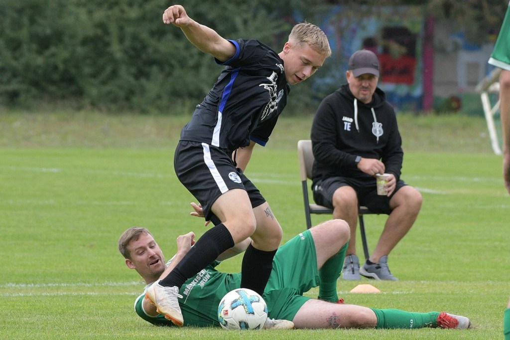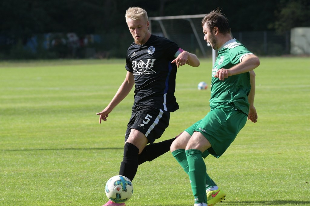 In dieser genannten Anfangsphase zeigte sich die Heimtruppe extrem nervös, verstolperte die eigenen Angriffsbemühungen, präsentierte sich im Abwehrverhalten recht fehlerhaft und musste in der 5. Minute das Spielgerät zum ersten Mal aus dem eigenen Netz holen. Romano Fieting bekam den Ball sauber aufgelegt, zog kurz hinter der linken Strafraumgrenze ab und ließ mit seinem strammen Geschoss Heimkeeper Paul Sternbeck keine Chance. Keine zwei Minuten später kam auch die Spielgemeinschaft zum ersten Abschluss, den Dennis Sommer nach einer Flanke von der linken Seite und Kopfballverlängerung dann aus spitzem Winkel rechts am Tor vorbei jagte. Die frühe Führung spielte der Landesliga-Reserve natürlich scharf in die Karten. In der Folge brannte es einige Male im Biesenthal/Marienwerder-Strafraum lichterloh. Zu nennen ist die Doppelchance von Piet Dübel, der seine Schuss-Möglichkeit verstolperte und Jan Markhoff, welcher an Sternbeck scheiterte (11.). Aber auch die beiden Chancen durch Anton Ollesch, dessen direkt getretener Freistoß wiederum von Sternbeck entschärft wurde und der Nachschuss von Cedric Himm, welcher schon recht kläglich weit neben dem Tor im Aus landete (15.), hätten eine positive Ergebniskorrektur erzeugen können. Besser machte es dann Max Schulz sechzig Sekunden später. Dieser zeigte sich hellwach als er in einen verhungernden SpG-Pass hinein sprintete, in Stürmermanier sich den Ball zurechtlegte und unhaltbar einnetzte. Von den Hausherren war in dieser Phase offensiv rein gar nichts zu sehen. Bernau offenbarte gerade im Spielverständnis, im Kampf gegen den Ball und in der Qualität einen so nicht zu erwartenden Ligaunterschied. Doch mit zunehmender Dauer verflog dieser positive Nimbus, was die Heimmannschaft immer mehr auf den Plan brachte. Nach gut einer halben Stunde war der Unterschied wettgemacht. Die Gefühlswelt des Bernauer Übungsleiters, inklusive einer Vorahnung, wurde von seinen Jungs hart auf die Probe gestellt. Seine Intuition wurde Realität als Jompe Lischewski aus neunzehn Metern abzog und der Ball sehenswert im Gästekasten einschlug (37.). Bernau wackelte und schaffte es kaum noch in die Entlastung. Die Defensivabteilung fing auch an die Bälle aus der eigenen Hälfte im Sinne von Befreiungsschlägen herauszubolzen und konnte von Glück reden, dass Biesenthal/Marienwerder nur noch zu Halbchancen kam und der Treffer von Kevin Brömer wegen einer Abseitsstellung keine Anerkennung fand (40.).