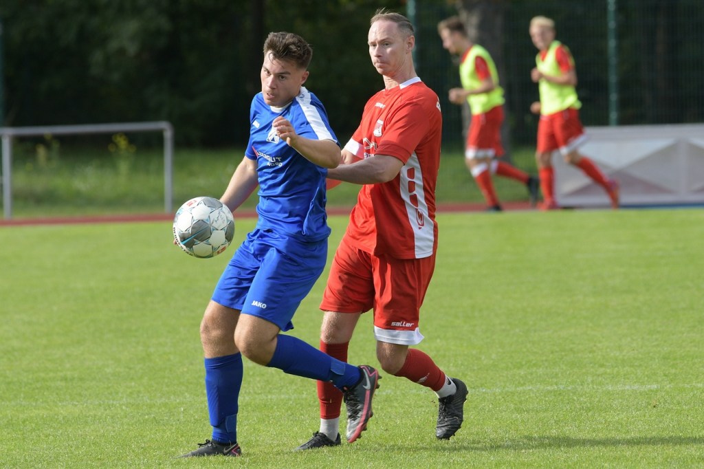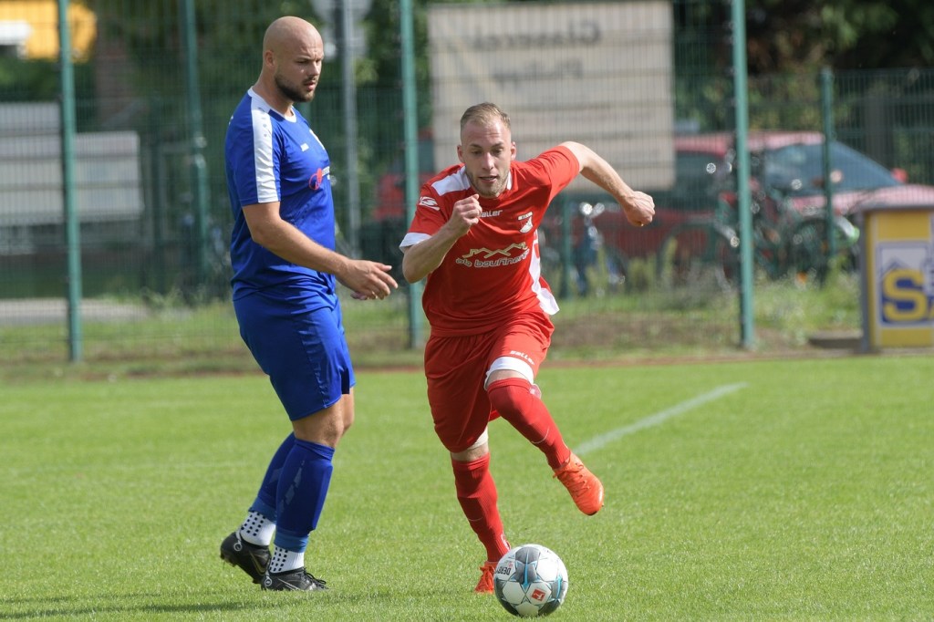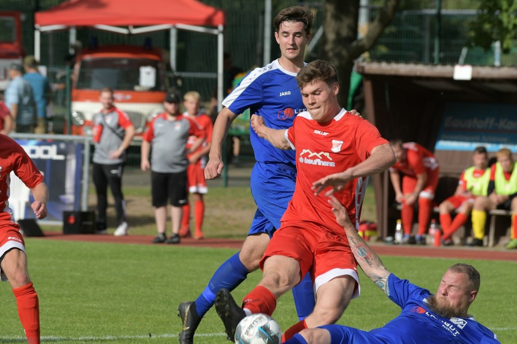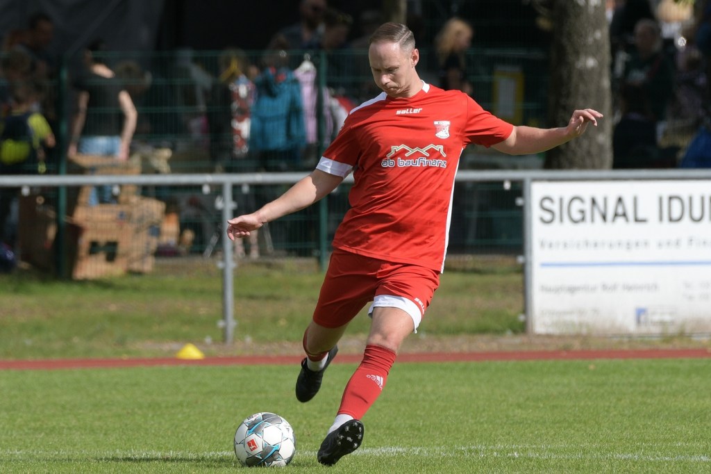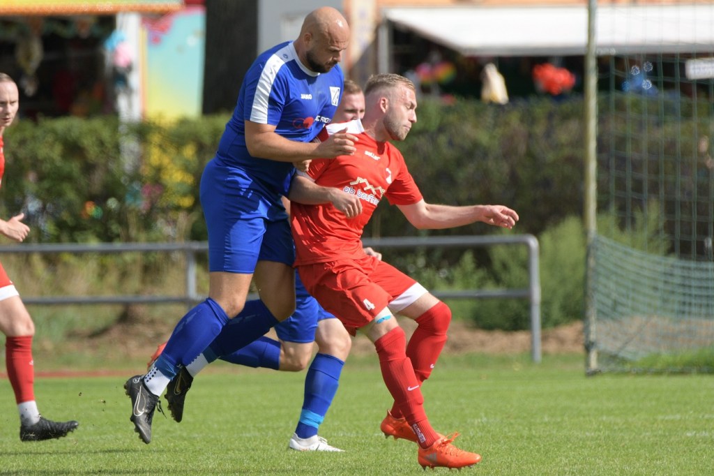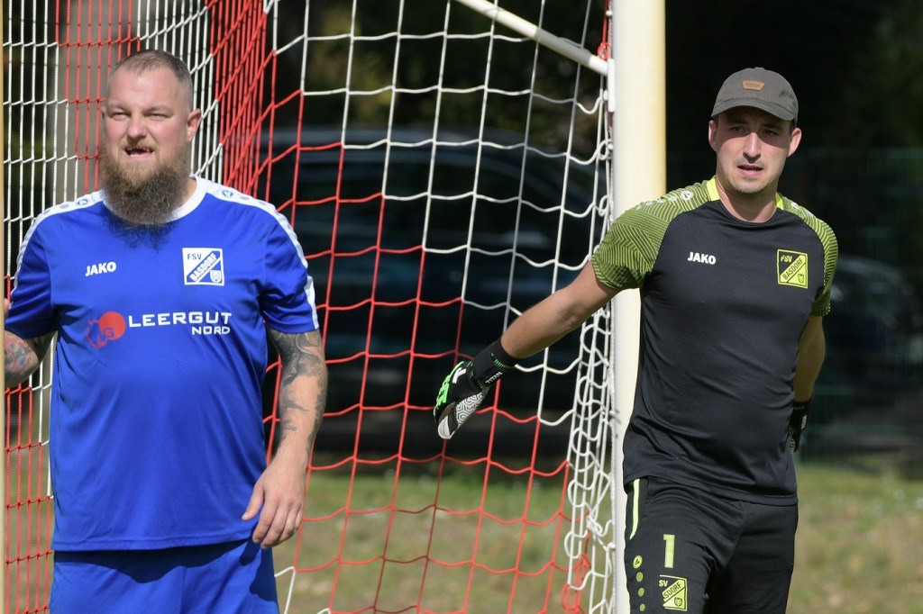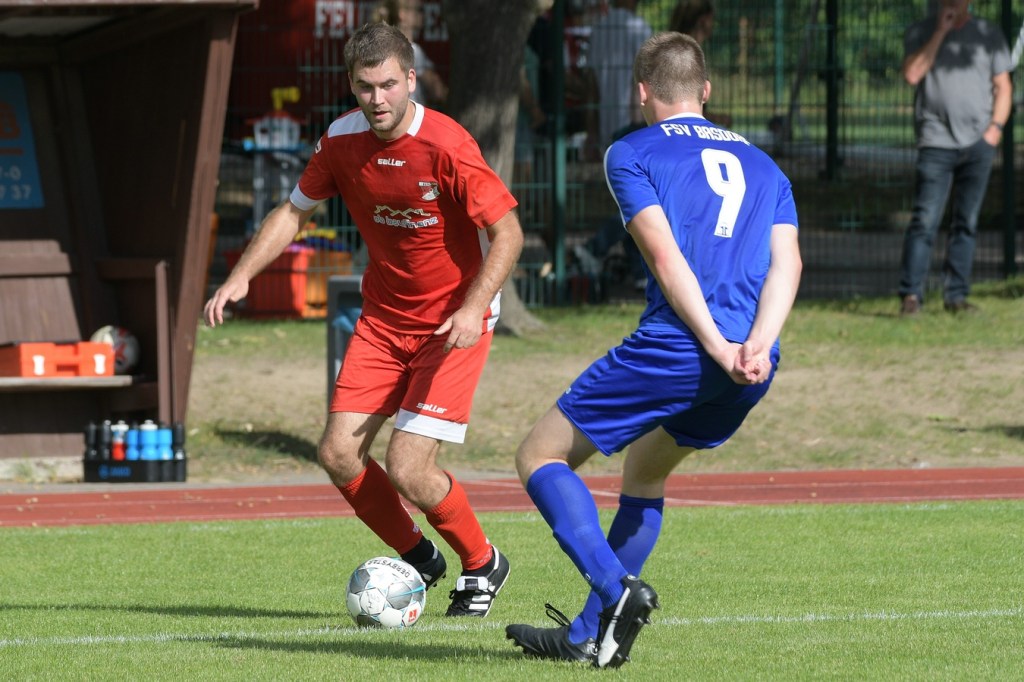 Heidefest in Schönow rund um die Sportanlage der BSV Rot-Weiß, der Rahmen für ein Niederbarnim-Derby war damit gesetzt. Doch so richtige Festtagsstimmung schwappte nicht in die Zuschauerreihen. Allein schon der Blick in die Mannschaftsaufstellung der Gäste ließ nicht Gutes erahnen. Ganze zwölf Aktive wurden dort aufgeführt, was einem schon das Wort „Rumpfelf“ in die Unterhaltung trieb. Gäste-Co-Trainer Hartmut Kregelin, der seinen Chef Dietmar Kallweit urlaubsbedingt vertrat, hatte dafür die passende Erklärung im Vorgespräch parat. „Wir haben sechs Bundespolizisten in unseren Reihen, welche auch Stammspieler sind, die heute Dienst schieben müssen und uns deshalb schmerzlich fehlen. Zusätzlich kommen auch noch einige zusammen, die privat verhindert sind. Dann spielt heute auch noch unsere Zweite, auf die wir auch nicht zurückgreifen können. Damit müssen wir irgendwie klarkommen. Die Jungs sind aber motiviert, mal schauen was draus wird.“