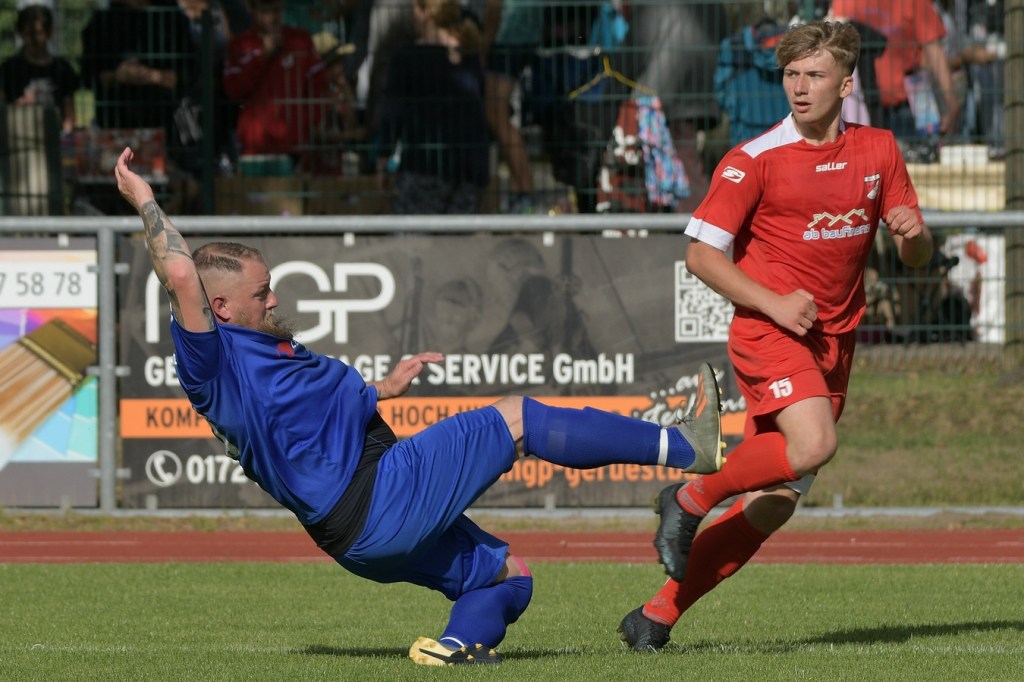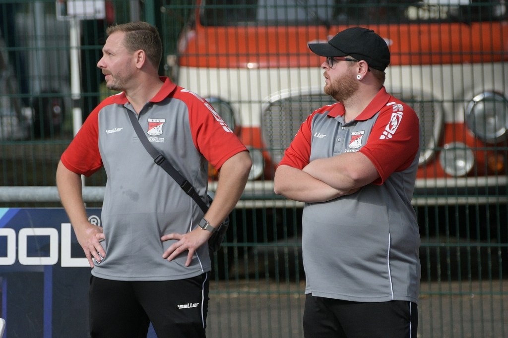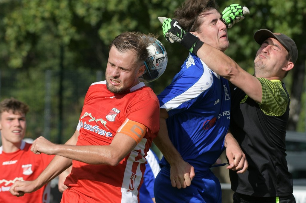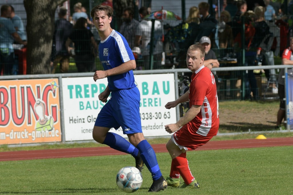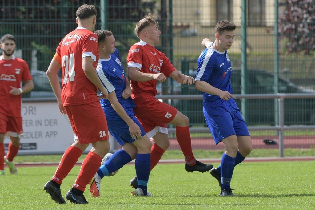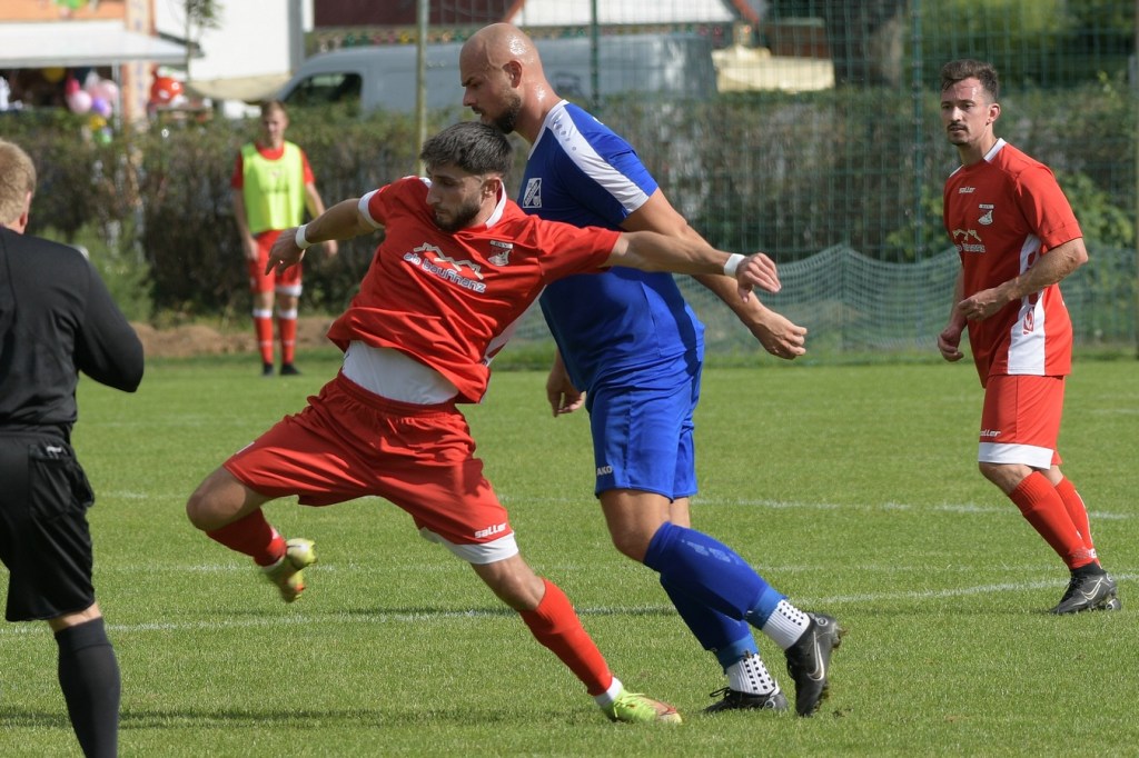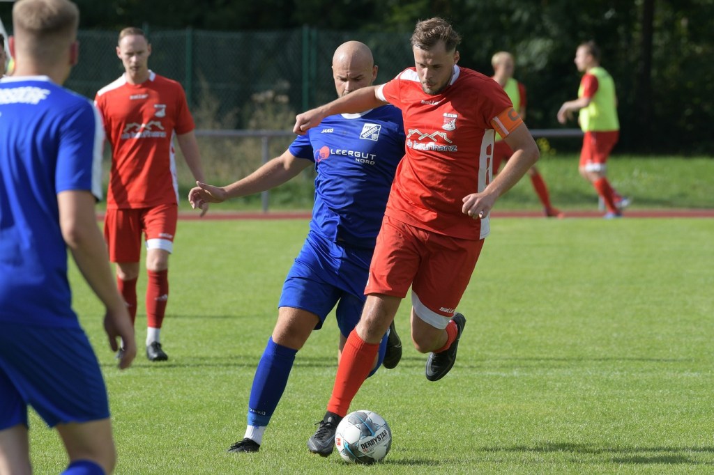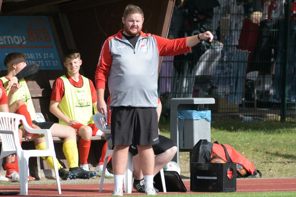 Heidefest in Schönow rund um die Sportanlage der BSV Rot-Weiß, der Rahmen für ein Niederbarnim-Derby war damit gesetzt. Doch so richtige Festtagsstimmung schwappte nicht in die Zuschauerreihen. Allein schon der Blick in die Mannschaftsaufstellung der Gäste ließ nicht Gutes erahnen. Ganze zwölf Aktive wurden dort aufgeführt, was einem schon das Wort „Rumpfelf“ in die Unterhaltung trieb. Gäste-Co-Trainer Hartmut Kregelin, der seinen Chef Dietmar Kallweit urlaubsbedingt vertrat, hatte dafür die passende Erklärung im Vorgespräch parat. „Wir haben sechs Bundespolizisten in unseren Reihen, welche auch Stammspieler sind, die heute Dienst schieben müssen und uns deshalb schmerzlich fehlen. Zusätzlich kommen auch noch einige zusammen, die privat verhindert sind. Dann spielt heute auch noch unsere Zweite, auf die wir auch nicht zurückgreifen können. Damit müssen wir irgendwie klarkommen. Die Jungs sind aber motiviert, mal schauen was draus wird.“