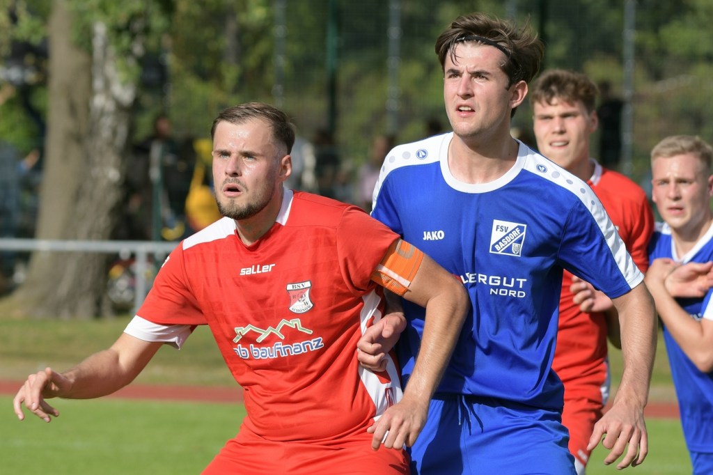 Im Pausengespräch, kurz vor dem Wiederanpfiff, hatte FSV-Keeper Kreiger einen recht guten Auftritt seiner Truppe gesehen, aber auch angemahnt, dass im Endeffekt die Kondition in den eigenen Reihen für den Ausgang der Partie maßgeblich sein könnte. Doch von dieser Schwäche war erst einmal nichts zu sehen. Obwohl man schon anmerken musste, dass Heimkepper Enrico Müller, bis auf ein Wegfangen eines langen Balles, im zweiten Durchgang kaum eine Ballberührung vornehmen durfte. Der Aufwand der Hausherren war immens. Es wurde vieles probiert. Chip-Bälle als Anspiel, Durchstecker, Ballstafetten vor dem Gästestrafraum, Schüsse aus der zweiten Reihe. All das brachte im Endeffekt kaum Erwähnenswertes in den Ticker. Kreiger, mit Sonderlob vom Trainer, konnte sich weiterhin auszeichnen. Dan Steinhagen war der auffälligste Basdorfer Fels in der Brandung. Der eingewechselte Schönower Youngster Casper Finn Rehder machte dann mit dem 3:0 die Angelegenheit standesgemäß. Die flache Eingabe von der linken Seite, platziert von Emurla Musa, war so gut getimt, dass Rehder im Fünfer nur noch den Fuß hinhalten brauchte (70.). Die Gäste waren nun zumindest konditionell mit durch. Doch die Basdorfer Leidenschaft und ganz nebenbei die erwähnte Abschlussschwäche der Hausherren, mit noch zwei absoluten Riesenmöglichkeiten, welche wirklich kläglich im Ausspielen liegen gelassen wurden, verhinderten ein noch klareres, den Chancen nach verdientes und höheres Endergebnis.