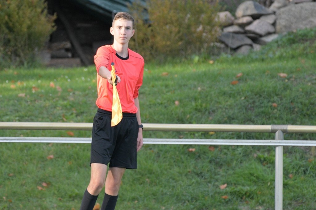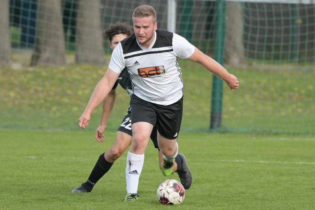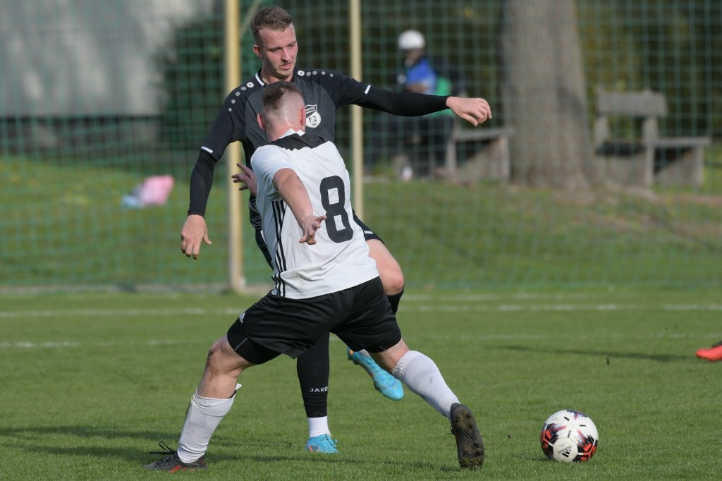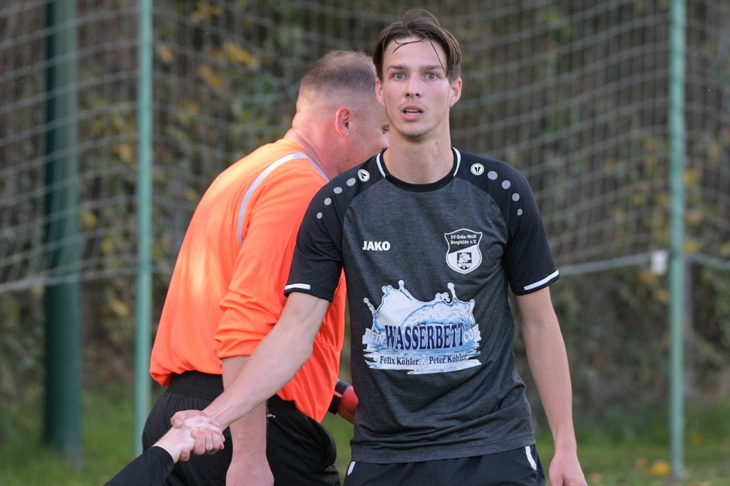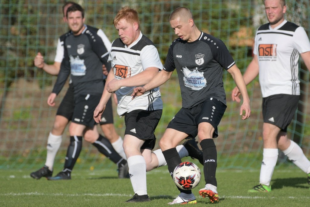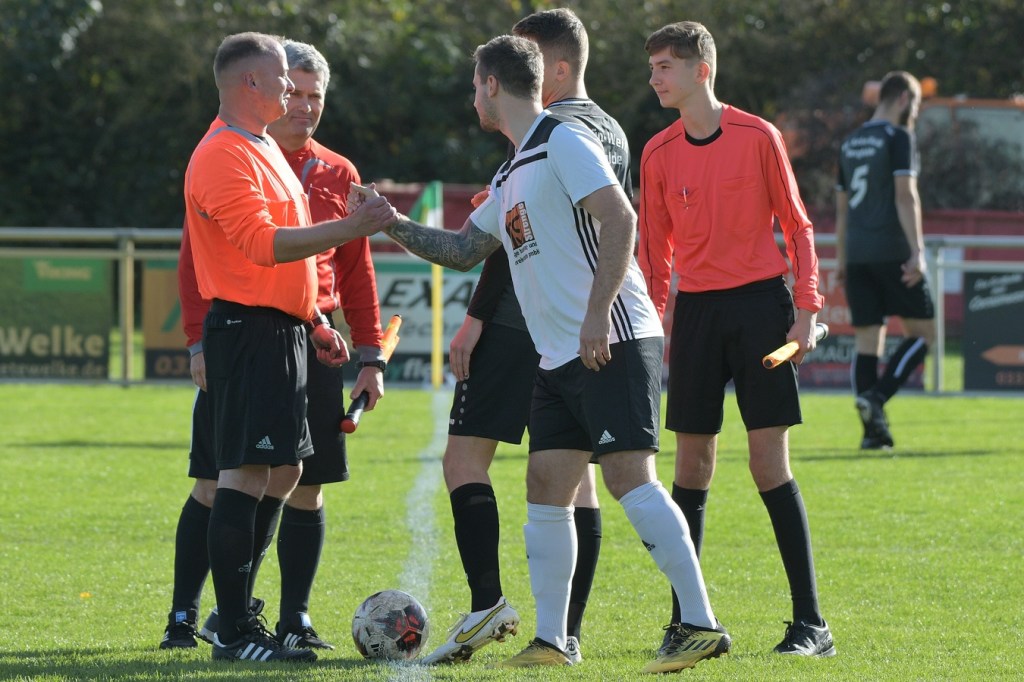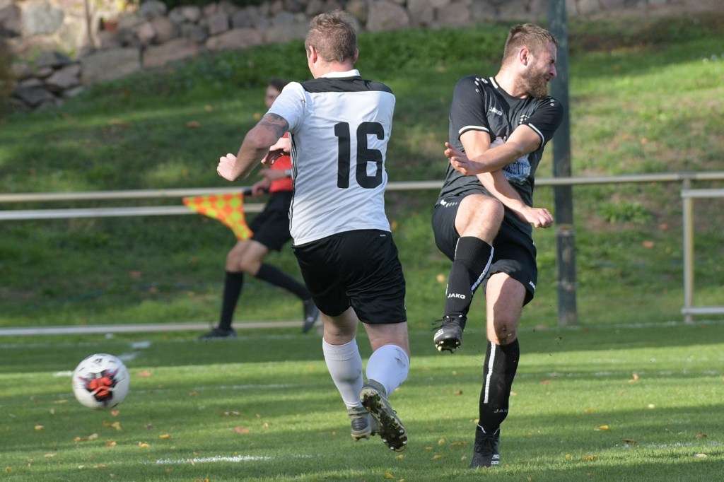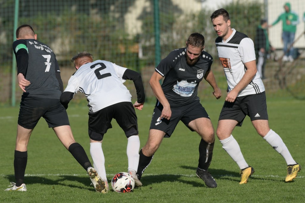 Wenn man der Qualität der Anfangsphase ein Prädikat verabreichen wollte, wäre man sicherlich in der unteren Schublade fündig geworden. Bei bestem Herbstwetter und einem Grün, welches zu einem Kampfspiel einlud, begegneten sich zwei Teams, die nur schwer in die Partie kamen. Vor allem den Gästen gelang so gut wie gar nichts. Für die SpG hätte dieser Umstand sicherlich förderlich sein können, aber auch denen fehlten die klaren Ideen und eine zielstrebige Umsetzung. So bestimmten sporadisch angesetzte „Fifty-Fifty-Chancen“ die Szenerie. Ein Einwurf, welcher im Anschluss in eine Flanke umgewandelt wurde, bereitete das 1:0 vor. Der Ball wurde abgewehrt und landete dann bei Johannes Bester, der sofort abzog und die Kugel abgefälscht im Gäste-Kasten unterbrachte (9.). Die Tafel war nun bereitet, um der Partie den endgültigen Anschub zu geben. Bergfelde nahm diese Aufforderung an, arbeitete sich immer mehr ins Spiel und kam jetzt auch verstärkt zu Möglichkeiten. Erst war es ein Freistoß, der zwar platziert, aber ohne Schmackes in den Armen von Torwart-Oldie Olaf Pospieszny landete (12.), dann eine Flanke mit anschließendem Kopfball durch den baumlangen Sören Paul, der ebenfalls keine große Gefahr ausstrahlte (15.). Für Lichterfelde/Finow organisierte Grün-Weiß-Keeper Florian Julius Radtke eine Möglichkeit, als er in der Spieleröffnung zögerte und den heransprintenden Bester anschoss und Glück hatte, nicht zum zweiten Mal hinter sich greifen zu müssen (14.). Das Spiel beider Teams war schon sehr fehlerbehaftet. Diagonalbälle ohne Präzision, eroberte Bälle wurden postwendend zurückgegeben und Unkonzentriertheiten im Spielaufbau ließen die Begegnung verkrampft und zerfahren wirken. Auch Versuche aus der zweiten Reihe verpufften in den Fangzäunen hinter den Toren oder in den Armen der Torsteher. Trotzdem wurde es intensiver, weil Grün-Weiß gerade im Mittelfeld kämpferisch gut dagegenhielt. Ein Schuss aus der zweiten Reihe wurde in der 27. Minute für Olaf Pospieszny zum Problem. Dieser setzte kurz vor ihm auf, sodass er den Ball recht unglücklich prallen lassen musste. Niklas Kohl hatte spekuliert, gewann sein Laufduell und hatte den Nachschuss unhaltbar im Netz zum 1:1 untergebracht. Der Ausgleich beflügelte die Gäste. Ein ungeahndetes Foulspiel gegen die SpG eröffnete per flachem Anspiel Paul Becker eine hundertprozentige Chance. Doch versagtem ihm die Nerven, als er vollkommen frei den Ball neben das Tor setzte (31.). Der Treffer zum 1:2 durch Sören Paul brachte Lichterfelde/Finow noch mehr ins Wanken. Paul stieg bei einem Eckball am höchsten und nagelte das Spielgerät mit der Stirn ebenfalls unhaltbar in die Maschen (32.). Grün-Weiß blieb am Drücker und hatte noch einige Möglichkeiten, das eigene Zählwerk höher zu drehen. Bedanken konnte sich die Heimelf letztendlich bei ihrem Keeper, der zweimal überragend regierte und damit seine Kollegen weiterhin in der Partie hielt. Eine langer Diagonalball in den Gästestrafraum endete mit einem Fauxpas von Torwart Radtke. Er konnte die Kugel nicht kontrollieren, ließ sie fallen, versuchte mehrmals nachzufassen, musste aber schlussendlich hinterherschauen, wie das Spielgerät von Henning Peach über die Linie gedrückt wurde (38.). Die Heimelf hatte ausgeglichen und in den Schlussminuten bis zum Halbzeitpfiff die Druckphase der Gäste abgeschüttelt. In der 43. Minute dann ein großes Gestochere im Strafraum der Bergfelder, welches mit einem klaren Foulspiel an Tobias Köpenick endete. Schiedsrichter Tommy Jäkel zögerte keine Sekunde, um auf den ominösen Punkt zu zeigen. Frank Niemann übernahm die Verantwortung und stellte mit dem 3:2 die erhofften Verhältnisse wieder her (43.).