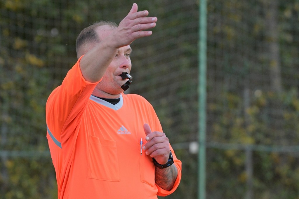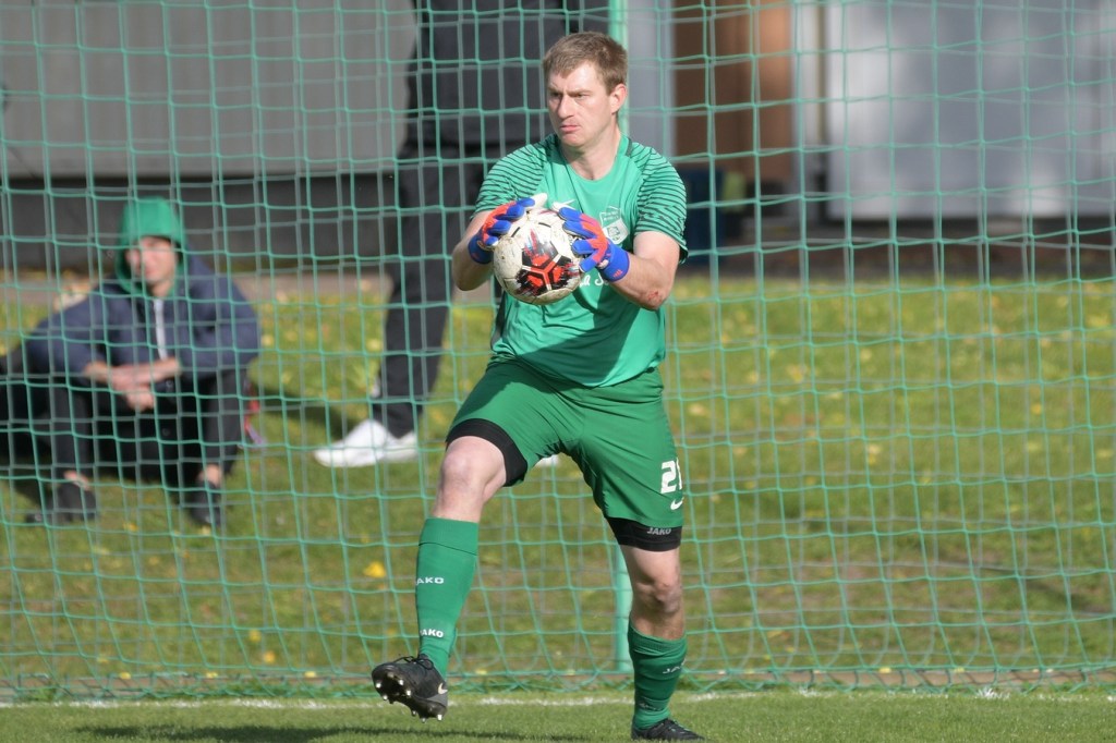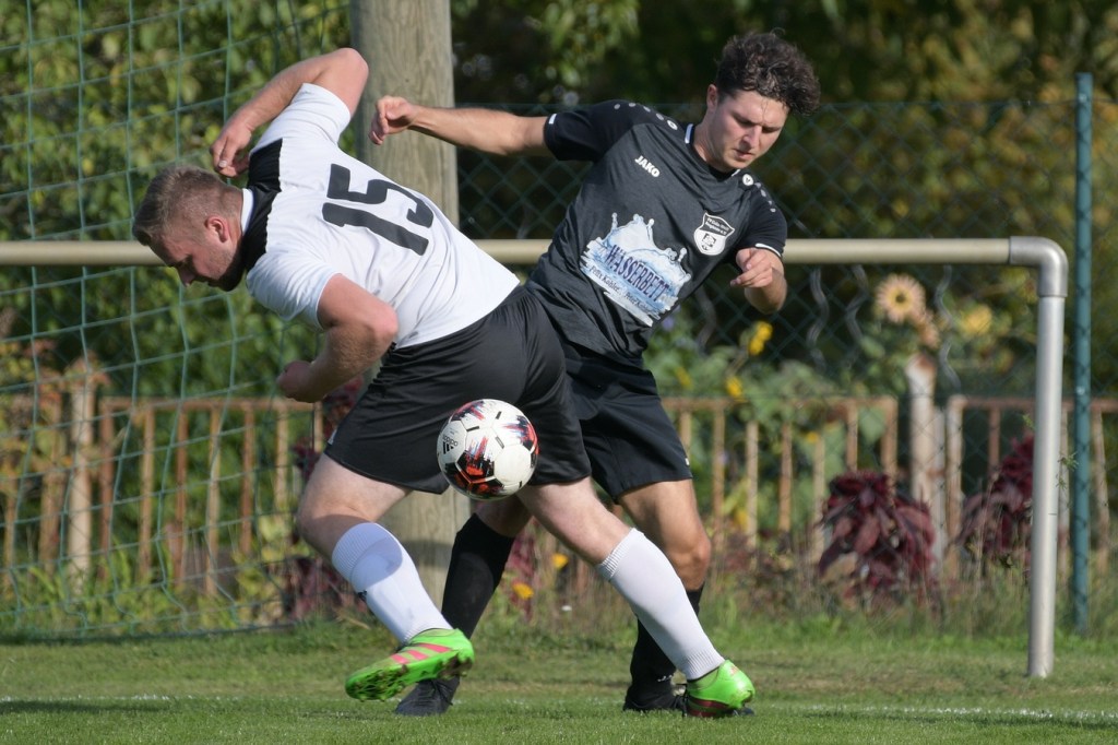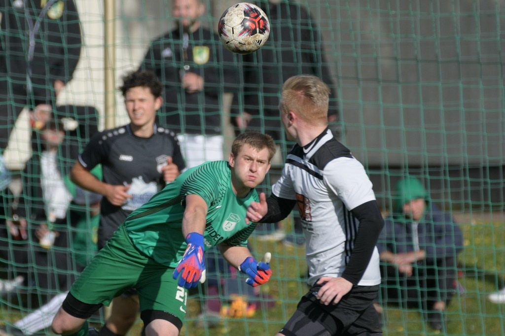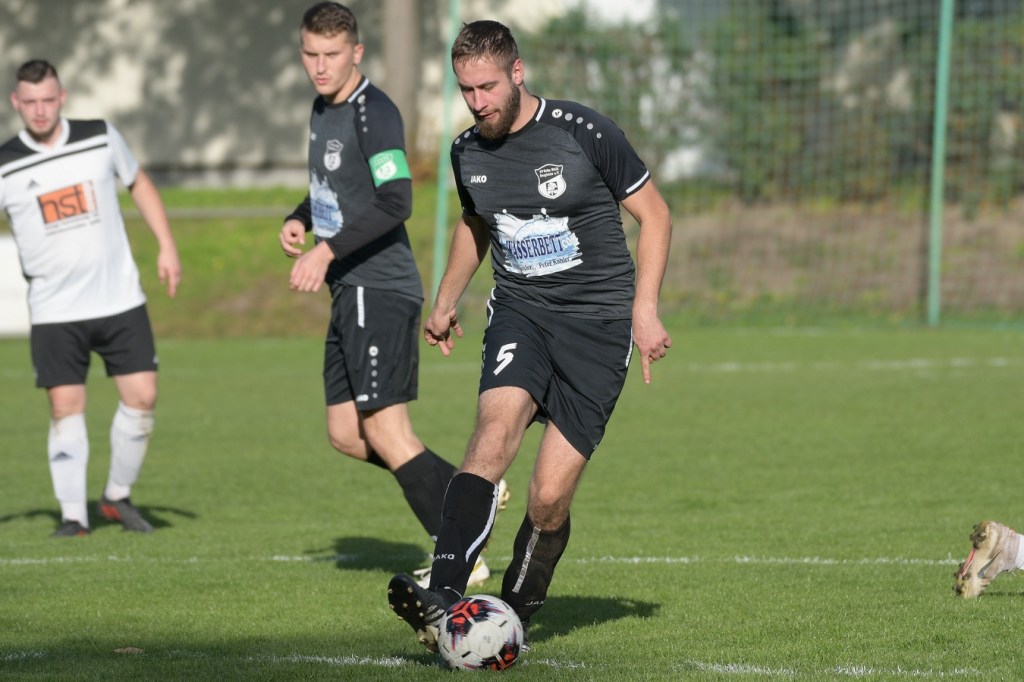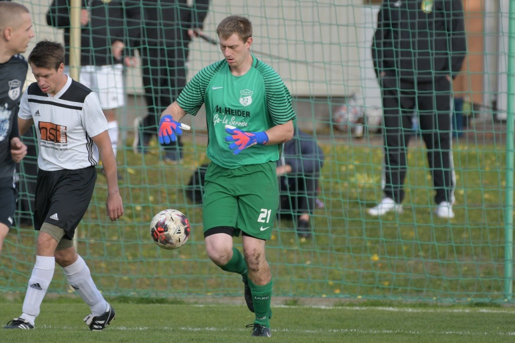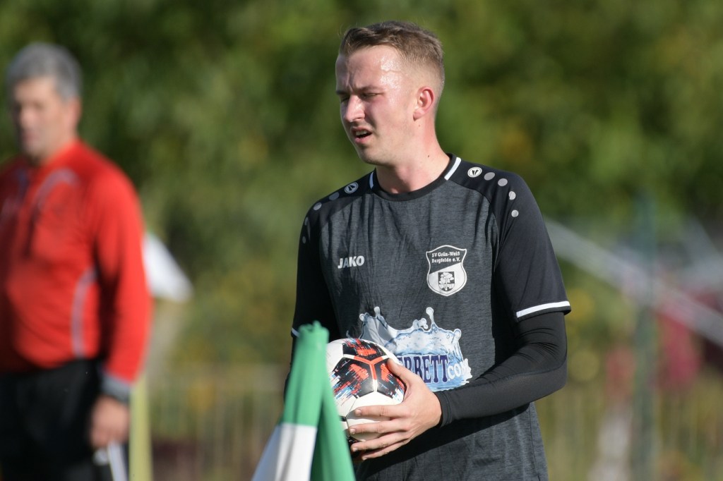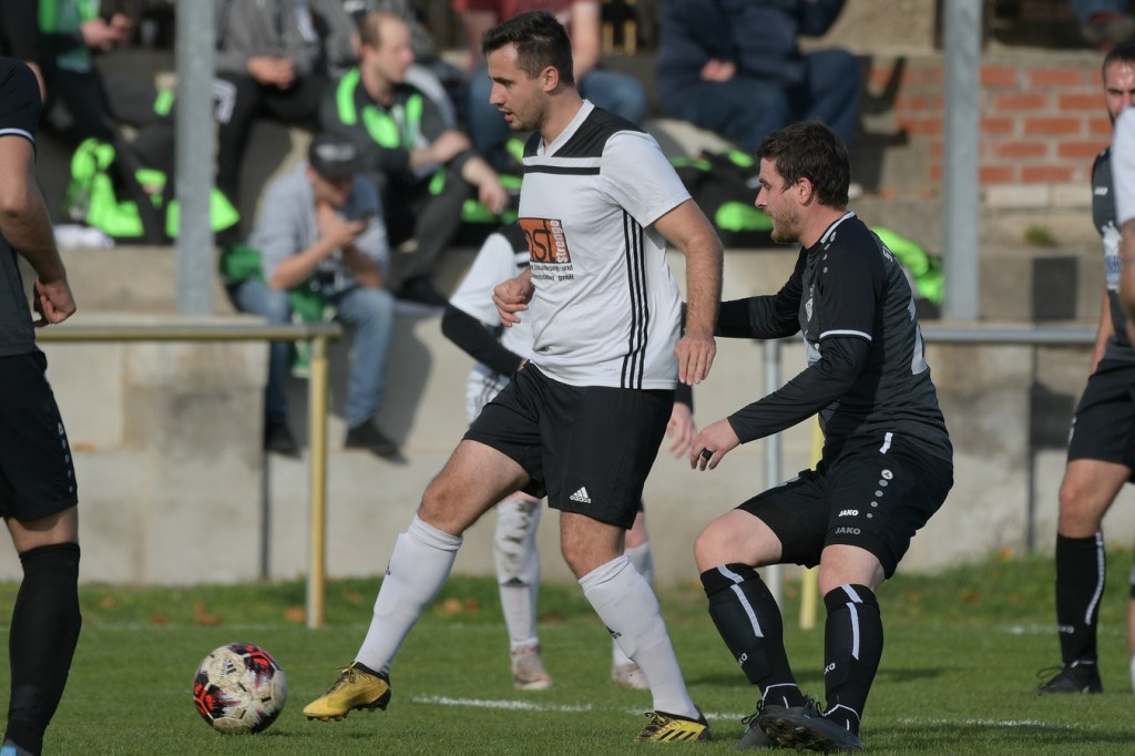 Wenn man der Qualität der Anfangsphase ein Prädikat verabreichen wollte, wäre man sicherlich in der unteren Schublade fündig geworden. Bei bestem Herbstwetter und einem Grün, welches zu einem Kampfspiel einlud, begegneten sich zwei Teams, die nur schwer in die Partie kamen. Vor allem den Gästen gelang so gut wie gar nichts. Für die SpG hätte dieser Umstand sicherlich förderlich sein können, aber auch denen fehlten die klaren Ideen und eine zielstrebige Umsetzung. So bestimmten sporadisch angesetzte „Fifty-Fifty-Chancen“ die Szenerie. Ein Einwurf, welcher im Anschluss in eine Flanke umgewandelt wurde, bereitete das 1:0 vor. Der Ball wurde abgewehrt und landete dann bei Johannes Bester, der sofort abzog und die Kugel abgefälscht im Gäste-Kasten unterbrachte (9.). Die Tafel war nun bereitet, um der Partie den endgültigen Anschub zu geben. Bergfelde nahm diese Aufforderung an, arbeitete sich immer mehr ins Spiel und kam jetzt auch verstärkt zu Möglichkeiten. Erst war es ein Freistoß, der zwar platziert, aber ohne Schmackes in den Armen von Torwart-Oldie Olaf Pospieszny landete (12.), dann eine Flanke mit anschließendem Kopfball durch den baumlangen Sören Paul, der ebenfalls keine große Gefahr ausstrahlte (15.). Für Lichterfelde/Finow organisierte Grün-Weiß-Keeper Florian Julius Radtke eine Möglichkeit, als er in der Spieleröffnung zögerte und den heransprintenden Bester anschoss und Glück hatte, nicht zum zweiten Mal hinter sich greifen zu müssen (14.). Das Spiel beider Teams war schon sehr fehlerbehaftet. Diagonalbälle ohne Präzision, eroberte Bälle wurden postwendend zurückgegeben und Unkonzentriertheiten im Spielaufbau ließen die Begegnung verkrampft und zerfahren wirken. Auch Versuche aus der zweiten Reihe verpufften in den Fangzäunen hinter den Toren oder in den Armen der Torsteher. Trotzdem wurde es intensiver, weil Grün-Weiß gerade im Mittelfeld kämpferisch gut dagegenhielt. Ein Schuss aus der zweiten Reihe wurde in der 27. Minute für Olaf Pospieszny zum Problem. Dieser setzte kurz vor ihm auf, sodass er den Ball recht unglücklich prallen lassen musste. Niklas Kohl hatte spekuliert, gewann sein Laufduell und hatte den Nachschuss unhaltbar im Netz zum 1:1 untergebracht. Der Ausgleich beflügelte die Gäste. Ein ungeahndetes Foulspiel gegen die SpG eröffnete per flachem Anspiel Paul Becker eine hundertprozentige Chance. Doch versagtem ihm die Nerven, als er vollkommen frei den Ball neben das Tor setzte (31.). Der Treffer zum 1:2 durch Sören Paul brachte Lichterfelde/Finow noch mehr ins Wanken. Paul stieg bei einem Eckball am höchsten und nagelte das Spielgerät mit der Stirn ebenfalls unhaltbar in die Maschen (32.). Grün-Weiß blieb am Drücker und hatte noch einige Möglichkeiten, das eigene Zählwerk höher zu drehen. Bedanken konnte sich die Heimelf letztendlich bei ihrem Keeper, der zweimal überragend regierte und damit seine Kollegen weiterhin in der Partie hielt. Eine langer Diagonalball in den Gästestrafraum endete mit einem Fauxpas von Torwart Radtke. Er konnte die Kugel nicht kontrollieren, ließ sie fallen, versuchte mehrmals nachzufassen, musste aber schlussendlich hinterherschauen, wie das Spielgerät von Henning Peach über die Linie gedrückt wurde (38.). Die Heimelf hatte ausgeglichen und in den Schlussminuten bis zum Halbzeitpfiff die Druckphase der Gäste abgeschüttelt. In der 43. Minute dann ein großes Gestochere im Strafraum der Bergfelder, welches mit einem klaren Foulspiel an Tobias Köpenick endete. Schiedsrichter Tommy Jäkel zögerte keine Sekunde, um auf den ominösen Punkt zu zeigen. Frank Niemann übernahm die Verantwortung und stellte mit dem 3:2 die erhofften Verhältnisse wieder her (43.).