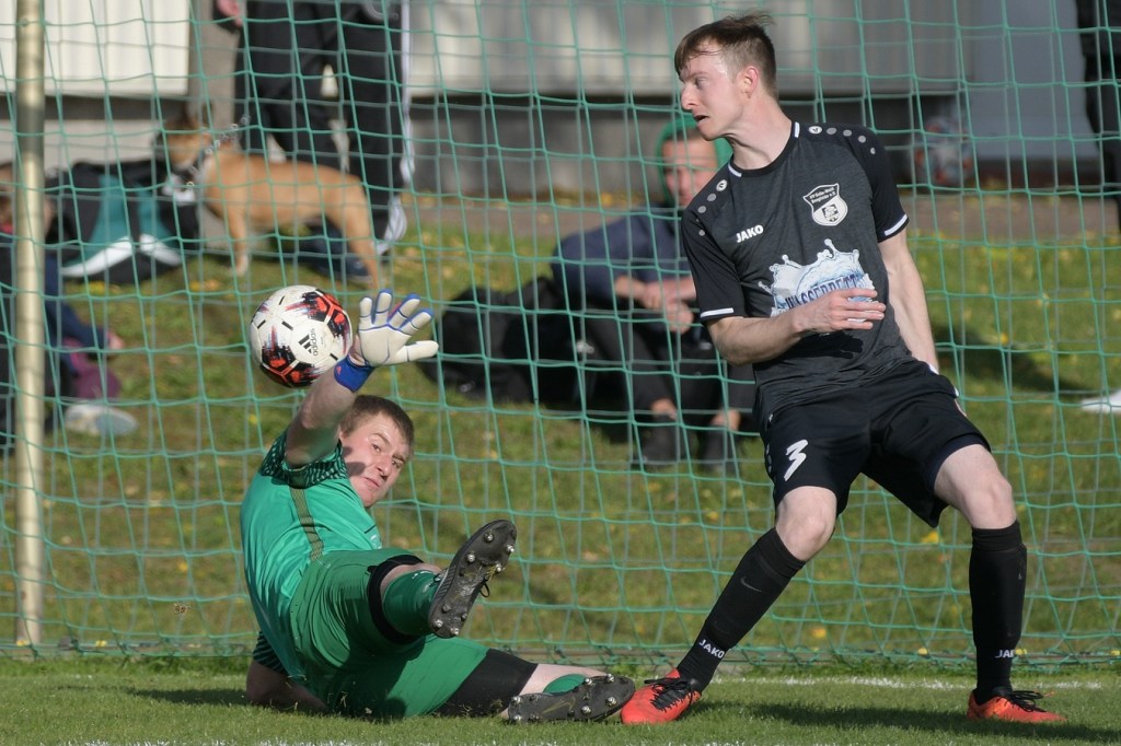Das „Gebastele“ im Spielaufbau und die genannten Mängel blieben auch nach dem Wiederanpfiff weiter im Gespräch. Nur Tommy Jäkel, als Regel-Hüter, bekam wesentlich mehr zu tun. Denn die rustikal angehauchte Zweikampfführung, auch hörbar durch lautes Töppen-Klappern, nahm merklich zu. So gab es in der Folge einige Versuche auf beiden Seiten dem Tor näherzukommen, was aber nur selten gelang. Der eingewechselte Julius Hucke bekam in der 59. Minute eine Doppelchance für die Heimelf aufgelegt. Erst scheiterte er an Radtke und im Nachschuss an sich selber, als er den Ball verstolperte. Die Partie schwankte hin und her. Beide Mannschaften versuchten vieles, die SpG suchte die Entscheidung und Bergfelde kratzte am Ausgleich. Lazaro Kesof nahm sich dann ein Herz und tankte sich durch die in dieser Situation sehr lethargische wirkende Gästeabwehr. Ein Lupfer aus dem Zweikampf heraus über den Keeper machte dann den Sack für den Aufsteiger endgültig zu. Das große Aufbäumen der Bergfelder blieb aus. In der 93. Minute wäre zumindest noch der Anschlusstreffer möglich gewesen. Doch Grün-Weiß Mannschaftskapitän Niklas Kohl verstolperte seine Riesenchance, welche im Endeffekt nichts am verlorenen Dreier geändert hätte.