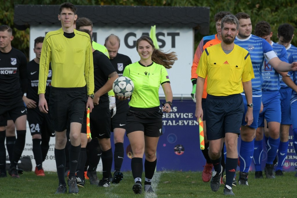 Schiedsrichterin: Jeannine-Chantalle Roß (Die Partie war intensiv und in beiden Teams waren „Querköppe“ integriert. Eine Leistungsbeurteilung der jungen Schiedsrichterin fällt wirklich schwer. ERFAHRUNG war das Schlüsselwort, welche ihr in einigen Situationen fehlte. Zwar zeigte sich die Spielleiterin in der Anwendung der persönlichen Strafen konsequent, hätte aber im Vorfeld mit mehr Umsicht einige Baustellen verhindern können. Man kann nur hoffen, dass die Schiedsrichterverantwortlichen ihr weiter Hilfestellung leisten. Denn ihre Basics sind absolut förderungswürdig.)