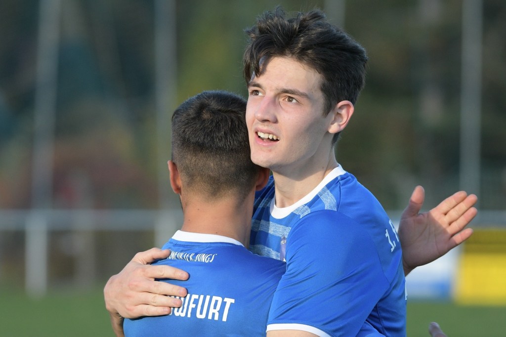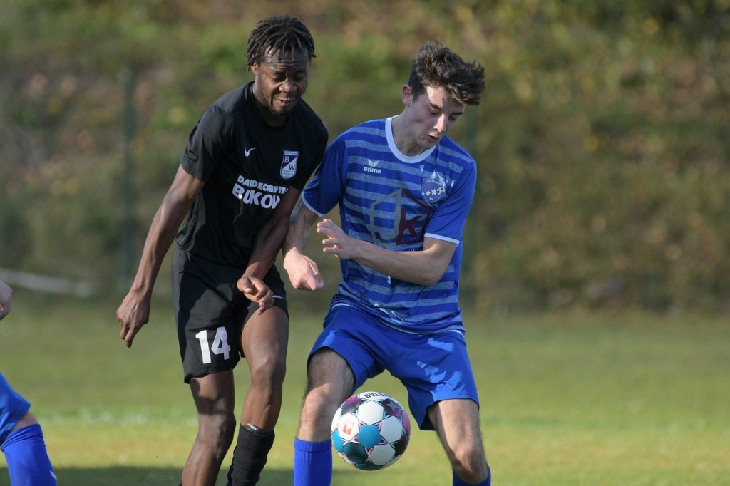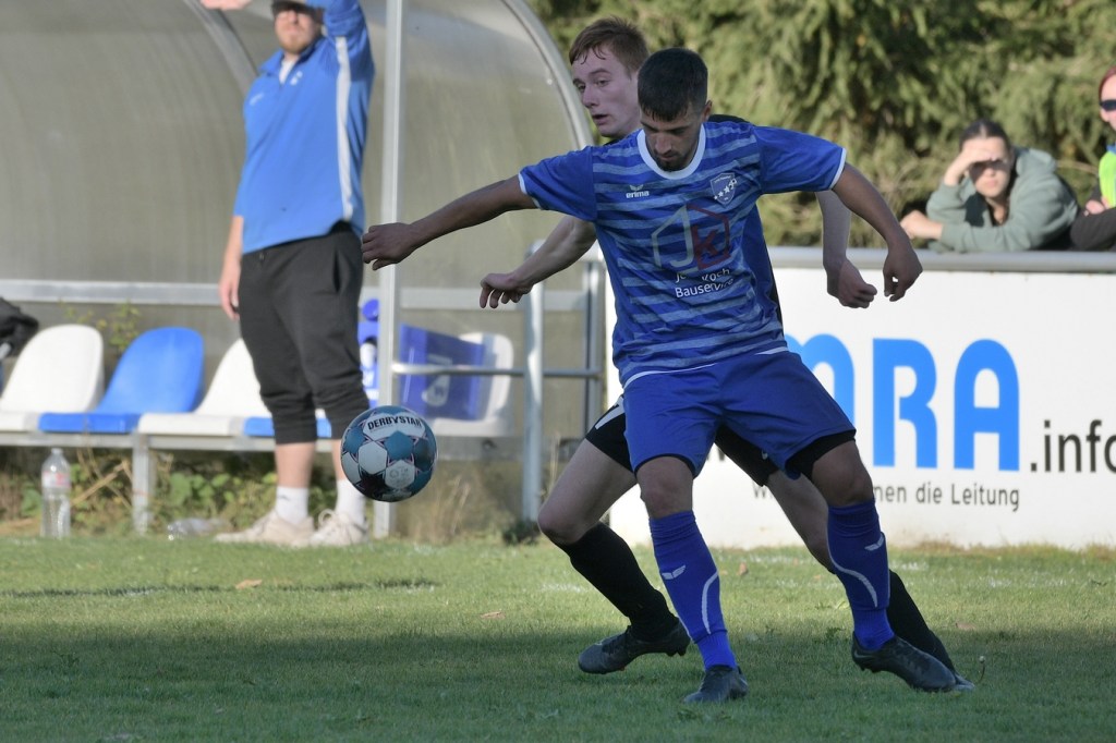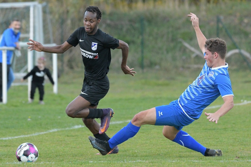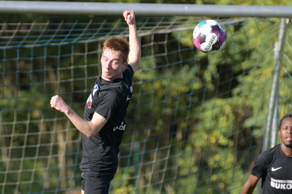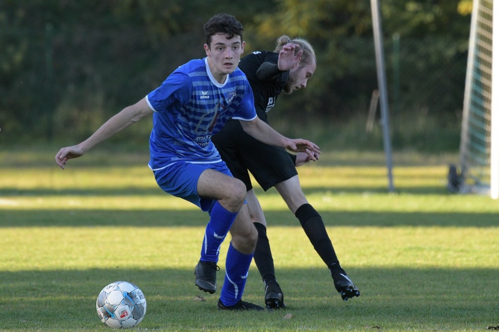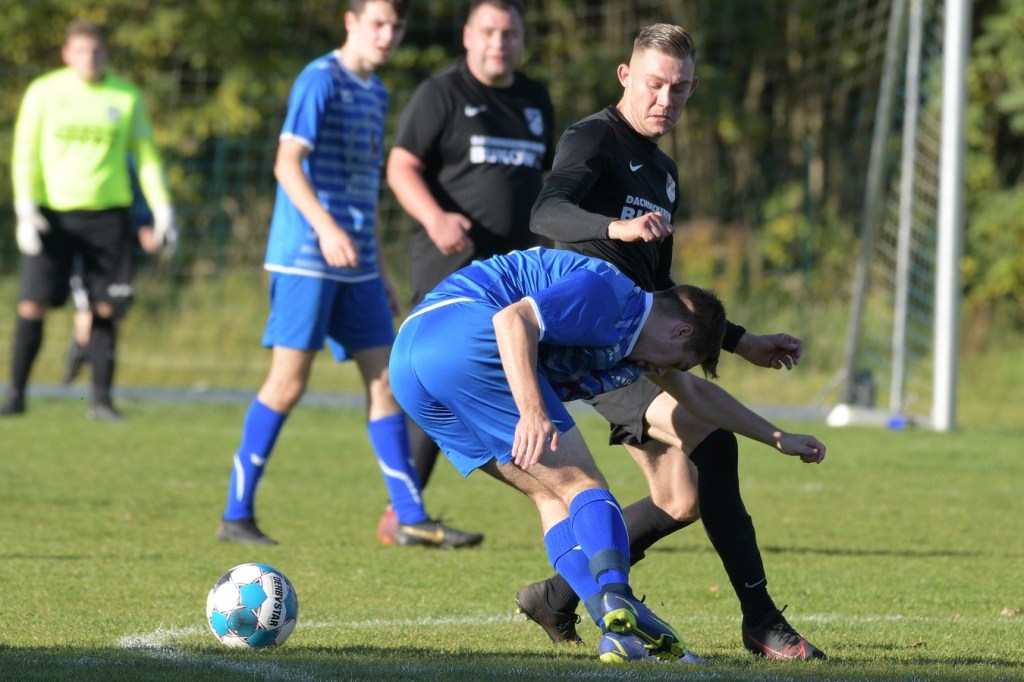Das Spiel begann intensiv und vor allem leidenschaftlich. Beide Teams hatten offensichtlich, zumindest in der Defensive, die gleiche Taktik gewählt. Die letzte Abwehrreihe wurde weit nach vorne verschoben und somit war das Betätigungsfeld auf dem kleinen Platz schon recht eingeschränkt. Blau-Weiss zog dabei die qualitativ ansehnlichere Klinge und bekam dadurch ein kleines Übergewicht, welches aber an der Finowfurter Strafraumkante endete. Viele Zweikämpfe prägten die Szenerie, die fast im Sekundentakt Sieger und Verlierer präsentierten. Im Fachjargon würde das Wort ‚Zerfahrenheit‘ am besten dazu passen. In der 4. Minute versuchte es Justin Weiß mit einem Fernschuss, welcher in den Armen von Gäste-Keeper Eric Kretke landete. Keine sechzig Sekunden später wackelte die FC-Abwehr ein wenig. Erst scheiterte Jöran Reich aus spitzem Winkel an Kretke, dann war Christopher Knoll einen Wimperschlag zu spät und rutschte am Querpass an der Fünferlinie vorbei. Der Fight im Mittelfeld ebbte nicht ab. Dazu gesellte sich auch noch Hektik, was irgendwie auch noch eine Ursache der spielerischen Konfusion darstellte. Die nun folgende ereignislose Phase dauerte bis zur 24. Minute. Ladeburgs Philipp Noack, einer der Aktivposten im Mittelfeld, hatte den Ball über die rechte Seite kommend zu Rico Dumke durchgesteckt. Schlussendlich hatte Eric Kretke den Winkel verkürzt und damit Dumkes Torschussmöglichkeit abgewehrt. Der daraus resultierende Eckball brachte die nächste Blau-Weisse Chance, welche Pascal Lutze per Kopfball knapp über das Tor bugsierte (25.). Für Finowfurt gab es eine Minute später die erste Möglichkeit. Leon Lieschke wurde die Kugel aufgelegt, doch nahm er sichtbar den falschen Fuß und setzte den Ball recht unkontrolliert und klar neben das Tor (26.). Zwei Abschlüsse aus der zweiten Reihe, getreten Niklas Gorgas, fehlten die Präzision, um dem Ladeburger Torsteher Alexander Berth irgendwie gefährlich zu werden (28., 29.). Die Partie lebte eigentlich nur von der Spannung. Den Schlusspunkt des ersten Durchganges markierte Aidan Wrana mit einem Kopfball nach einem lang geschlagenem Freistoß. Aber auch er war in der Peilung noch etwas ungenau, als der Ball gut zwei Meter neben dem Kasten die Auslinie überquerte (44.).