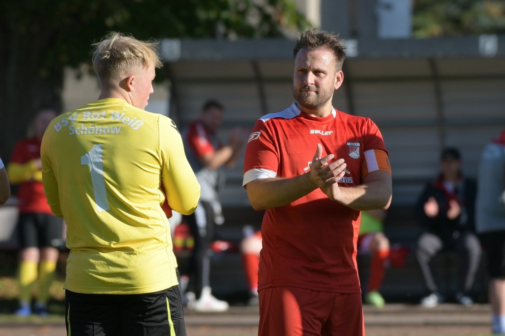 Zum Wiederanpfiff die gleiche Szenerie. Nur mit dem Unterschied zum Beginn des Spieles, dass diesmal der erste Heimangriff von Erfolg gekrönt war. Köpke, der im Übrigen von Hendrik Brösel als Unterschiedsspieler ausgemacht wurde, erzielte seine zweite Bude. Das probate Mittel der Diagonalbälle hatte wieder zugeschlagen. Der Torschütze als Abnehmer bekam kaum Gegenwehr zu spüren und nagelte das Spielgerät aus der linken Strafraumhälfte unhaltbar ins lange Eck. (47.). „Ich war mit dem ersten Durchgang nicht ganz zufrieden und habe schon mehr Engagement von meinen Jungs gefordert,“ begründete FC-Trainer Eberhard Janotta den Leistungsschub und hatte damit wohl ein höheres und spürbares Leidenschafts-Niveau in seinem Team erzeugt. Die Begegnung wurde nämlich noch intensiver und forderte nun auch ein beherzteres Eingreifen von Schiri Toni Bauer. Der hatte sich gleich mal den eingewechselten und recht ungestüm agierenden Marc Kaiser gegriffen, um mit dem gelben Karton in der 52. Minute ein Zeichen zu setzen. Kremmen wollte mehr und kam auch zu sehr guten Chancen. Lukas Kraeft mit seinem Versuch aus der zweiten Reihe und Niclas Köpke im Nachsetzten hätten zumindest einen Torjubel organisieren müssen. Doch beide Male reagierte der junge Schönower Schlussmann Johannes Weinreich sehenswert und hielt damit seine Truppe weiterhin im Spiel. Von denen kam aber nicht mehr viel. Die Bemühungen waren durchaus vorhanden. Und wenn Christoph Spitze das Anspiel auf ihn in aussichtsreicher Position, mit nur noch dem Keeper vor sich, verwertet hätte, wäre sicherlich eine spannende Schlussphase möglich gewesen (57.). Das Plus an Möglichkeiten, inklusive Lattentreffer, blieb beim FC. So war es zweimal Marc Kaiser, der seine Laufduelle zwar gewann, im Abschluss dann aber kein Glück gepachtet hatte. Aber auch Patrick Breyer war in vorderster Front aktiv, doch genauso wie Kaiser war er nicht in den Verbund mit Fortuna getreten. Rot-Weiß gab nicht auf, ließ mit zwei guten Chancen noch einmal aufhorchen. Musste sich am Ende aber eingestehen, mit den Kremmenern einen verdienten Sieger gesehen zu haben. So sah es auch Gäste-Coach Hendrik Brösel nach Spielende. „Uns haben heute elf Spieler gefehlt und wir haben es geschafft elf weitere auf den Platz zu bringen. Und auch diese Mannschaft war absolut ligatauglich und konnte auf dem heutigen Niveau mithalten. Dass uns das als Verein gelingt, macht mich erst einmal froh. Trotzdem müssen wir zusehen, ohne einen Blick auf die Tabelle zu riskieren, aus dem Tal herauszukommen. Wichtig hierbei ist, dass wir nach drei Spielen ohne eigenes Tor, mal wieder einen Treffer erzielen. Die Personalprobleme sind natürlich auch hausgemacht. Dies müssen wir aufarbeiten, damit wir zukünftig nicht wieder in eine solche Lage kommen. Fakt ist aber, der Kremmener Sieg geht absolut in Ordnung.“ FC-Übungsleiter Eberhard Janotta hatte ebenfalls in seinem Statement einen verdienten Sieger gesehen. „Für die Kreisoberliga war es ein sehr gutes Spiel, ich denke auch die erwartete Spitzenbegegnung, obwohl Schönow in der Tabelle nicht ganz oben mitmischt. Es war sehr ausgeglichen und das Glück war heute auf unserer Seite. Im Endeffekt war unsere Steigerung im zweiten Durchgang wohl ausschlaggebend für den Erfolg.“