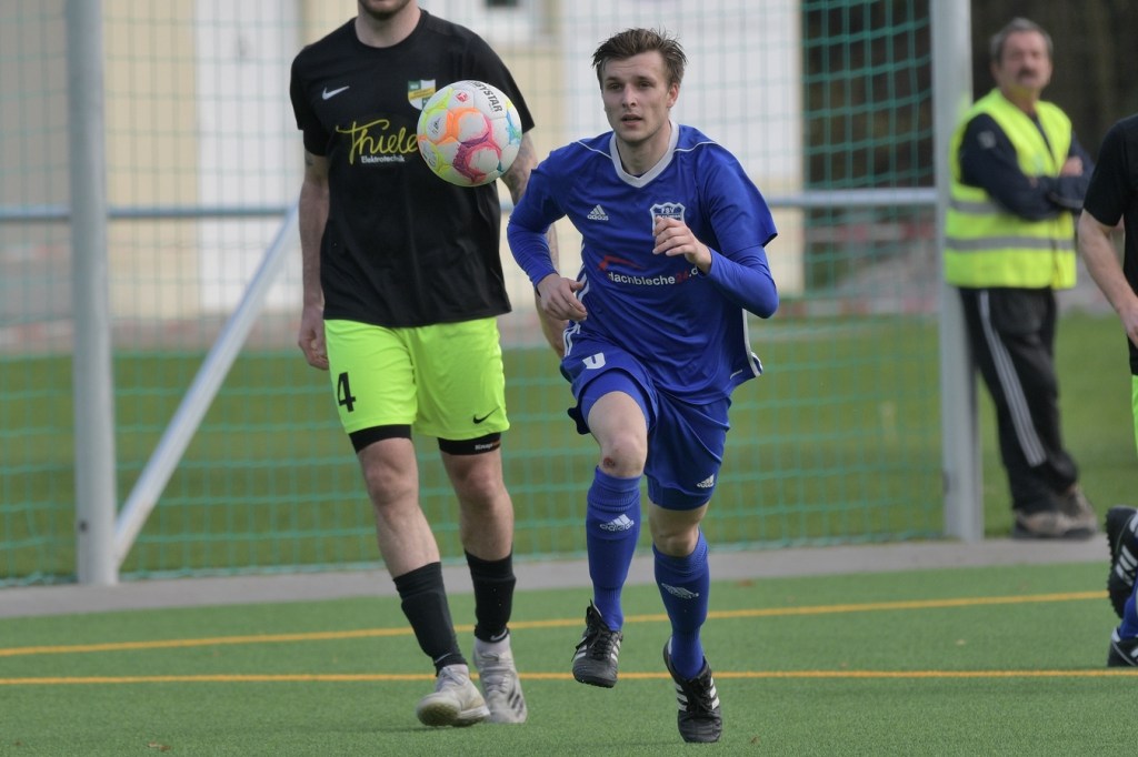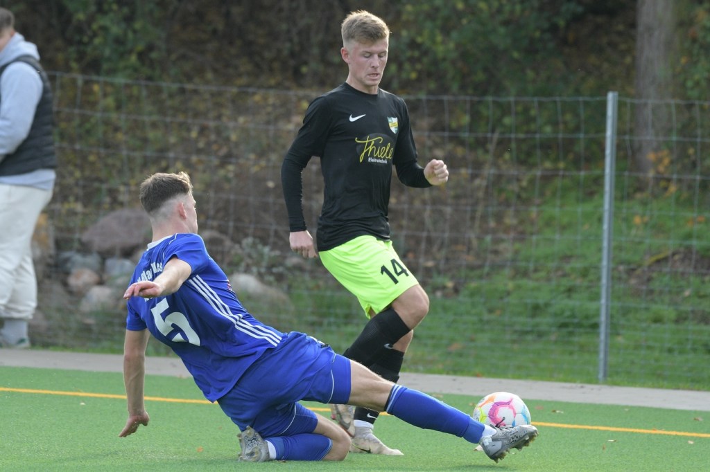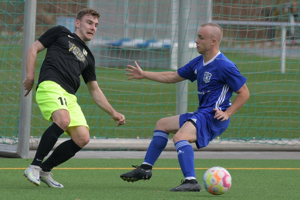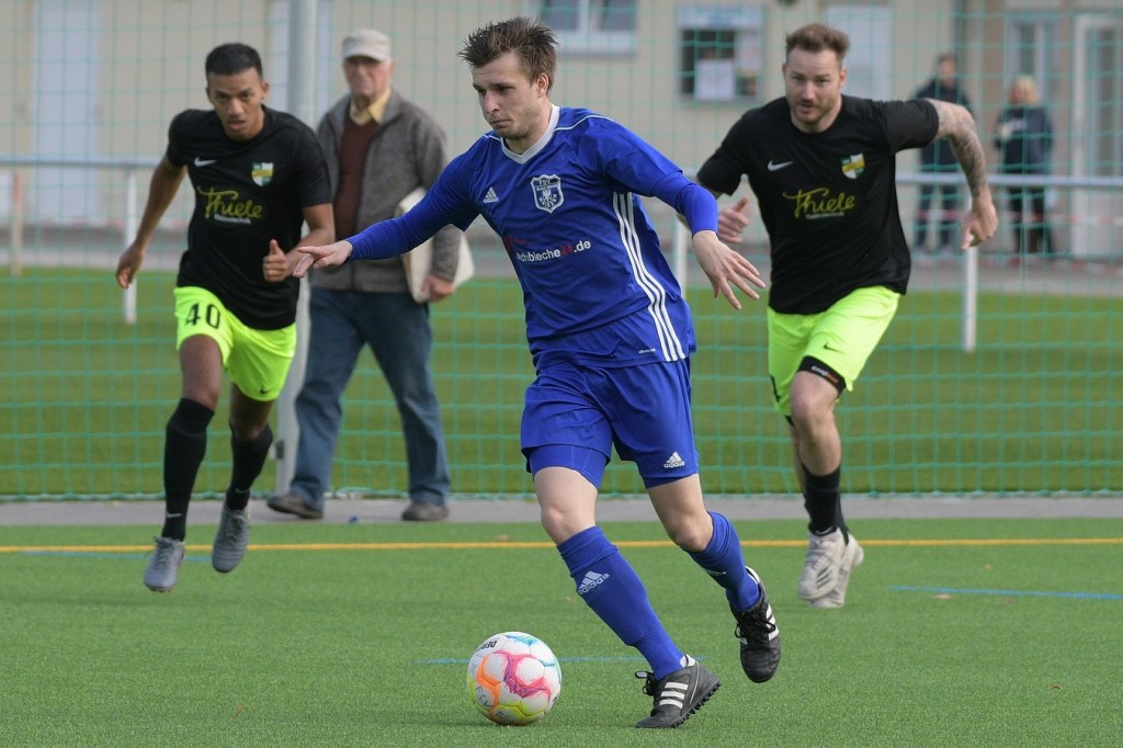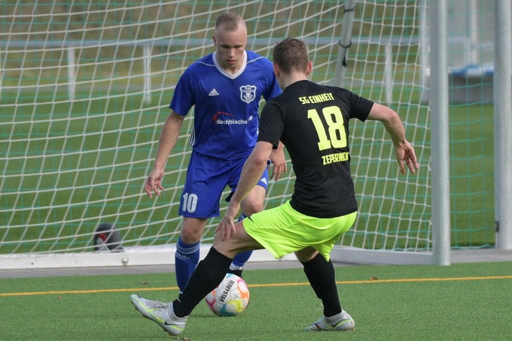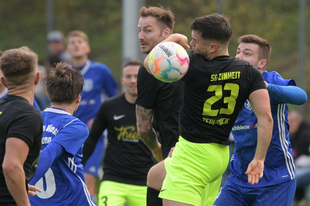 Die sanierte, eigentlich neue Sportanlage der Blau-Weissen präsentierte sich als Schmuckstück, mit einem kleinen Mangel, dass der Rasen sich noch in der Schonung und Wachstumsphase befindet und damit nicht bespielbar war. Laut Aussage des sportlichen Leiters der Hausherren, Christian Wegner, wird es noch eine Weile dauern dürfen, bis der Ball das erste Mal mit dem neuen Geläuf Kontakt aufnehmen kann. Deshalb musste der kleine Kunstrasen den Rahmen vor guter Kulisse für die Begegnung erzeugen, was für die Heim-Truppe sicherlich ein Vorteil war. „Wir wollten defensiv kompakt stehen und mit Nadelstichen Zeichen setzen. Ich denke, dies ist uns ganz gut gelungen“, hatte Wriezens Übungsleiter Kilian Karpe die Marschroute im Nachgespräch preisgegeben und den Gästen damit von Minute eins die Geduldsprobe auferlegt. Dabei stockte den Wrieznern schon nach sechzig Sekunden der Atem, als Philip Opitz aus dem linken Halbfeld in den Gästestrafraum flankte und die Flugbahn immer länger wurde. Dies brachte Keeper Daniel Meinert schon in eine kleine Verlegenheit, denn er musste einige Male nachfassen, um das Spielgerät letztendlich ins Aus zu lenken. Aber auch Zepernick wurde zum Durchatmen gezwungen. Ein Eckball von der linken Seite kam gut getimt im Strafraum an, wo sich Christian Kamp am höchsten schraubte und den Ball mit der Stirn an das rechte Lattenkreuz nagelte (9.). In der 16. Minute waren dann mal die Gäste sehenswert über rechts unterwegs. Ein Pass in den Rückraum verwertete Lesley Park mit strammem Geschoss, jedoch mit breitgefächerter Peilung, dem Resultat der klaren Zielverfehlung. Die Begegnung war intensiv, hatte Rasse und Leidenschaft, von denen qualitätsbedingt die Hausherren einiges mehr in die Waagschale werfen mussten. Die nächste Möglichkeit hatte wiederum Opitz, der von Max Gerhard sehenswert in Schussposition gebracht wurde. Aber auch bei ihm waren die Töppen scheinbar noch nicht richtig geschnürt (18.). Einheit schraubte zunehmend die Ballbesitz-Prozente jenseits der fünfundsiebzig Marke, wirkte aber in vielen Phasen zu verschleppend. Viele Stationen, per One-Touch abgespult, brachten selten den erhofften Raumgewinn, was den Wrieznern das Verteidigen schon erleichterte. Es wurde aber auch eine Begegnung des Spitzenreiters, der, wenn es mal schnell und schnörkellos wurde, die wirklich guten Chancen versiebte. Lukas Grabarek, der Scorer der Einheit mit zehn Treffern, gehörte dazu, wie in der 19. Minute, als er aussichtsreich den Ball knapp neben das Tor setzte. Im Gegenzug probierte es Nick Hildenhagen für seine Blau-Weissen, aber auch sein Geschoss aus achtzehn Metern landete im Aus. Der lange Atem, der den Gästen entgegen hauchte, hatte weiter Bestand. Das Spiel war immens spannend, weil sich keiner eine Auszeit nehmen konnte und auch wollte. Kevin Maek, der Antreiber des Tabellenführers, machte den Unterschied aus. Er schaffte es zwar seine Kollegen einzusetzen, aber die Ertragsgröße, in Form von gefährlichen Abschlüssen, blieb unter den eigenen Erwartungen. Wriezen hingegen blieb weiter defensiv stabil, musste sich aber auch eingestehen, dass es mit den Vorgaben des Trainers zum Nadelstechen immer seltener wurde. Schlussendlich wurde der erste Durchgang zur Nullnummer, weil auch Max Gerhard, einmal aus spitzem Winkel ans Außennetz (38.) und mit einem Freistoß aus achtzehn Metern, das Tor-Glück versagt blieb. Aber auch Luca Grabarek ließ noch etwas liegen, als er einschussbereit von der gemeinsam agierenden Heimabwehr am Vollenden gehindert wurde (45.).