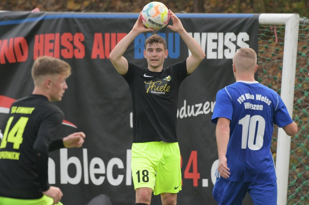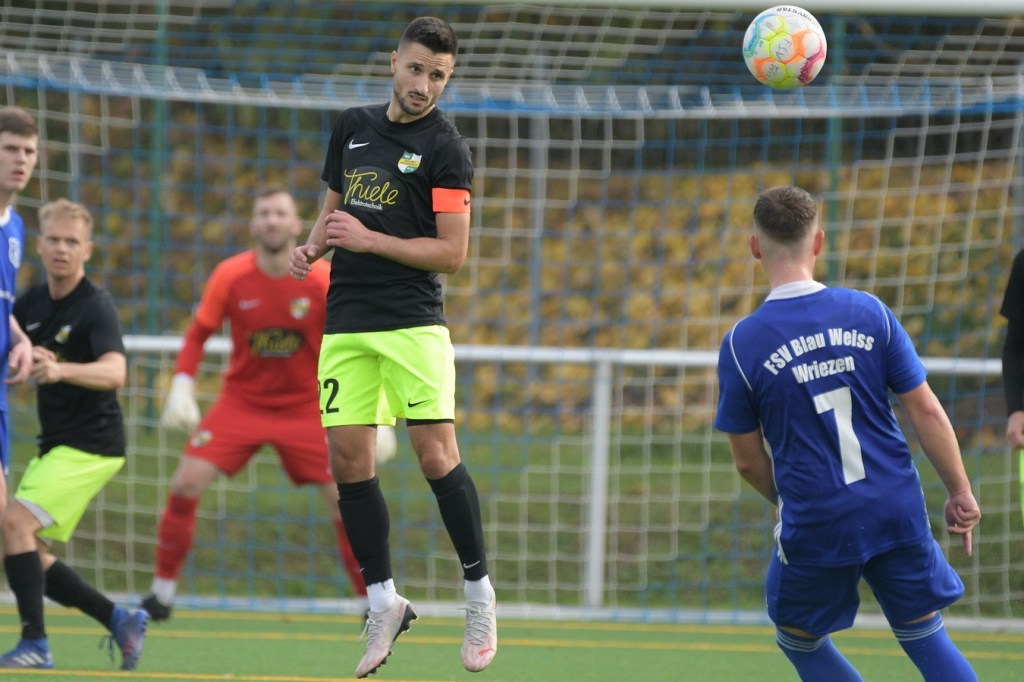 Die Zermürbungstaktik der Gäste, wenn so beabsichtigt, und der Abnutzungskampf der Hausherren setzte sich nahtlos fort. „Wir haben zur Halbzeit etwas umgestellt, um mehr Griffigkeit im Vorwärtsgang zu erzeugen“, erklärte Lucio Geral den nun spürbar geradlinigeren Auftritt seiner Jungs. Der Ball rollte noch keine einhundertzwanzig Sekunden, da wurde das Tor des Tages erzielt. Ein Konter über die linke Seite, den Luca Grabarek mit einer etwas verunglückten flachen Eingabe abschloss, wurde durch Paul Mann ins eigene Netz befördert. Dass einem ein Eigentorschütze immer leidtun kann, ist das eine. Noch mehr zu bemitleiden war aber Blau-Weiss-Keeper Daniel Meinert, der dreimal im Vorfeld lautstark seine Vorderleute aufgefordert hatte, den Ball für ihn zur Aufnahme laufen zu lassen. Schlussendlich war er machtlos und auch verständlich mächtig sauer. Noch ärgerlicher war der Umstand, dass sich im Umkreis von zehn Metern kein einziger Zepernicker aufhielt. Einheit beflügelte der Treffer. Und es begann die intensive Zeit des Chancenauslassens. In vorderster Front, dann schon mit Kopfschütteln seiner Kollegen, agierte Luca Grabarek. Er scheiterte dreimal am sehr gut aufgelegten und besten Wriezener Daniel Meinert und auch an sich selbst. Denn gerade das Auslassen der Möglichkeit in der 80. Minute, als er frei vor Meinert auftauchte und den Ball am Tor vorbeischlenzte, konnte man schon kläglich bezeichnen. So mutierte die Quote der sehr guten Gäste-Möglichkeiten ohne Torerzielung auf insgesamt acht bis zehn, in der sich auch Mannschaftskapitän Ümit Ejder und auch Max Gerhard als unzuverlässige Verwerter einreihten. Wriezen hingegen lebte noch, aber nur sporadisch, mit wenigen Halbchancen. Als die Kräfte dann auf beiden Seiten nachließen und die Uhr schon am offiziellen Spielende kratzte, bekam Blau-Weiss noch einmal Oberwasser. Dies langte aber nicht mehr dazu, um der Einheit wenigstens noch einen Punkt abzuknöpfen.